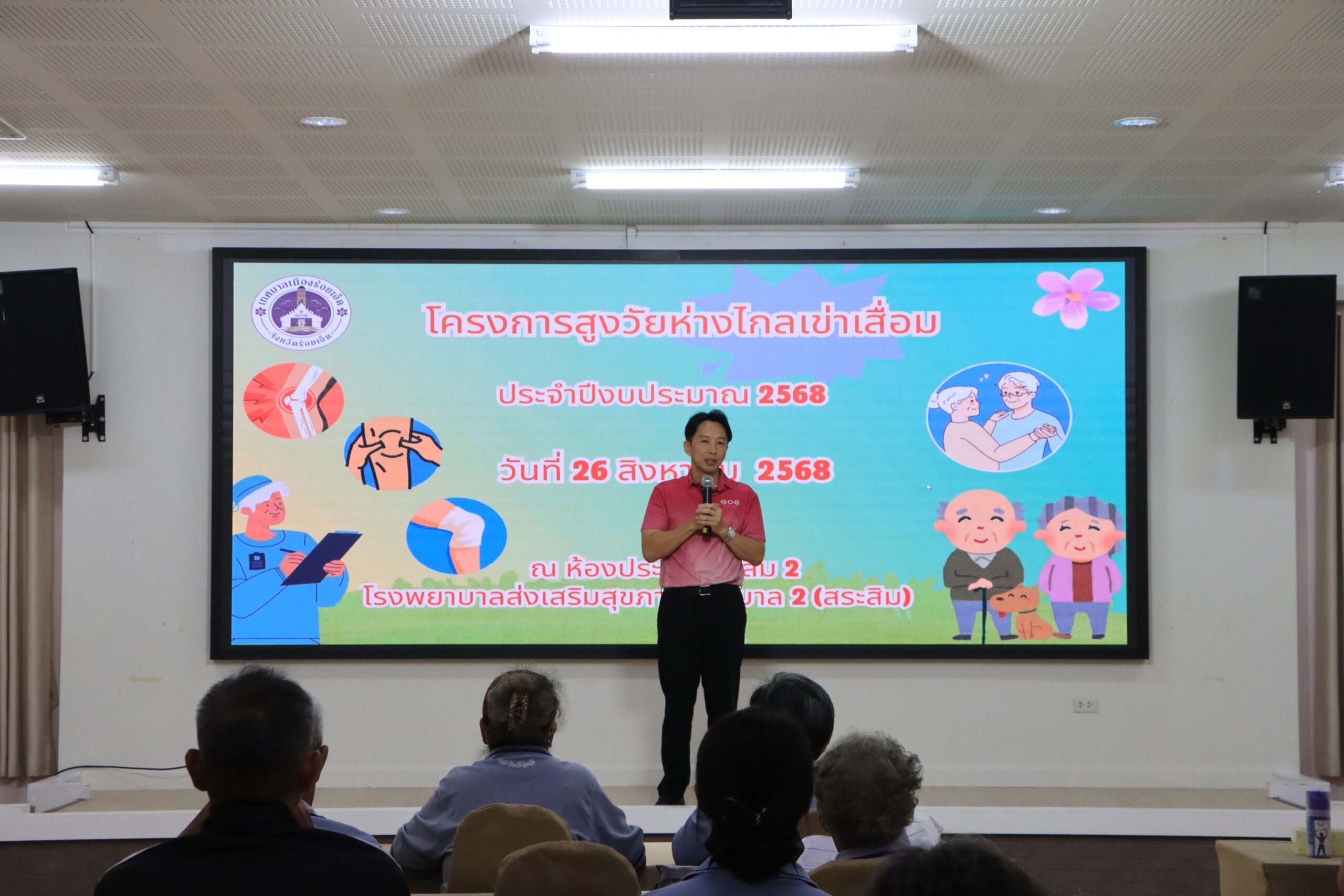 ดร.วัฒนพงษ์ ชิตทรงสวัสดิ์ รองนายกเทศมนตรีเมืองร้อยเอ็ด เป็นประธานเปิดโครงการสูงวัยห่างไกลเข่าเสื่อม ประจำปีงบประมาณ 2568 การอบรมให้ความรู้และปฏิบัติการ สูงวัยห่างไกลเข่าเสื่อม ให้แก่ผู้สูงอายุในชุมชนและประชาชนกลุ่มเสี่ยงให้มีความรู้ความเข้าใจ ในการดูแลสุขภาพของตัวเองและสามารถถ่ายทอดความรู้ให้แก่ผู้อื่นได้ กิจกรรมในครั้งนี้ได้รับเกียรติจากดร.มิตรธีรา วิสูตรานุกูล สมาชิกสภาเทศบาลเมืองร้อยเอ็ด ว่าที่ร้อยโทอนันต์ เมาะราษี รองปลัดเทศบาลเมืองร้อยเอ็ด นางเพ็ญละดา ภารัง ผู้อำนวยการกองสาธารณสุขและสิ่งแวดล้อมเทศบาลเมืองร้อยเอ็ด หัวหน้าฝ่าย หัวหน้างาน ส่วนเกี่ยวข้องเข้าร่วมเป็นเกียรติและสังเกตการณ์ในครั้งนี้ ณ ห้องประชุมสระสิม 2 โรงพยาบาลส่งเสริมสุขภาพเทศบาล 2 (สระสิม) เทศบาลเมืองร้อยเอ็ด จังหวัดร้อยเอ็ด