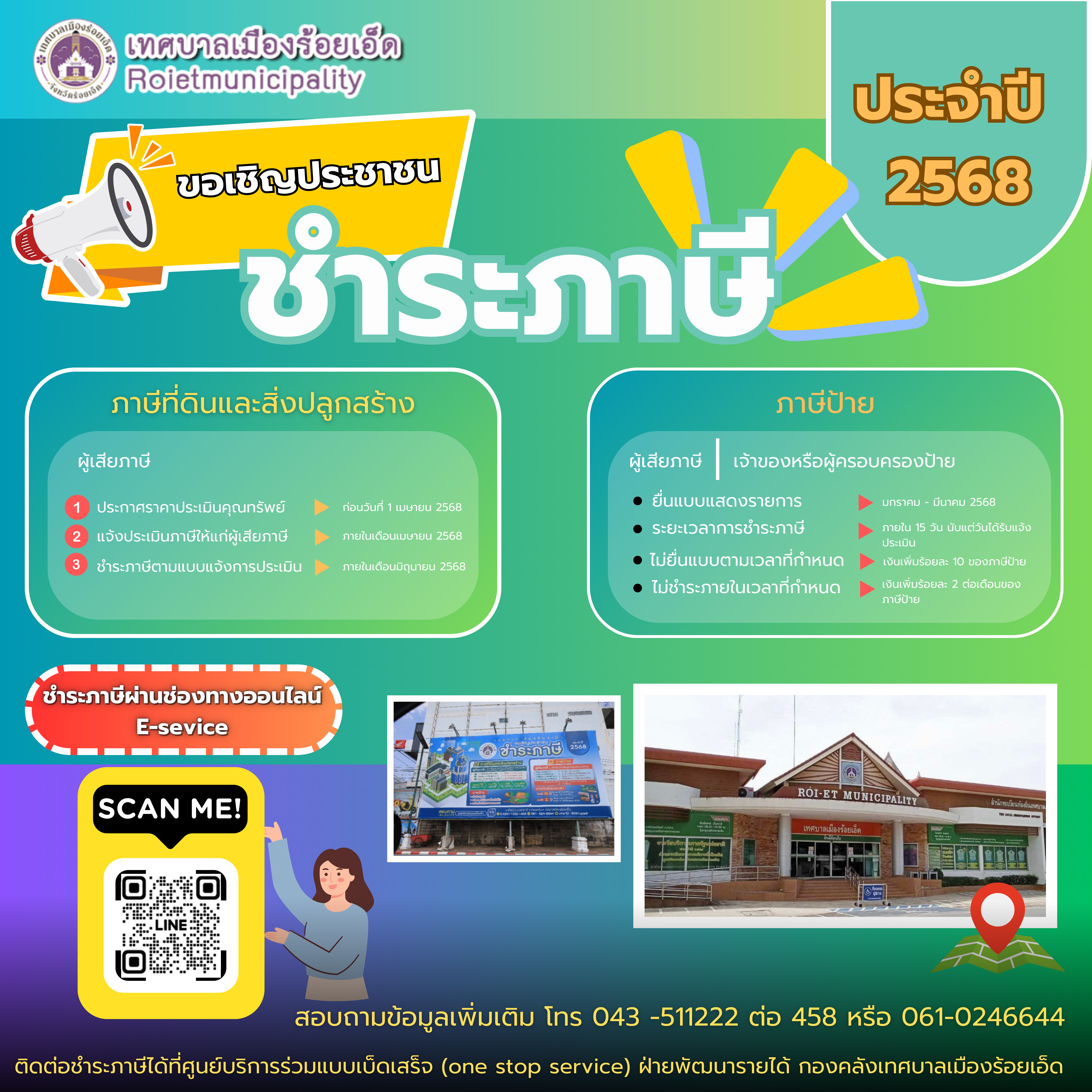 ชำระภาษีผ่านช่องทางออนไลน์ E-Service เทศบาลเมืองร้อยเอ็ด