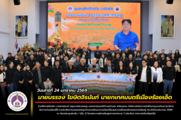 นายบรรจง โฆษิตจิรนันท์ นายกเทศมนตรีเมืองร้อยเอ็ด ร่วมให้การต้อนรับ นายยายยนต์ อรุณเวสสะเศรษฐ นายกเทศมนตรีตำบลบ้านเพ พร้อมคณะ ในโอกาสเดินทางเข้าศึกษาดูงานด้านการบริหารจัดการบ้านเมืองที่ดี และรับฟังการบรรยายสรุปด้านการพัฒนาการท่องเที่ยวและการเป็นองค์กรแห่งการเรียนรู้ ประจำปีงบประมาณ 2569