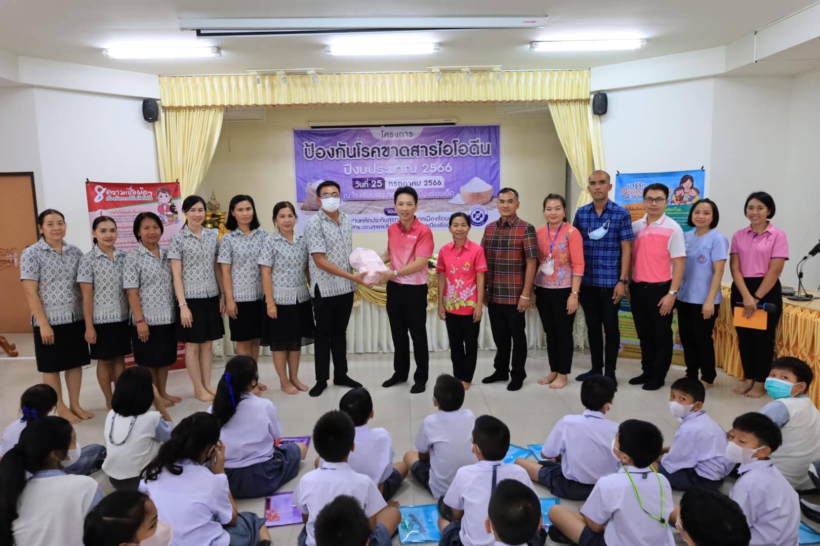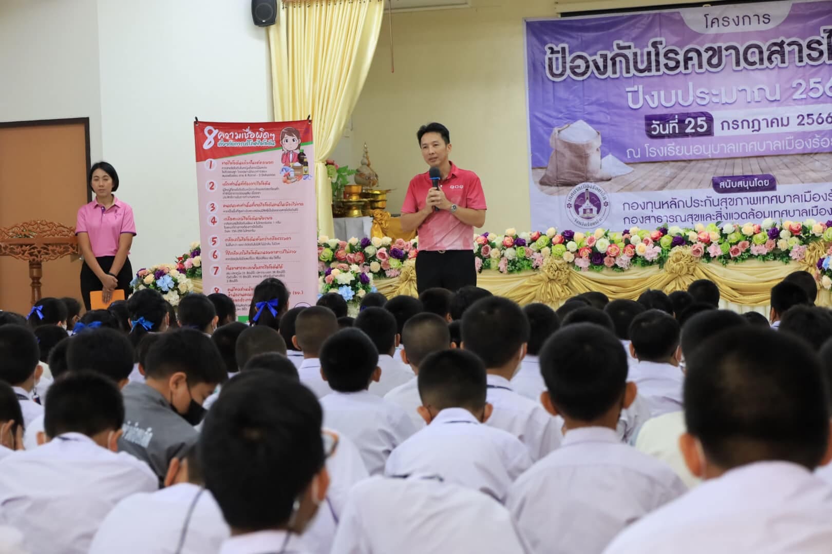 วันอังคารที่ 25 กรกฎาคม 2566 เวลา 14.00 น. ดร.วัฒนพงษ์ ชิตทรงสวัสดิ์ รองนายกเทศมนตรีเมืองร้อยเอ็ด เป็นประธานเปิดโครงการป้องกันโรคขาดสารไอโอดีนในเขตเทศบาลเมืองร้อยเอ็ด ปีงบประมาณ 2566 โดยกองทุนหลักประกันสุขภาพเทศบาลเมืองร้อยเอ็ด โดยมี นางเพ็ญละดา ภารัง ผู้อำนายกองสาธารณสุขและสิ่งแวดล้อม พร้อมด้วย หัวหน้าฝ่าย, หัวหน้างาน, คณะครู และเจ้าหน้าที่ผู้เกี่ยวข้อง ร่วมเปิดโครงการฯครั้งนี้ เพื่อให้นักเรียนมีความรู้ ความเข้าใจเกี่ยวกับความสำคัญของสารไอโอดีน วิธีตรวจปริมาณสารไอโอดีนในเกลือบริโภค การเลือกใช้เกลือเสริมไอโอดีน ผลิตภัณฑ์ปรุงรสเสริมไอโอดีนได้อย่างถูกต้องและส่งเสริมพฤติกรรมการบริโภคเกลือไอโอดีนอย่างต่อเนื่อง โดยมีนางปิยวรรณ หาญเวช พยาบาลวิชาชีพชำนาญการ กลุ่มงานเวชกรรมสังคม โรงพยาบาลร้อยเอ็ด บรรยายให้ความรู้เรื่อง “เพิ่มไอโอดีนเพิ่มไอคิว” และชี้แจงแนวทางนโยบาย การดำเนินงานและแนวทางปฏิบัติในการป้องกันภาวะขาดสารไอโอดีนในประเทศไทย ณ ห้องประชุมประทุมเพชร โรงเรียนอนุบาลเทศบาลเมืองร้อยเอ็ด
