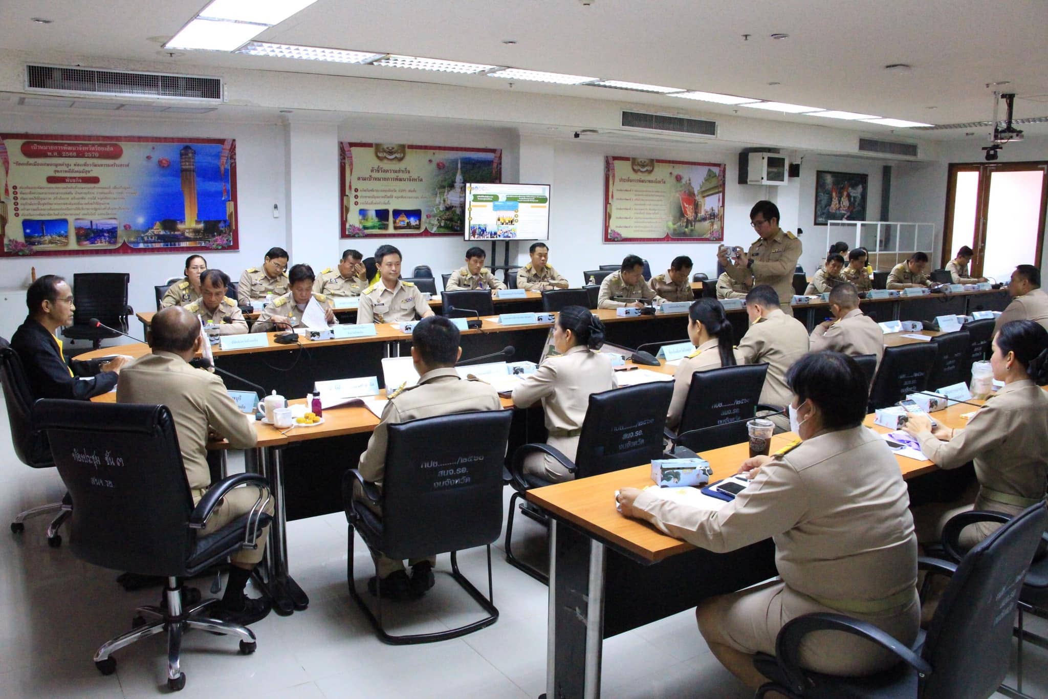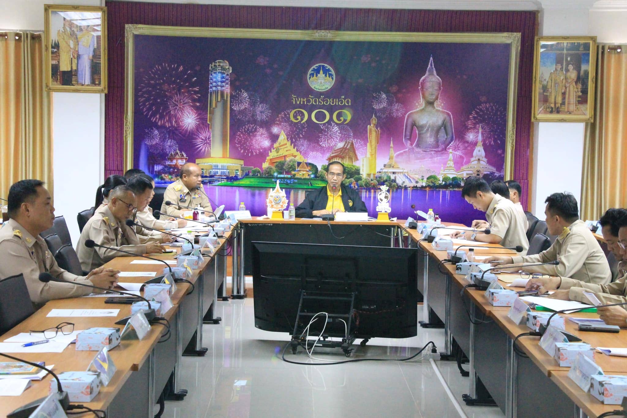 วันอังคารที่ 14 พฤษภาคม 2567 เวลา 09.30 น. จ.ส.อ.ทรงวุฒิ สัตบุตร รองปลัดเทศบาลเมืองร้อยเอ็ด ร่วมประชุมการตรวจราชการประจำเดือนพฤษภาคม 2567 ของผู้ตรวจราชการกระทรวงมหาดไทย นายณรงค์ จีนอ่ำ และคณะ เพื่อติดตามงานนโยบายรัฐบาลและภารกิจสำคัญของกระทรวงมหาดไทย ในพื้นที่จังหวัดร้อยเอ็ด ณ ห้องประชุมพระเวสสันดร(ชั้น3) ศาลากลางจังหวัดร้อยเอ็ด
