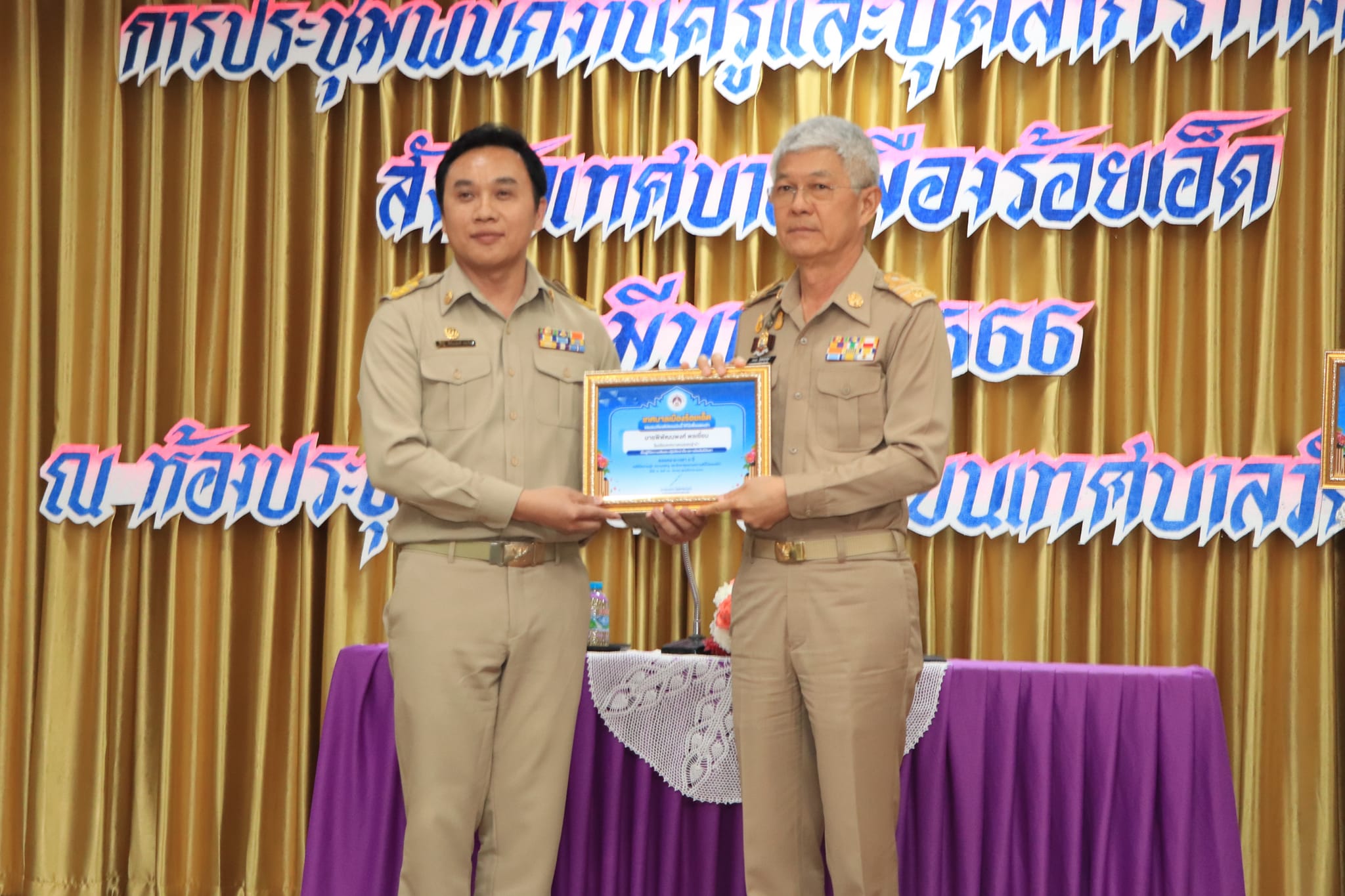 การประชุมพนักงานครูและบุคลากรทางการศึกษา สังกัดเทศบาลเมืองร้อยเอ็ด พร้อมมอบเกียรติบัตรแก่ครูไม่มีวันลา ประจำปีการศึกษา 2565