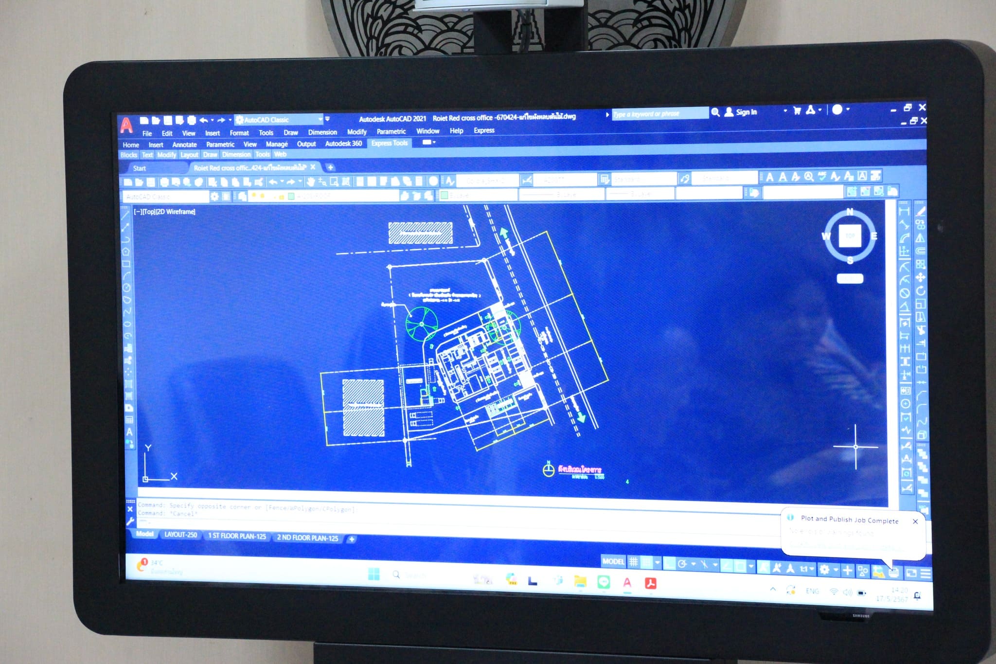 การประชุมหารือร่วมกับหน่วยงานที่เกี่ยวข้องเรื่องการจัดวางแผนผังพื้นที่การเตรียมรับเสด็จพิธีวางศิลาฤกษ์อาคารสำนักงานเหล่ากาชาดจังหวัดร้อยเอ็ด