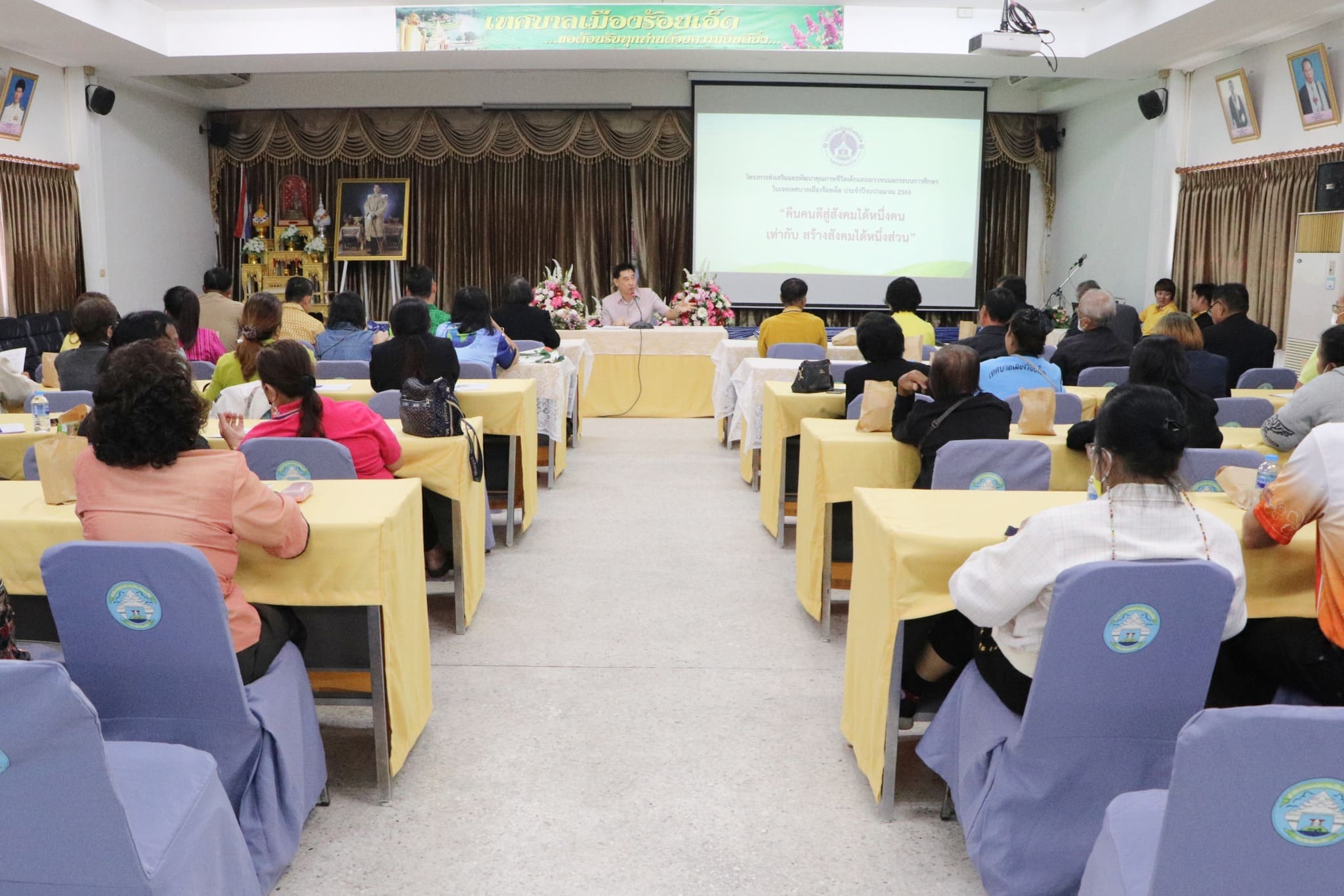 วันจันทร์ที่ 18 ธันวาคม 2566 เวลา 10.00 น. ดร.นุชากร มาศฉมาดล รองนายกเทศมนตรีเมืองร้อยเอ็ด เป็นประธานการประชุมรับฟังแนวทางการดำเนินโครงการส่งเสริมและพัฒนาคุณภาพชีวิตเด็กและเยาวชนนอกระบบการศึกษา ในเขตเทศบาลเมืองร้อยเอ็ด ประจำปีงบประมาณ 2567 ซึ่งมีนายพิรุฬ มาตมูล ผู้อำนวยการส่วนส่งเสริมการศึกษาศาสนาและวัฒนธรรม, หัวหน้าฝ่าย, หัวหน้างาน, ผู้นำชุมชน และเจ้าหน้าที่ผู้เกี๋ยวข้อง เข้าร่วมประชุมในครั้งนี้ โดยมีวัตถุประส่งเพื่อส่งเสริมสนับสนุนด้านการศึกษาและด้านวิชาชีพรวมถึงการปรับทัศนคติด้านจิตใจ อารมณ์ พฤติกรรมการสร้างแรงจูงใจให้เด็กและเยาวชนเกิดเเนวคิดกลับเข้าสู่ระบบการศึกษา หรือนำทักษะความรู้ด้านวิชาชีพที่ได้รับการอบรมกลับไปพัฒนาอาชีพสร้างรายได้เลี้ยงตนเองและครอบครัว เพื่อพัฒนาคุณภาพชีวิตที่ดีขึ้นและอยู่ในสังคมได้อย่างมีความสุข ณ ห้องประชุมสุนทรเทพ (ชั้น3) สำนักงานเทศบาลเมืองร้อยเอ็ด