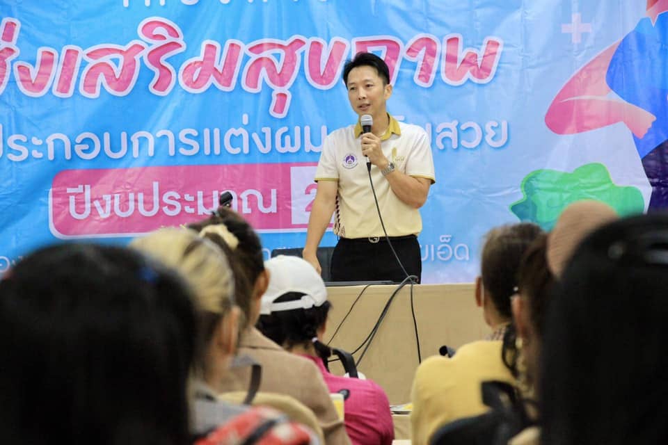 วันพุธที่ 6 กันยายน 2566 เวลา 09.30 น. ดร.วัฒนพงษ์ ชิตทรงสวัสดิ์ รองนายกเทศมนตรีเมืองร้อยเอ็ด เป็นประธานเปิดการอบรมการปรับเปลี่ยนพฤติกรรมสุขภาพ การยศาสตร์และการฟื้นฟูสมรรถภาพวัยทำงาน โดยมี นางเพ็ญละดา ภารัง ผู้อำนวยการกองสาธารณสุขและสิ่งแวดล้อมเทศบาลเมืองร้อยเอ็ด, หัวหน้าฝ่าย, หัวหน้างาน และเจ้าหน้าที่กองสาธารณสุขและสิ่งแวดล้อม ฝ่ายควบคุมและจัดการคุณภาพฯ งานสุขาภิบาลอาหารเทศบาลเมืองร้อยเอ็ด ร่วมการอบรมในครั้งนี้ โครงการส่งเสริมสุขภาพผู้ประกอบการแต่งผม-เสริมสวย ปีงบประมาณ 2566 ณ ห้องประชุมสระสิม2(ชั้น2) ศูนย์บริการและพัฒนาคุณภาพชีวิตผู้สูงอายุเทศบาลเมืองร้อยเอ็ด