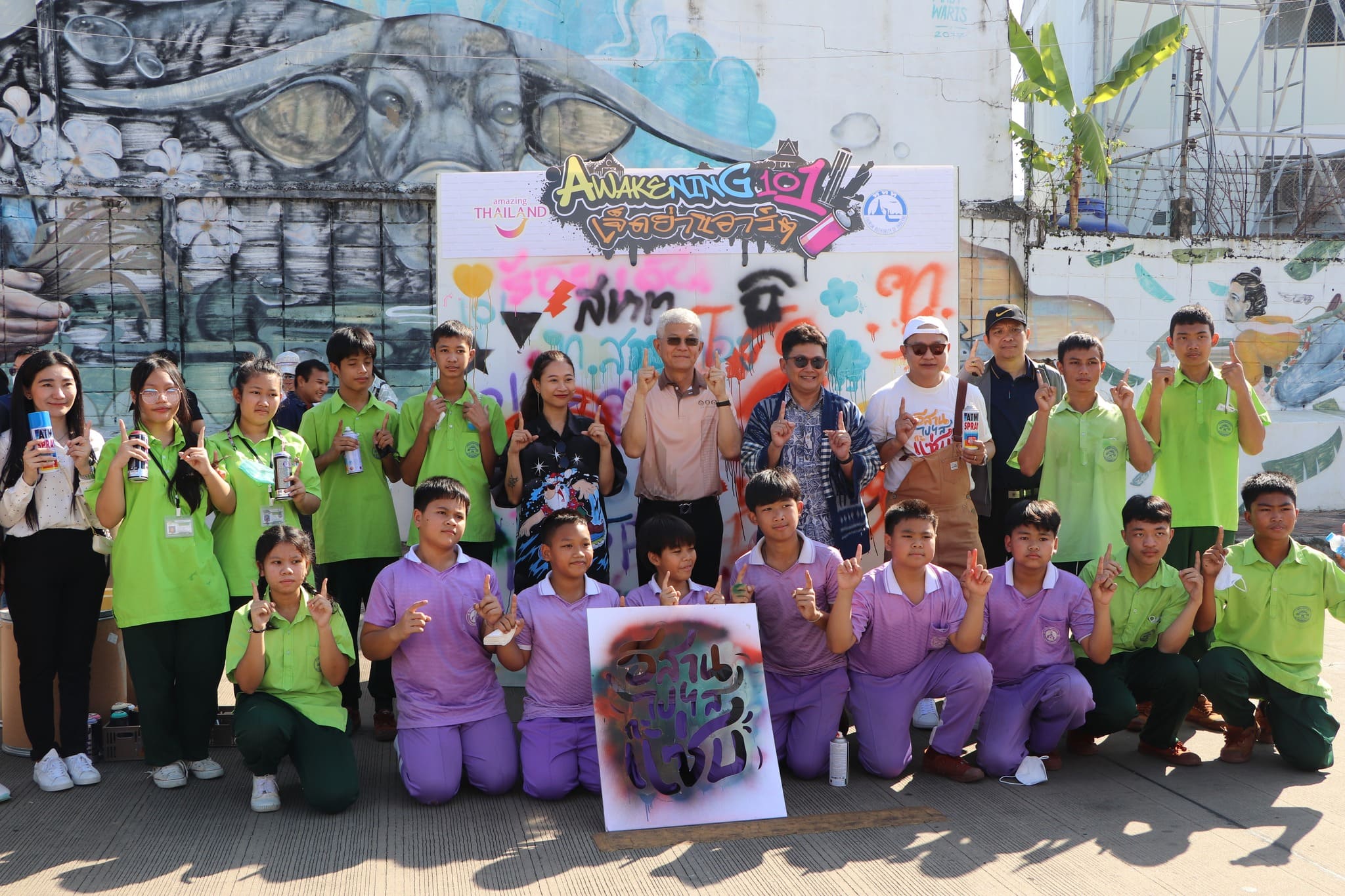 วันที่ 16 ธันวาคม 2566 เวลา 09.00น. นายบรรจง โฆษิตจิรนันท์ นายกเทศมนตรีเมืองร้อยเอ็ด ร่วมกิจกรรม Awakening101 เจ็ดย่านอาร์ต โดยมีนายอรรถพล วรรณกิจ ผู้อำนวยการภูมิภาคตะวันออกเฉียงเหนือ ททท. กล่าวถึงวัตถุประสงค์การจัดกิจกรรม พร้อมด้วย นายบรรจง โฆษิตจิรนันท์ นายกเทศมนตรีเมืองร้อยเอ็ด กล่าวแสดง ความยินดีการจัดกิจกรรม โดยมีศิลปิน Street Art 101 Waris FA (น้องบิว) กล่าวถึงความเป็นมาของผลงาน Street Art 101 ณ Street Art 101