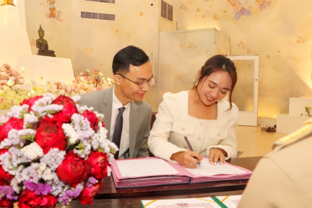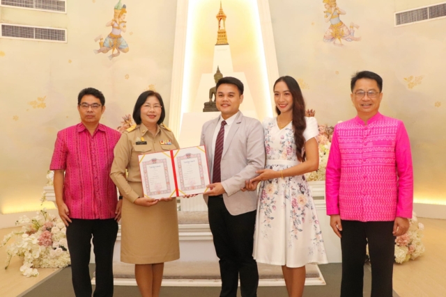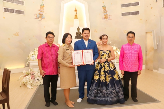 วันพุธที่ 14 กุมภาพันธ์ 2567 เวลา 09.30 น. เทศบาลเมืองร้อยเอ็ด นำโดย นายสถิตย์ ศรีสงคราม ปลัดเทศบาลเมืองร้อยเอ็ด พร้อมด้วย นายธรรมศักดิ์ ชิตทรงสวัสดิ์ ผู้อำนวยการส่วนบริหารการศึกษา และพนักงานในสังกัดเทศบาลเมืองร้อยเอ็ด ร่วมเป็นสักขีพยานพิธีจดทะเบียนสมรสและเซ็นสัญญารัก ในกิจกรรม Happy Valentine’s LOVE @ ROI ET TOWER” รักนี้ที่หอโหวด๑๐๑ ซึ่งมีนางสาคร โสหนองบัว ปลัดอำเภอเมืองร้อยเอ็ด เป็นนายทะเบียน มีคู่จดทะเบียนสมรส 14 คู่ และเซ็นสัญญารัก 2 คู่ ณ พุทธพิมานมงคล (ชั้น35) และ Sky Walk (ชั้น34) หอโหวด๑๐๑ “ROI ET TOWER”
