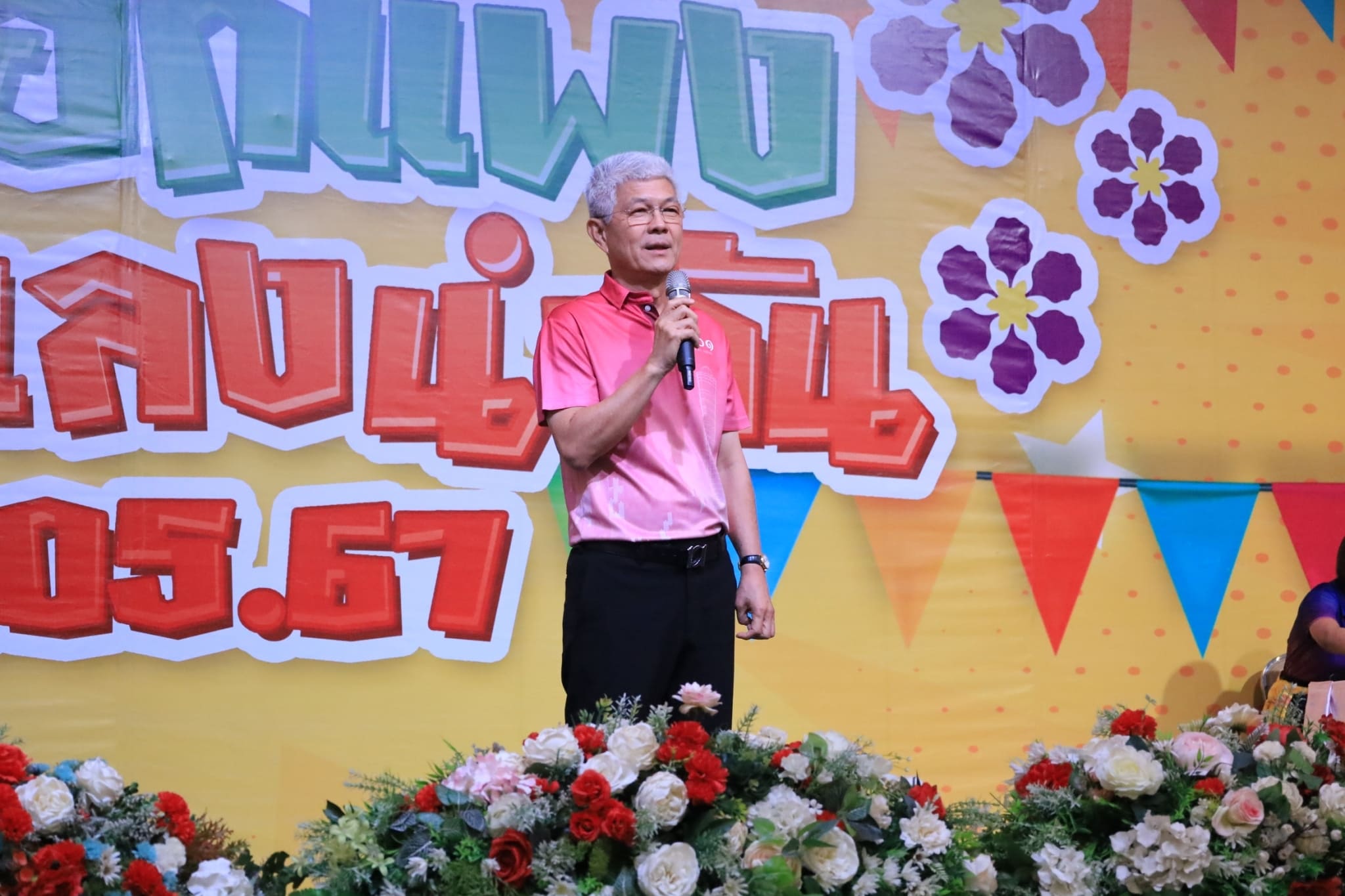 วันพฤหัสบดีที่ 9 พฤษภาคม 2567 เวลา 18.00 น. เทศบาลเมืองร้อยเอ็ด นำโดย ดร.บรรจง โฆษิตจิรนันท์ นายกเทศมนตรีเมืองร้อยเอ็ด พร้อมด้วย คณะผู้บริหารเทศบาล, ประธานสภาเทศบาล, สมาชิกสภาเทศบาล, หัวหน้าส่วนการบริหาร, ผู้บริหารสถานศึกษา, คณะครู และพนักงานในสังกัดเทศบาลเมืองร้อยเอ็ด ร่วมวันพฤหัสบดีที่ 9 พฤษภาคม 2567 เวลา 18.00 น. เทศบาลเมืองร้อยเอ็ด นำโดย ดร.บรรจง โฆษิตจิรนันท์ นายกเทศมนตรีเมืองร้อยเอ็ด พร้อมด้วย คณะผู้บริหารเทศบาล, ประธานสภาเทศบาล, สมาชิกสภาเทศบาล, หัวหน้าส่วนการบริหาร, ผู้บริหารสถานศึกษา, คณะครู และพนักงานในสังกัดเทศบาลเมืองร้อยเอ็ด ร่วมงาน “ตุ้มโฮมฮักแพง กินข้าวแลงนำกัน” ประจำปี 2567 งานเลี้ยงสังสรรค์แทนคำขอบคุณครอบครัวเทศบาลเมืองร้อยเอ็ด หลังจากทำงานมาตลอดปี โดยได้รับเกียรติจากนายอนุรักษ์ จุรีมาศ สมาชิกสภาผู้แทนราษฎรจังหวัดร้อยเอ็ด เขต 1 ร่วมงานฯ ในครั้งนี้ ณ ศูนย์ประชุมสาเกตฮอลล์ ตำบลเหนือเมือง อำเภอเมืองร้อยเอ็ด จังหวัดร้อยเอ็ด โดยได้รับเกียรติจากนายอนุรักษ์ จุรีมาศ สมาชิกสภาผู้แทนราษฎรจังหวัดร้อยเอ็ด เขต 1 ร่วมงานฯ ในครั้งนี้ ณ ศูนย์ประชุมสาเกตฮอลล์ ตำบลเหนือเมือง อำเภอเมืองร้อยเอ็ด จังหวัดร้อยเอ็ด