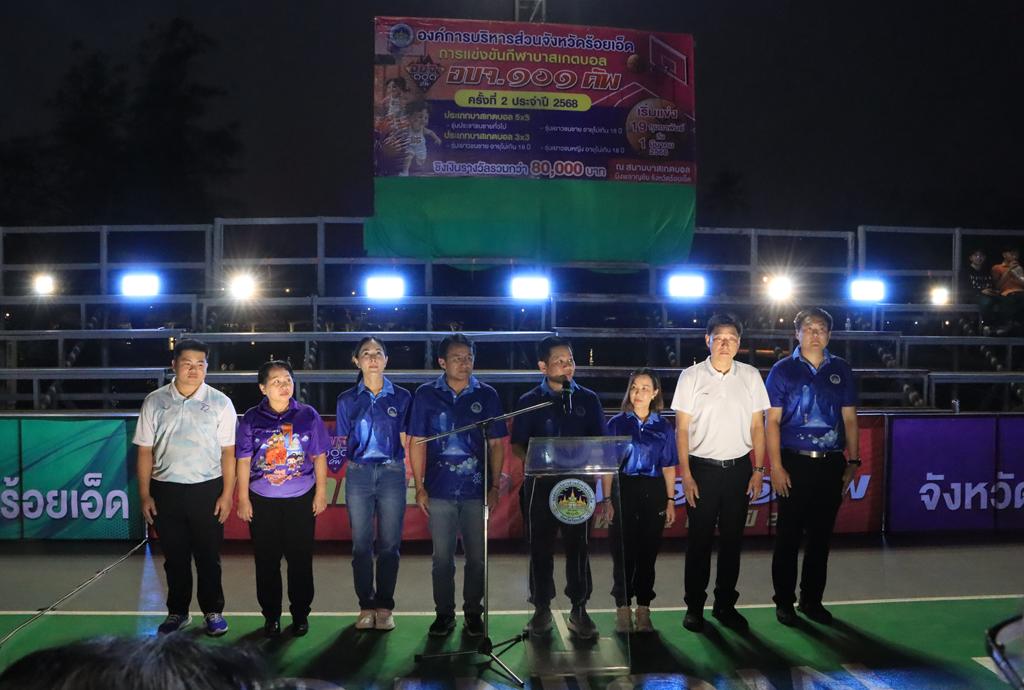 วันพุธที่ 19 กุมภาพันธ์ 2568 เวลา 19.00 น. ดร.นุชากร มาศฉมาดล รองนายกเทศมนตรีเมืองร้อยเอ็ด พร้อมด้วย หัวหน้าส่วนการบริหารเทศบาลเมืองร้อยเอ็ด ร่วมเป็นเกียรติในพิธีเปิดการแข่งขันกีฬาบาสเกตบอล “อบจ.101 คัพ” ครั้งที่ 2 ประจำปี 2568 นำโดย นายเศกสิทธิ์ ไวนิยมพงศ์ นายกองค์การบริหารส่วนจังหวัดร้อยเอ็ด, คณะผู้บริหารองค์การบริหารส่วนจังหวัดร้อยเอ็ด, นักกีฬาบาสเกตบอลทีมที่เข้าร่วมการแข่งขัน และเจ้าหน้าที่ผู้เกี่ยวข้องเข้าร่วมพิธีเปิด โดยมี นายพิชัยยา ตุระซอง รองผู้ว่าราชการจังหวัดร้อยเอ็ด เป็นประธานเปิดการแข่งขันฯ ในครั้งนี้ ณ สนามบาสเกตบอล บึงพลาญชัยจังหวัดร้อยเอ็ด