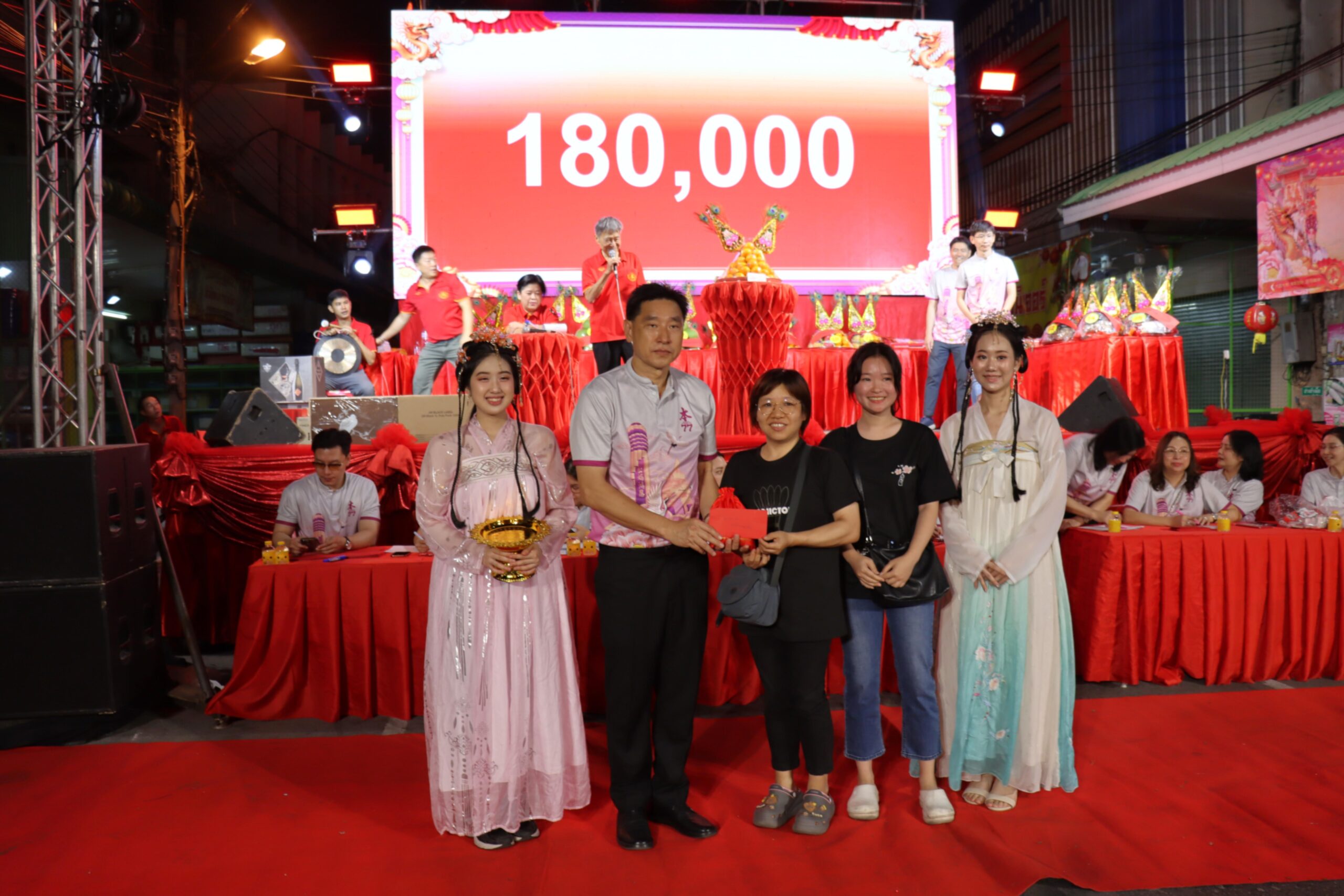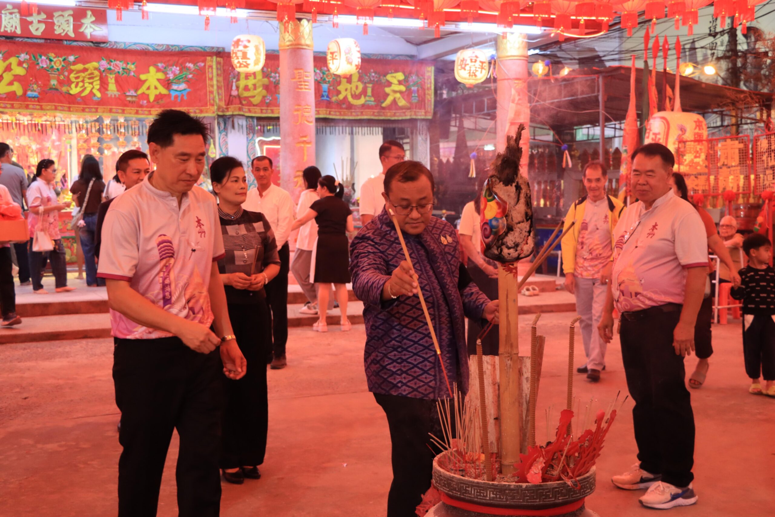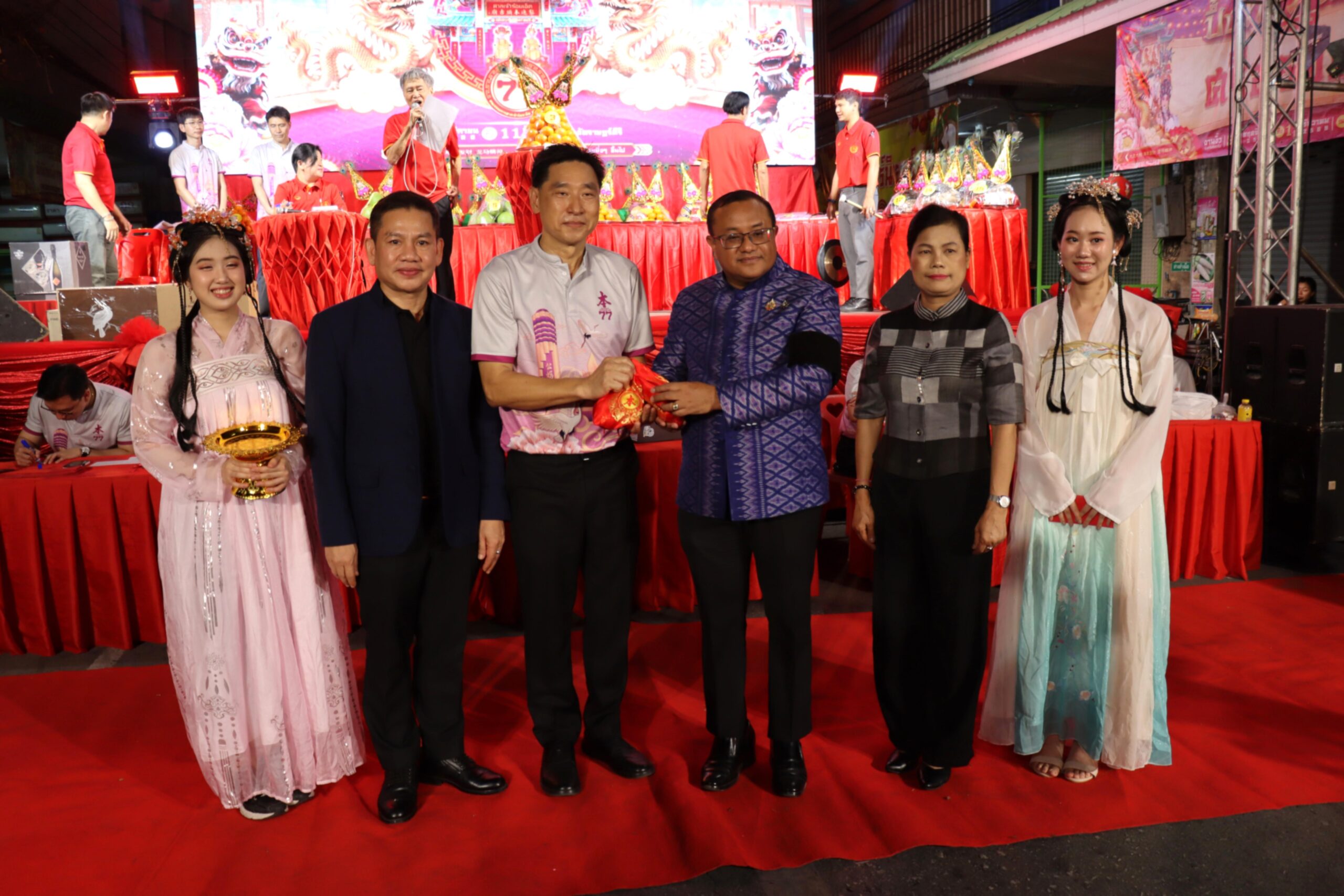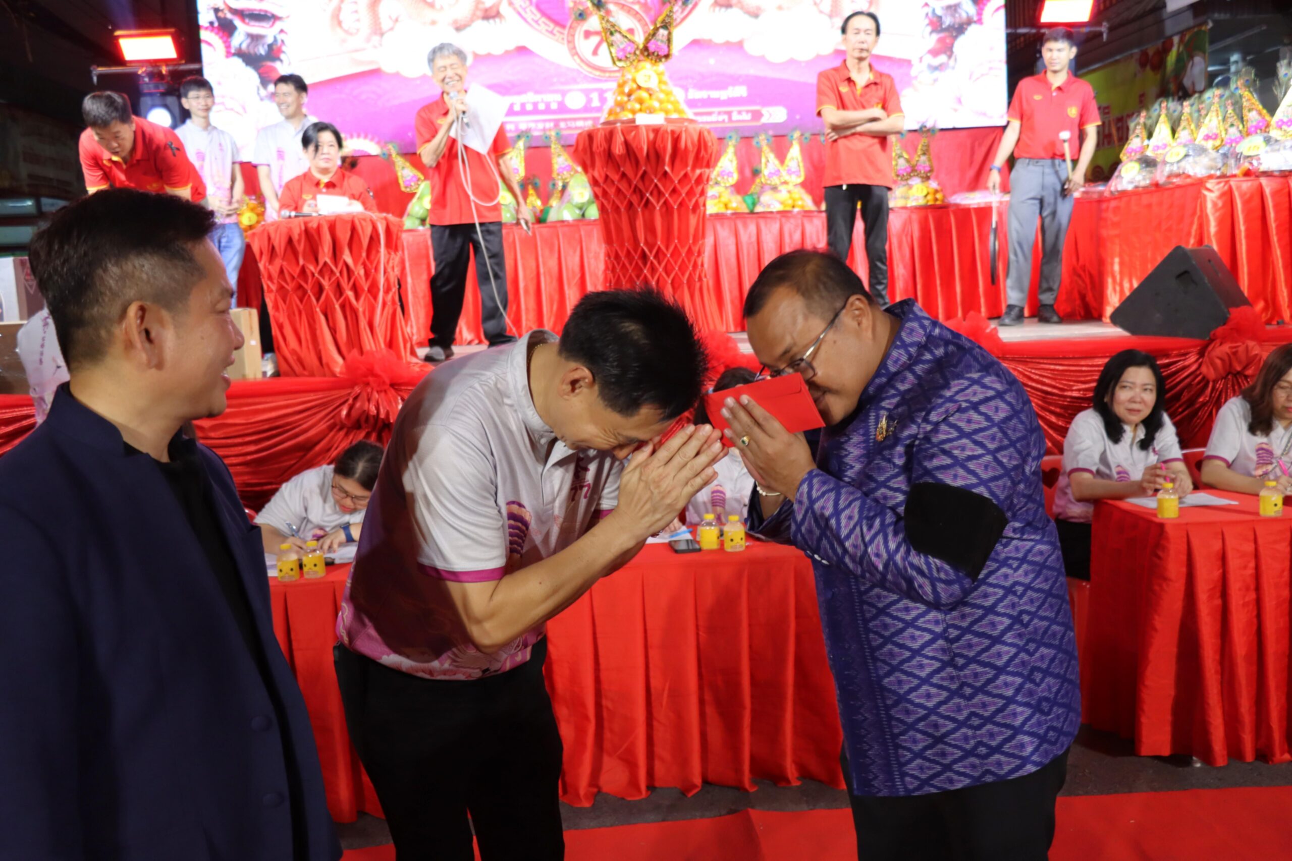 ดร.นุชากร มาศฉมาดล รองนายกเทศมนตรีเมืองร้อยเอ็ด ร่วมงานประมูลสิ่งของมงคลและงานเลี้ยงเฉลิมฉลองสมโภชปึ๋งท้าวกง–ม่า ประจำปี 2568