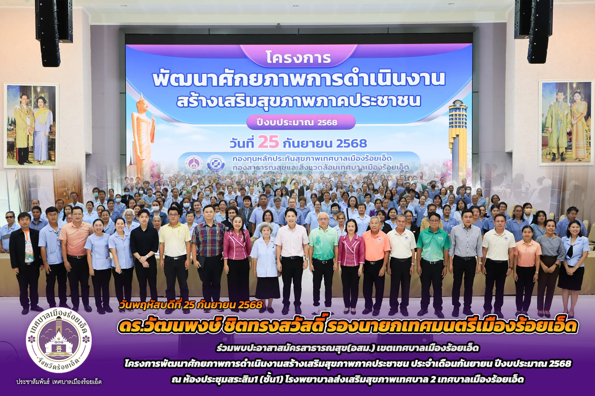 ดร.วัฒนพงษ์ ชิตทรงสวัสดิ์ รองนายกเทศมนตรีเมืองร้อยเอ็ด ร่วมพบปะอาสาสมัครสาธารณสุข(อสม.) เขตเทศบาลเมืองร้อยเอ็ด โครงการพัฒนาศักยภาพการดำเนินงานสร้างเสริมสุขภาพภาคประชาชน ประจำเดือนกันยายน ปีงบประมาณ 2568