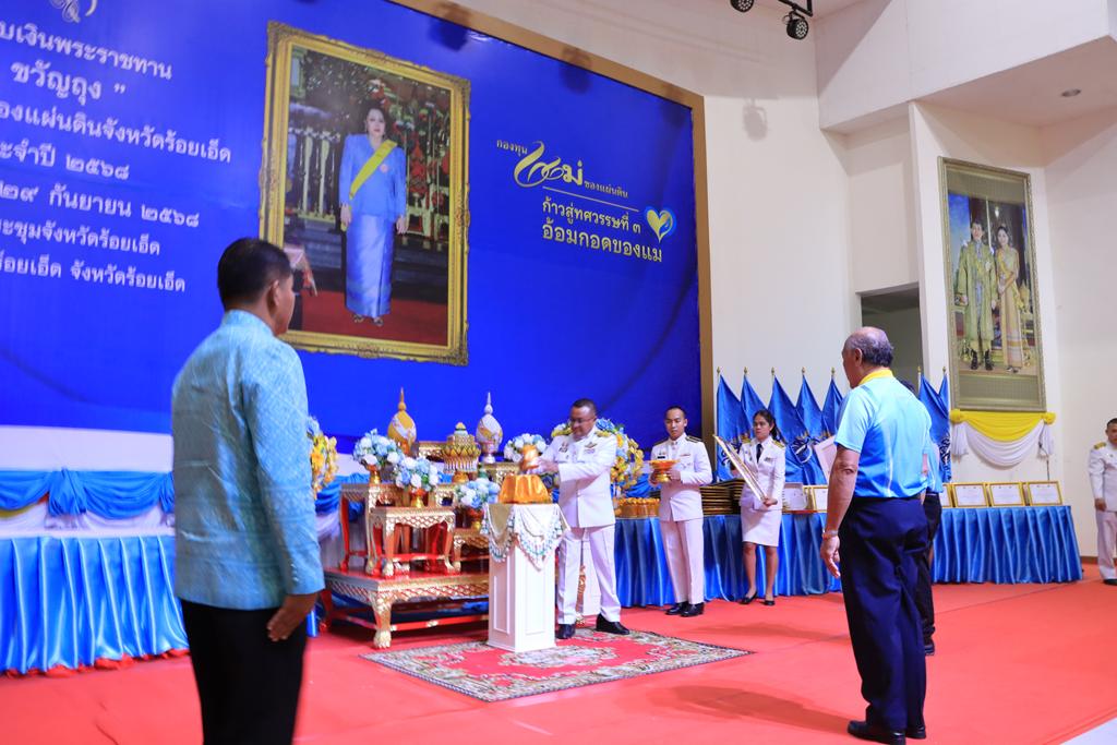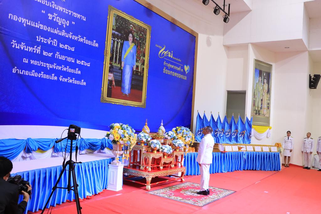 วันจันทร์ที่ 29 กันยายน 2568 เวลา 10.30 น. ดร.วัฒนพงษ์ ชิตทรงสวัสดิ์ รองนายกเทศมนตรีเมืองร้อยเอ็ด พร้อมด้วย หัวหน้าฝ่าย หัวหน้างาน ประธานชุมชนวัดคุ้ม ร่วมกิจกรรมกองทุนแม่ของแผ่นดิน ก้าวสู่ทศวรรษที่ 3 อ้อมกอดของแม่ และพิธีมอบเงินพระราชทานขวัญถุงกองทุนแม่ของแผ่นดิน ประจำปี 2568 และเชิดชูเกียรติหมู่บ้านกองทุนแม่ของแผ่นดินต้นแบบ ระดับจังหวัด/อำเภอ ประจำปี 2568 เพื่อสำนึกในพระมหากรุณาธิคุณใน สมเด็จพระนางเจ้าสิริกิติ์ พระบรมราชินีนาถ พระบรมราชชนนีพันปีหลวง ที่ทรงห่วงใยต่อปัญหาการแพร่ระบาดของยาเสพติดในหมู่บ้าน / ชุมชน และทรงพระราชทานทรัพย์ส่วนพระองค์ นำไปสู่การจัดตั้งเป็นหมู่บ้าน / ชุมชน โดยมี นายชัชวาลย์ เบญจสิริวงศ์ ผู้ว่าราชการจังหวัดร้อยเอ็ด เป็นประธานในพิธีฯ พร้อมด้วย หัวหน้าส่วนราชการ เครือข่ายกองทุนแม่ของแผ่นดินจังหวัดร้อยเอ็ด ผู้แทนหมู่บ้าน และชุมชนกองทุนแม่ของแผ่นดิน เข้าร่วมกิจกรรมฯ ณ หอประชุมจังหวัดร้อยเอ็ด