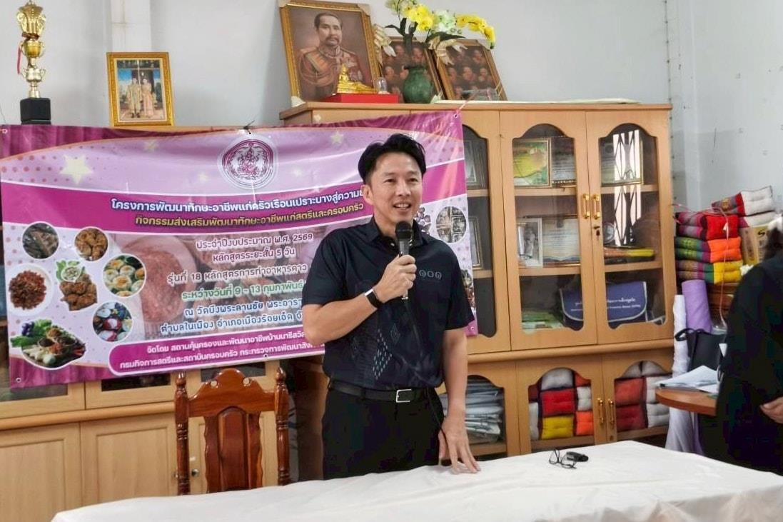 ดร.วัฒนพงษ์ ชิตทรงสวัสดิ์ รองนายกเทศมนตรีเมืองร้อยเอ็ด ร่วมเปิดงานโครงการพัฒนาทักษะอาชีพแก่ครัวเรือนเปราะบางสู่ความยั่งยืน กิจกรรมส่งเสริมพัฒนาทักษะอาชีพแก่สตรีและครอบครัว ปีงบประมาณ 2569 หลักสูตร ระยะสั้น 5 วัน จำนวน 70 คน หลักสูตรทำอาหารคาว-หวาน ระหว่างวันที่ 9 – 13 กุมภาพันธ์ 2569