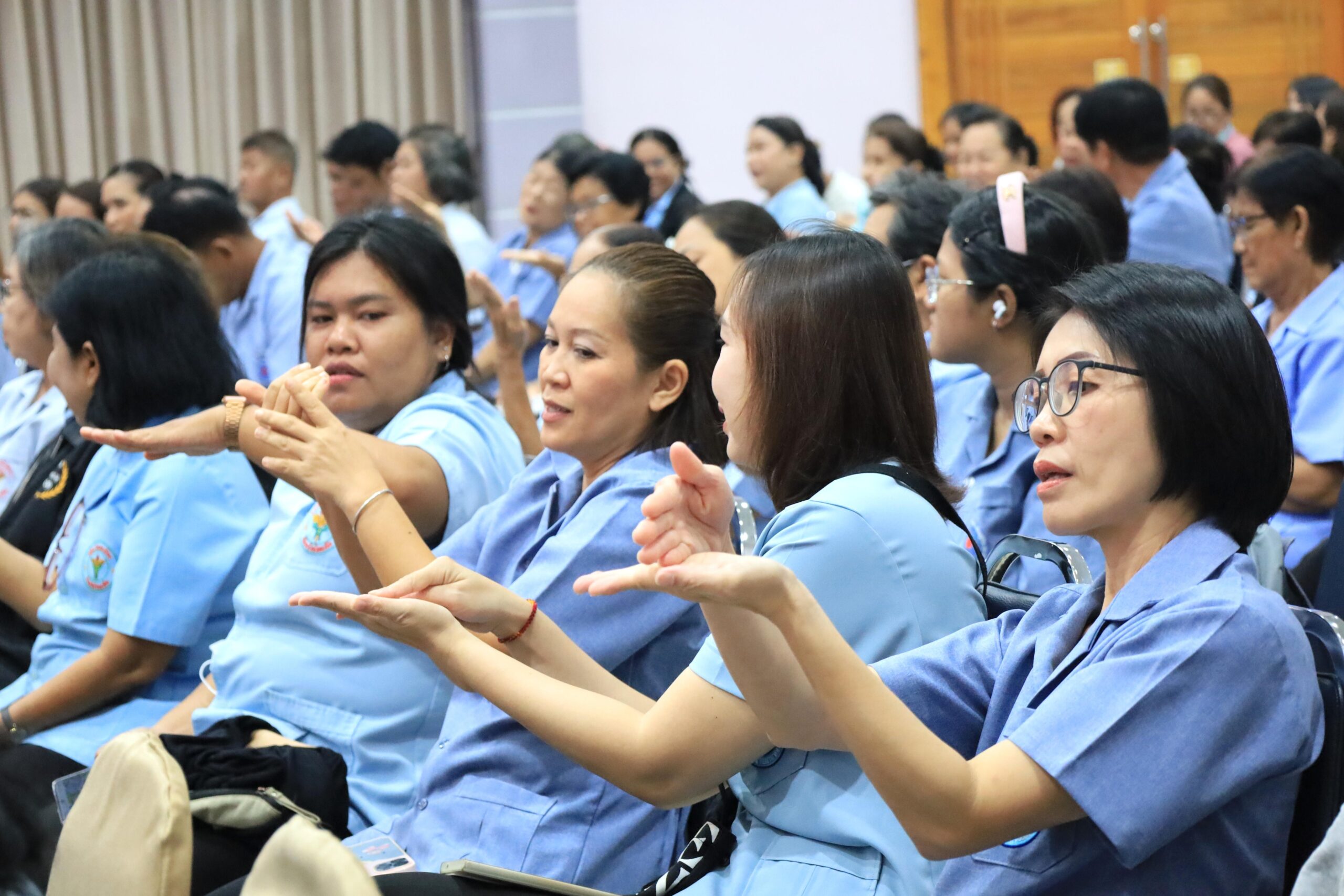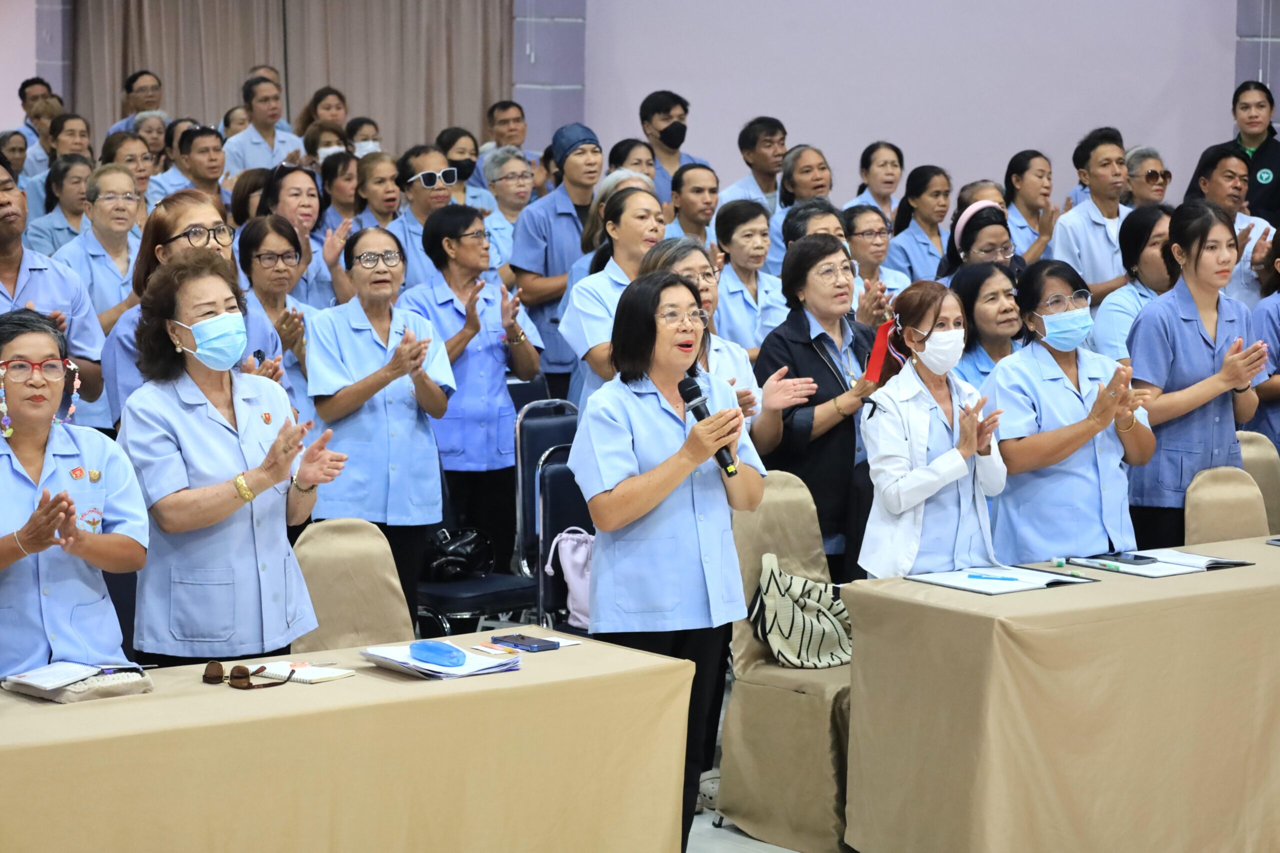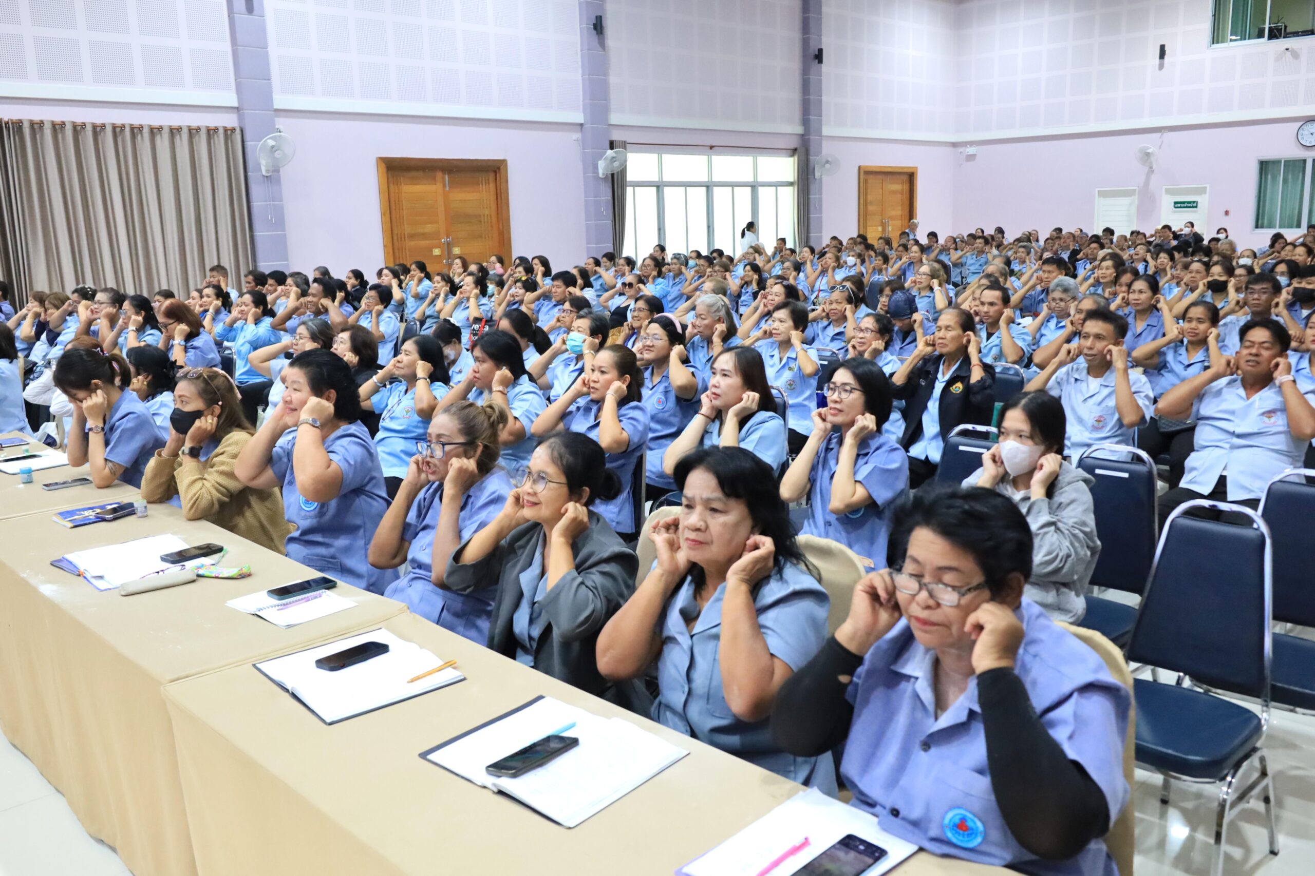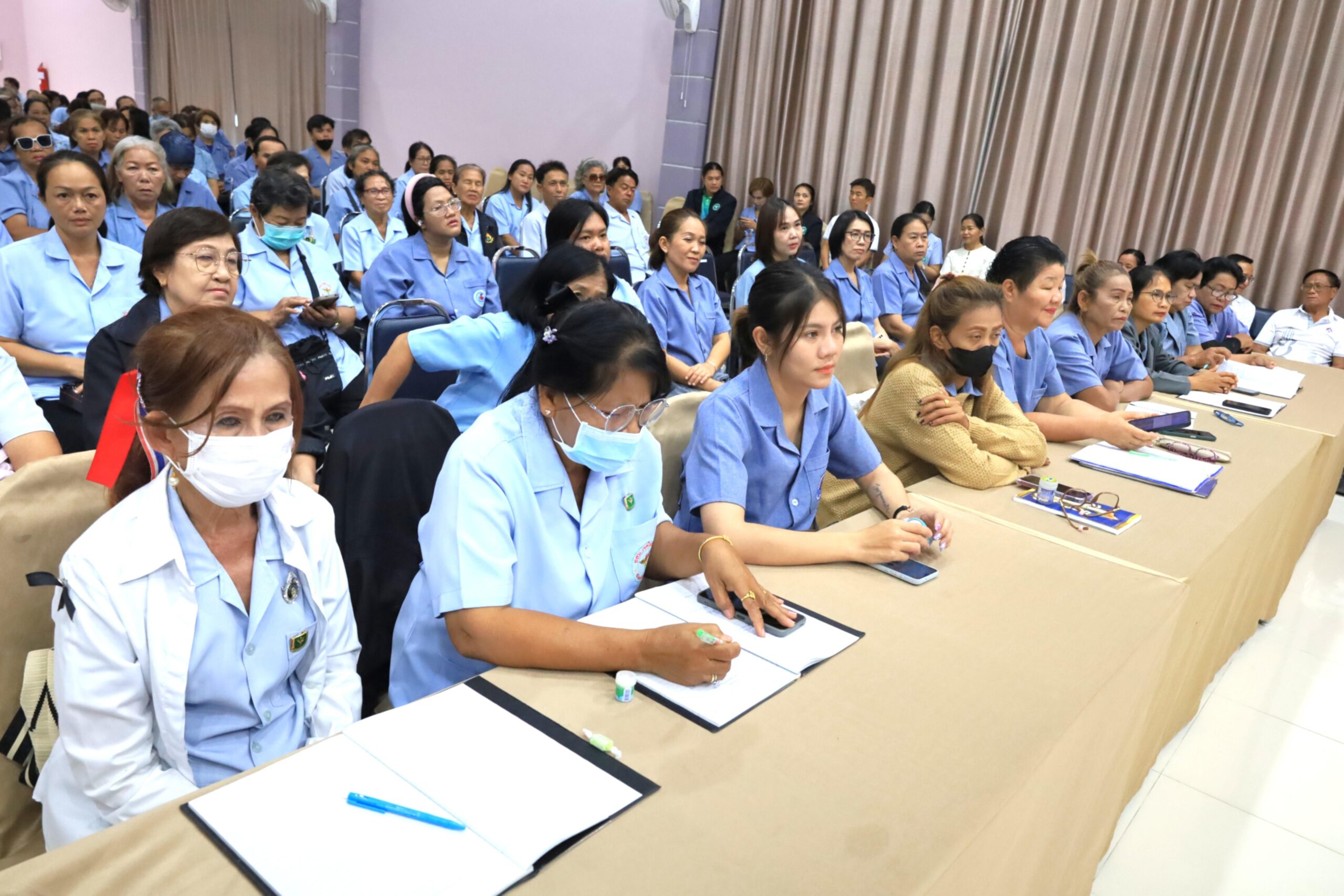 วันพุธที่ 22 เมษายน 2569 เวลา 09.30 น. ดร.วัฒนพงษ์ ชิตทรงสวัสดิ์ รองนายกเทศมนตรีเมืองร้อยเอ็ด พร้อมด้วย นายสมเกียรติ กาญจนหงษ์ รองประธานสภาเทศบาล สมาชิกสภาเทศบาล รองปลัดเทศบาล หัวหน้าส่วนการบริหาร หัวหน้าฝ่าย หัวหน้างาน ภาคีเครือข่ายสุขภาพ และเจ้าหน้าที่ผู้เกี่ยวข้อง ร่วมพบปะอาสาสมัครสาธารณสุข (อสม.) เขตเทศบาลเมืองร้อยเอ็ด โครงการพัฒนาศักยภาพการดำเนินงานสร้างเสริมสุขภาพด้านประชาชน ปีงบประมาณ 2569 โดยมีคณะวิทยากรจากสำนักงานสาธารณสุขอำเภอศรีสมเด็จ จังหวัดร้อยเอ็ด เป็นผู้บรรยายให้ความรู้ ณ ห้องประชุมสระสิม 1 (ชั้น 1) โรงพยาบาลส่งเสริมสุขภาพเทศบาล 2 (สระสิม) เทศบาลเมืองร้อยเอ็ด
