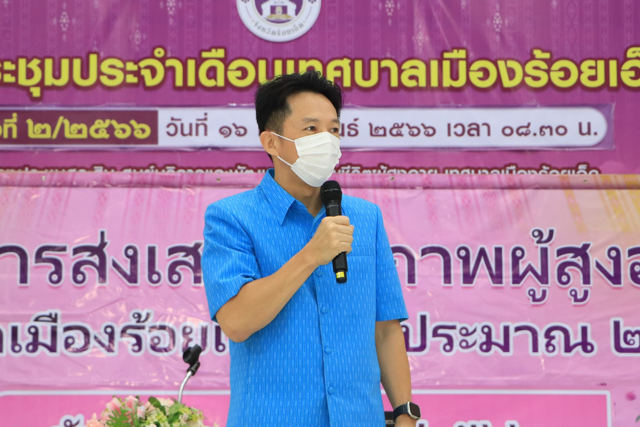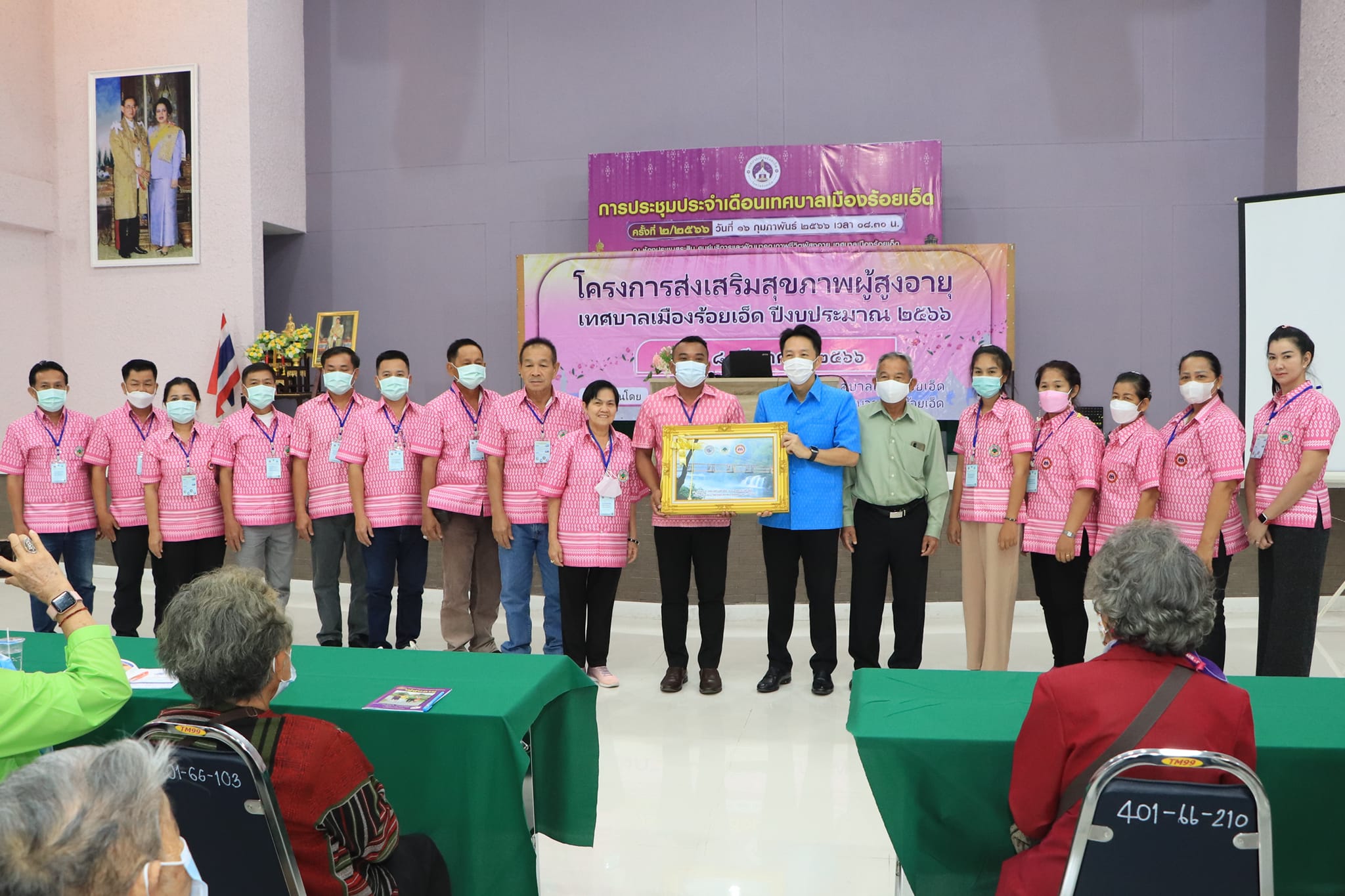 วันพุธที่ 8 มีนาคม 2566 เวลา 09.30 น. ดร.วัฒนพงษ์ ชิตทรงสวัสดิ์ รองนายกเทศมนตรีเมืองร้อยเอ็ด พร้อมด้วย นายอำนวย อายุวัฒน์ สมาชิกสภาเทศบาล, หัวหน้าส่วนการบริหาร, หัวหน้าฝ่าย, หัวหน้างาน, อสม. และพนักงานในสังกัดเทศบาลเมืองร้อยเอ็ด ให้การต้อนรับคณะศึกษาดูงานจากเทศบาลตำบลไทรโยค จังหวัดกาญจนบุรี พร้อมร่วมพบปะผู้สูงอายุ ตามโครงการส่งเสริมสุขภาพผู้สูงอายุ เทศบาลเมืองร้อยเอ็ด ประจำเดือนมีนาคม ปีงบประมาณ 2566 โดยมีการบริการด้านสุขภาพ,การตัดผมฟรี และบริการนวดผ่อนคลาย ซึ่งมีผู้สูงอายุให้ความสนใจเข้าร่วมโครงการอย่างเนืองแน่นเป็นประจำ ทั้งนี้เทศบาลเมืองร้อยเอ็ดได้กำหนดจัดโครงการเป็นประจำในวันพุธที่ 2 ของทุกเดือน ณ ห้องประชุมสระสิม (ชั้น1) ศูนย์บริการและพัฒนาคุณภาพชีวิตผู้สูงอายุเทศบาลเมืองร้อยเอ็ด