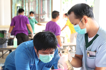 ทำหมันและฉีดวัคซีนป้องกันโรคพิษสุนัขบ้าให้กับสุนัขและแมวภายในเขตเทศบาลเมืองร้อยเอ็ด