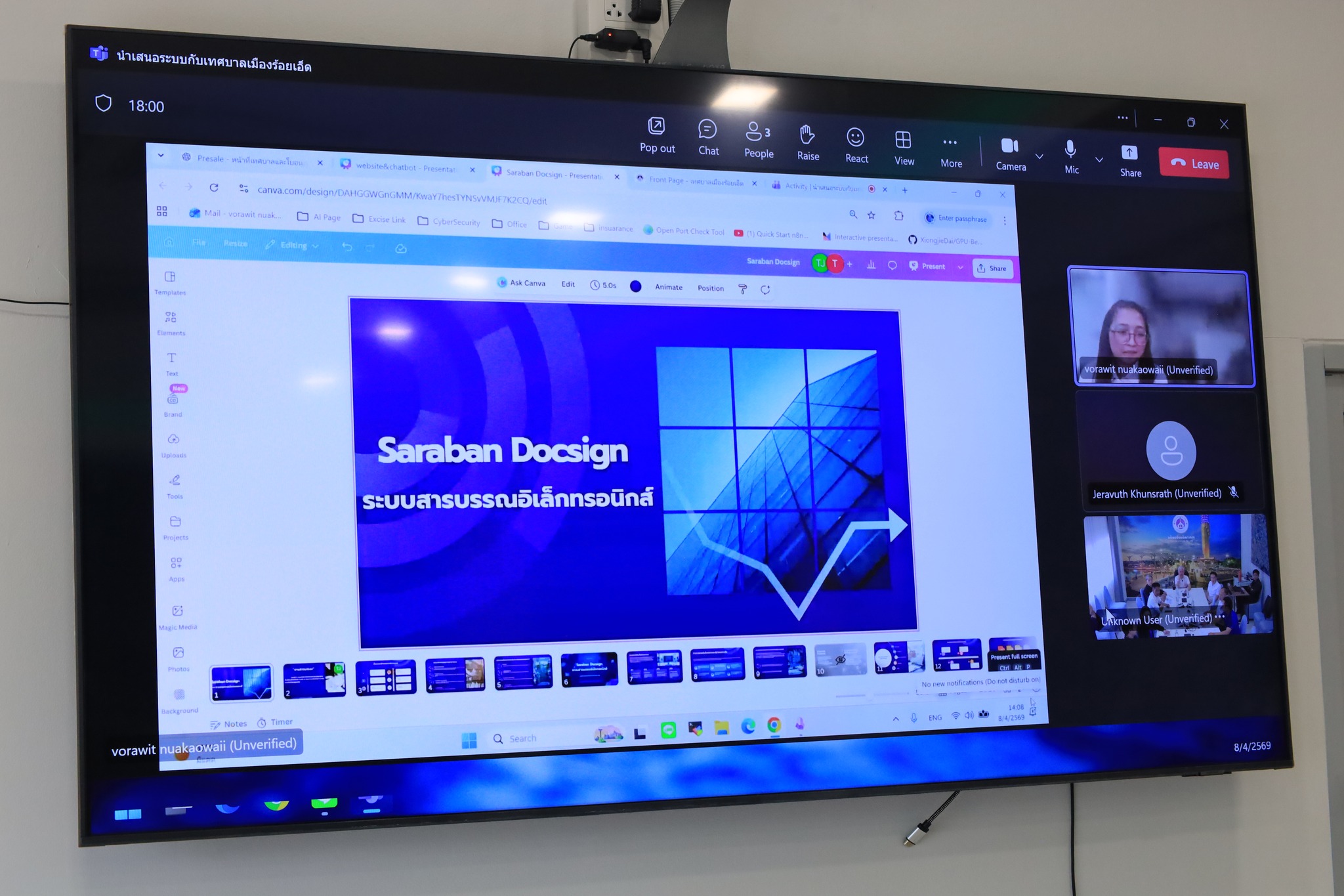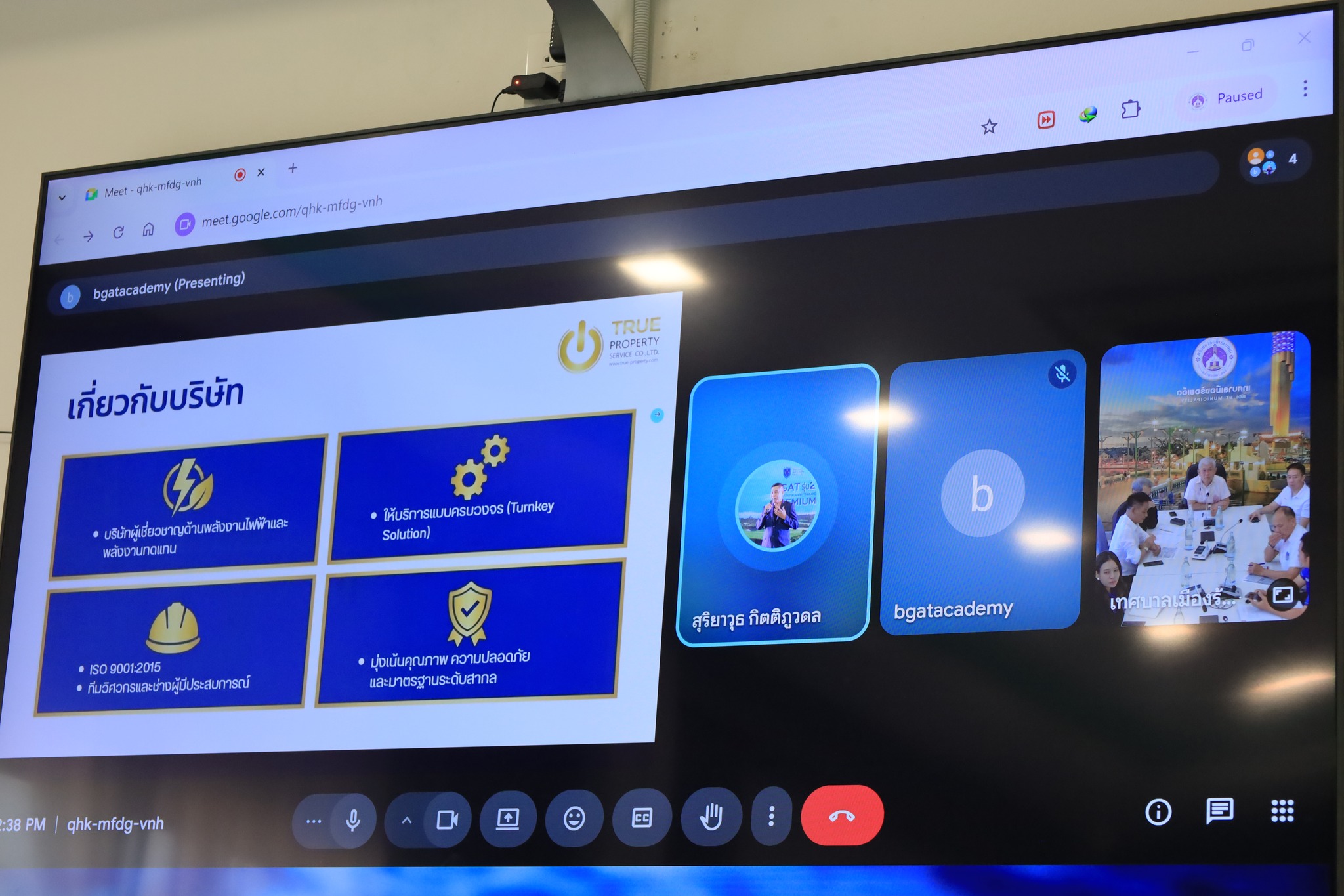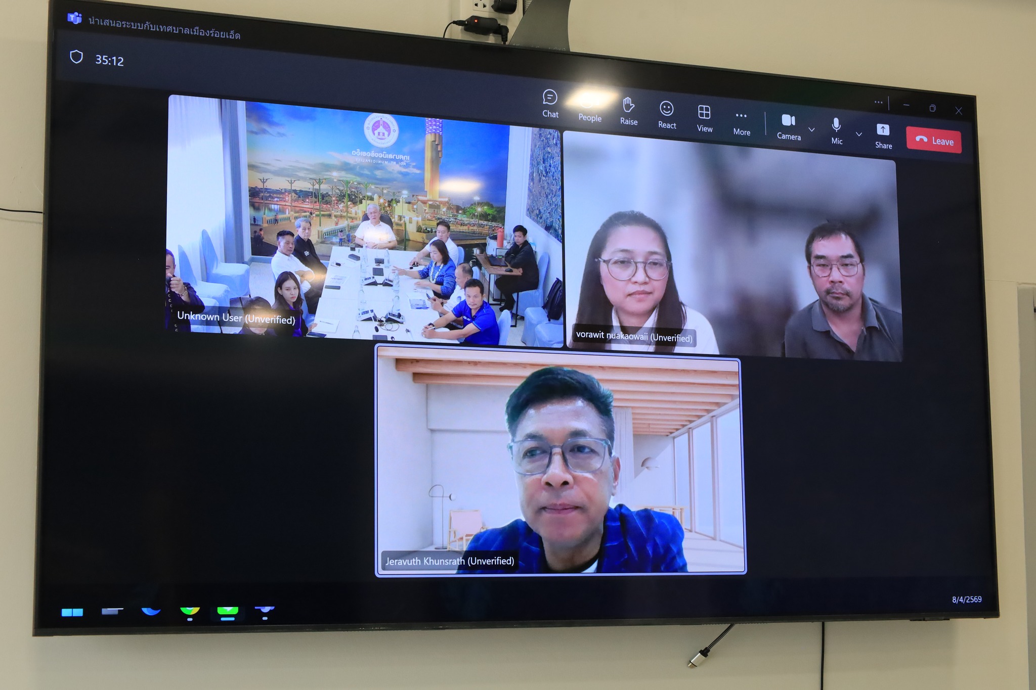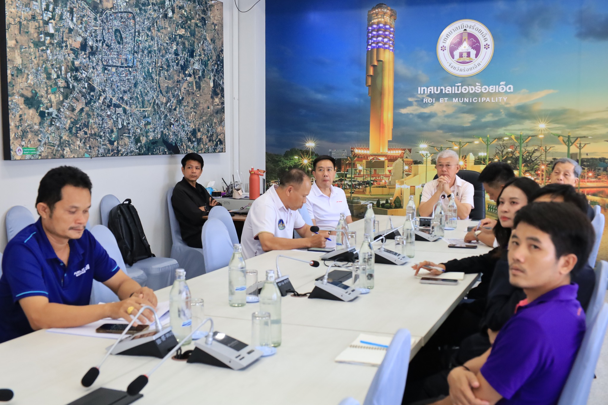 วันพุธที่ 8 เมษายน 2569 เวลา 14.00 น. นายบรรจง โฆษิตจิรนันท์ นายกเทศมนตรีเมืองร้อยเอ็ด เป็นประธานในการประชุม และรับฟังการนำเสนอระบบสารบรรณอิเล็กทรอนิกส์ พร้อมหารือแผนการนำสายสื่อสารลงใต้ดิน ร่วมกับหน่วยงานที่เกี่ยวข้อง ผ่านระบบออนไลน์ (zoom) โอกาสนี้มี นายเรืองรัตน์ รัตนโภคาสถิต รองนายกเทศมนตรีเมืองร้อยเอ็ด นายวิทยา ตรีวิเศษ เลขานุการนายกเทศมนตรีเมืองร้อยเอ็ด นางสาวกรชนก ยุคะลัง รองปลัดเทศบาลฯ นายพัฒนพงษ์ ศรีทอง ผู้อำนวยการกองช่างเทศบาลเมืองร้อยเอ็ดฯ เข้าร่วมรับฟังและปรึกษาหารือดังกล่าว ณ ห้องประชุมปัทมานนท์ Smart Room (ชั้น 2) เทศบาลเมืองร้อยเอ็ด