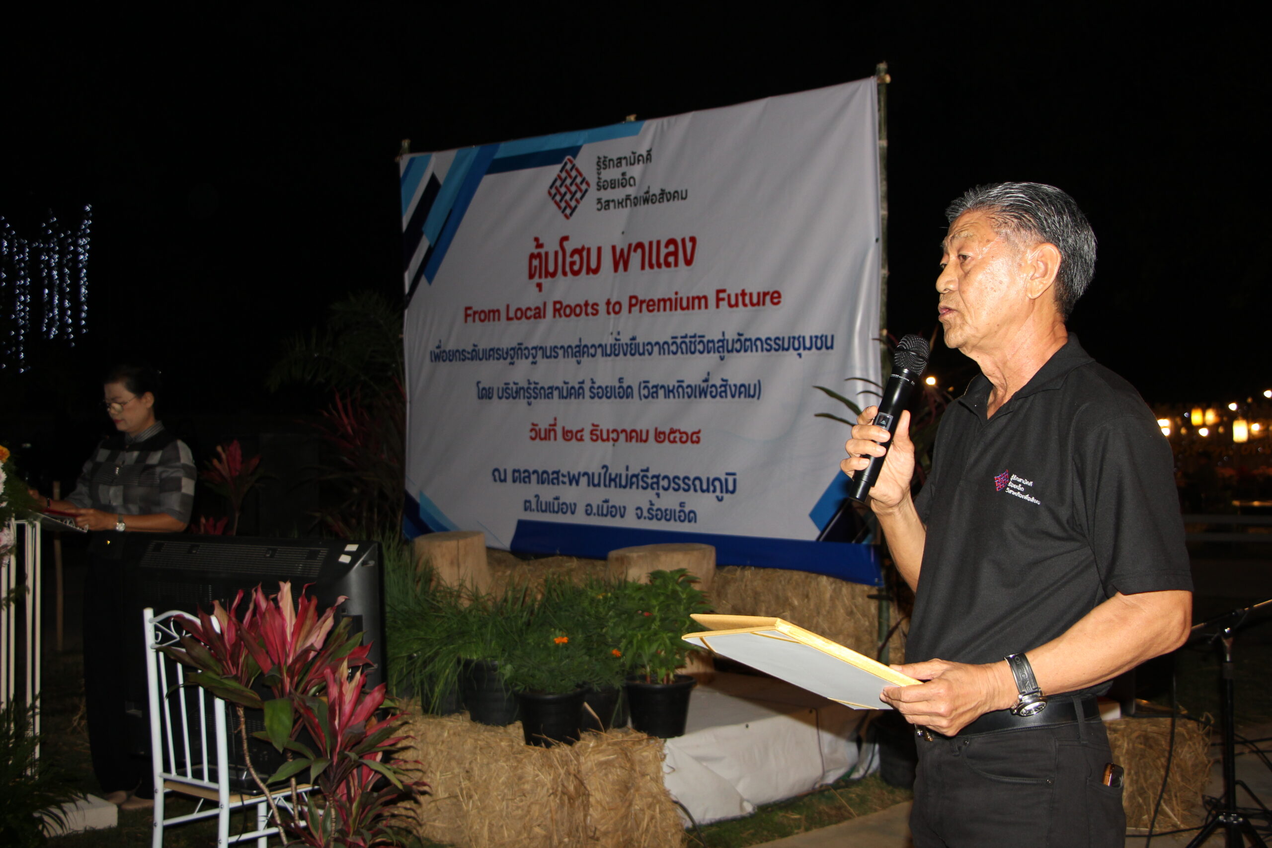วันพุธที่ 24 ธันวาคม 2568 เวลา 18.30 น. นายบรรจง โฆษิตจิรนันท์ นายกเทศมนตรีเมืองร้อยเอ็ด ร่วมกิจกรรม ตุ้มโฮม พาแลง ร่วมกับหัวหน้าส่วนราชการ และส่วนที่เกี่ยวข้อง ทั้งนี้เพื่อพบปะพูดคุย ยกระดับเศรษฐกิจฐานรากสู่ความยั่งยืน จากวิถีชีวิตสู่นวัตกรรมชุมชน โดยบริษัทรู้รักสามัคคี ร้อยเอ็ด (วิสาหกิจเพื่อสังคม) โดยมีนางสาวปราณี วงศ์บุตร รองผู้ว่าราชการจังหวัดร้อยเอ็ด เป็นประธานเปิดงาน ณ ตลาดสะพานใหม่ศรีสุวรรณภูมิ ตำบลในเมือง อำเภอเมือง จังหวัด 101