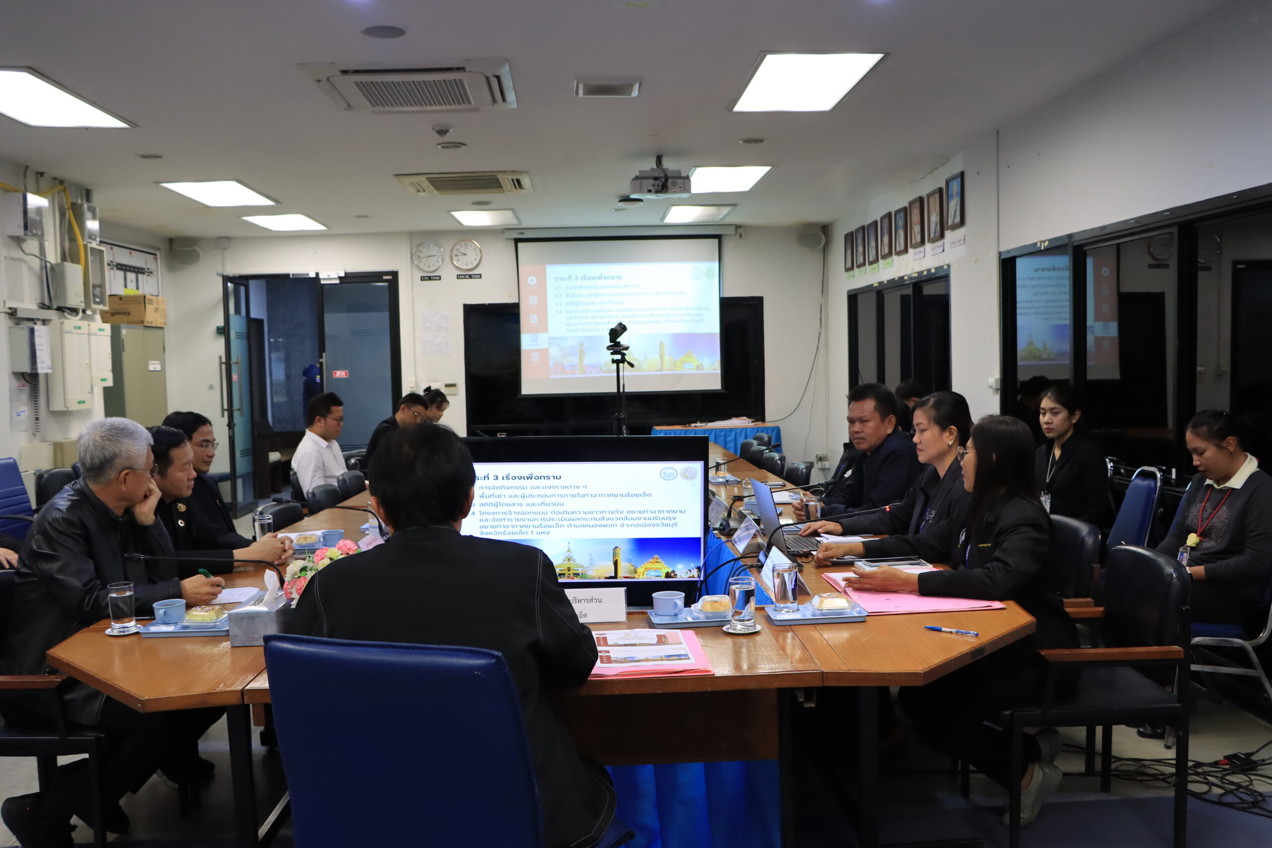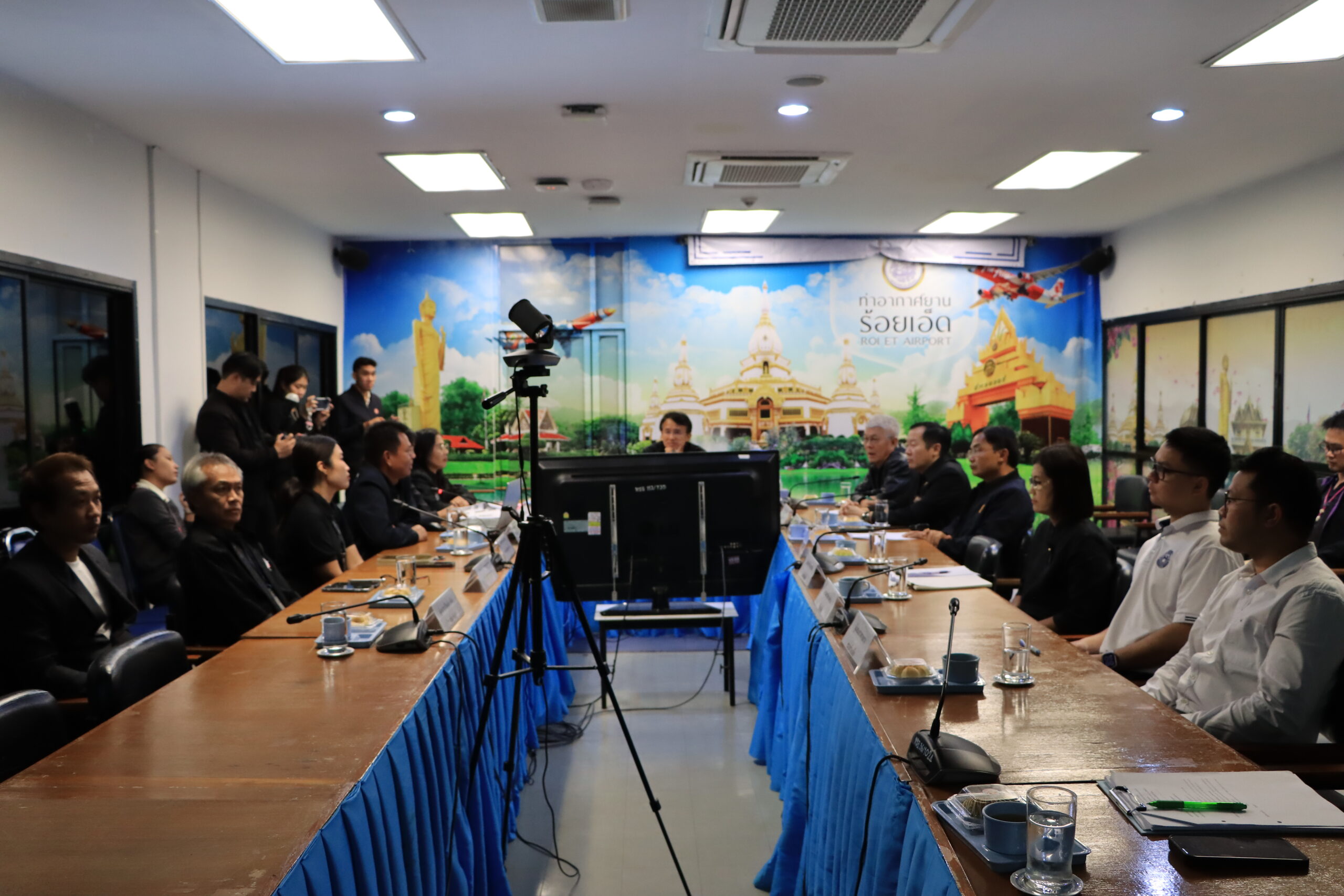 วันพุธที่ 26 พฤศจิกายน 2568 เวลา 09.30 น.นายบรรจง โฆษิตจิรนันท์ นายกเทศมนตรีเมืองร้อยเอ็ด นายชยุตม์ โอวาทกานนท์ เลขานุการนายกเทศมนตรีเมืองร้อยเอ็ด เข้าร่วมประชุมคณะกรรมการพัฒนาการใช้บริการท่าอากาศยานร้อยเอ็ด ร่วมกับหน่วยงานเกี่ยวข้อง เพื่อพัฒนามาตรฐานการให้บริการ ทั้งด้านอาคารสถานที่ และงบประมาณในการดำเนินงานฯของท่าอากาศยานร้อยเอ็ดให้เป็นไปตามกฎหมาย ระเบียบ ข้อกำหนดและมาตรฐาน ข้อบังคับของคณะกรรมการการบินพลเรือน โดยเน้นความปลอดภัยเป็นสำคัญ โดยมีนายเศกสิทธิ์ ไวนิยมพงศ์ นายกองค์การบริหารส่วนจังหวัดร้อยเอ็ด เป็นประธานในการประชุม ณ ห้องประชุม ชั้น 2 ท่าอากาศยานร้อยเอ็ด ตำบลหนองพอก อำเภอธวัชบุรี จังหวัดร้อยเอ็ด