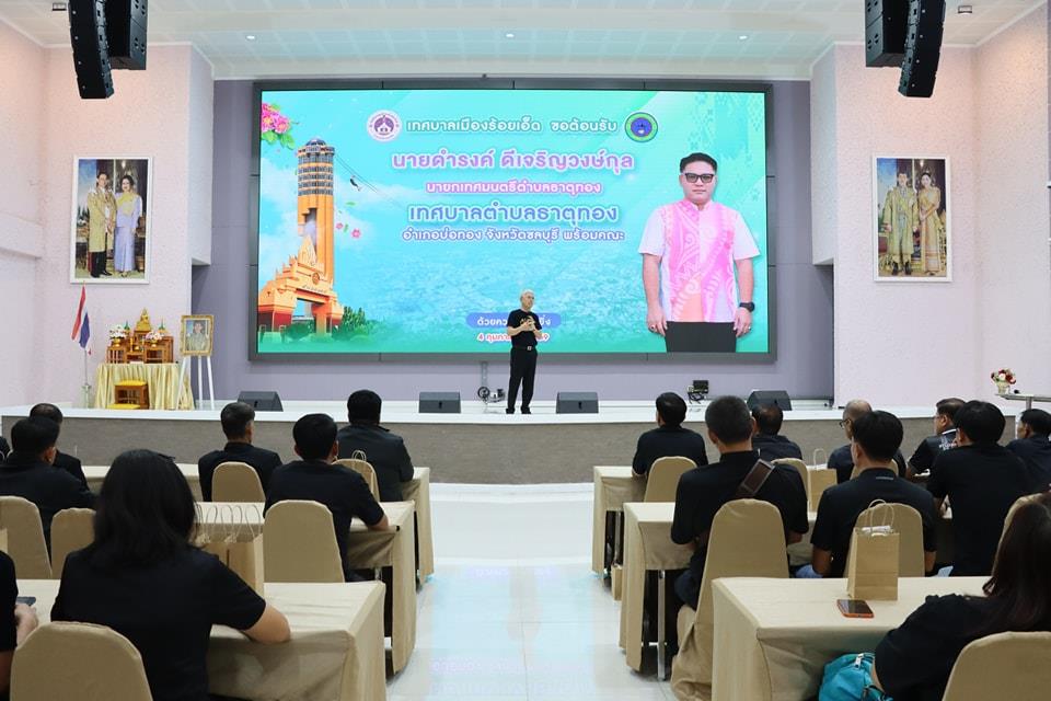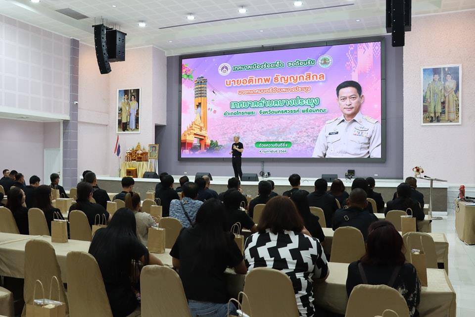วันพุธที่ 4 กุมภาพันธ์ 2569 เวลา 09.00 น. นายบรรจง โฆษิตจิรนันท์ นายกเทศมนตรีเมืองร้อยเอ็ด พร้อมด้วย นายชยุตม์ โอวาทกานนท์ เลขานุการนายกเทศมนตรีเมืองร้อยเอ็ด รองปลัดเทศบาล หัวหน้าส่วนการบริหาร หัวหน้าฝ่าย หัวหน้างาน และเจ้าหน้าที่ผู้เกี่ยวข้อง ให้การต้อนรับคณะศึกษาดูงานจากเทศบาลตำบลธาตุทอง อำเภอบ่อทอง จังหวัดชลบุรี และเทศบาลตำบลบางประมุง อำเภอโกรกพระ จังหวัดนครสวรรค์ ซึ่งขอเข้าศึกษาดูงานด้านการบริหารจัดการบ้านเมืองที่ดี และการบริหารจัดการบึงพลาญชัยให้เป็นพื้นที่สาธารณะสำหรับประชาชน ณ ห้องประชุมสระสิม 1 (ชั้น 1) โรงพยาบาลส่งเสริมสุขภาพเทศบาล 2 (สระสิม) เทศบาลเมืองร้อยเอ็ด