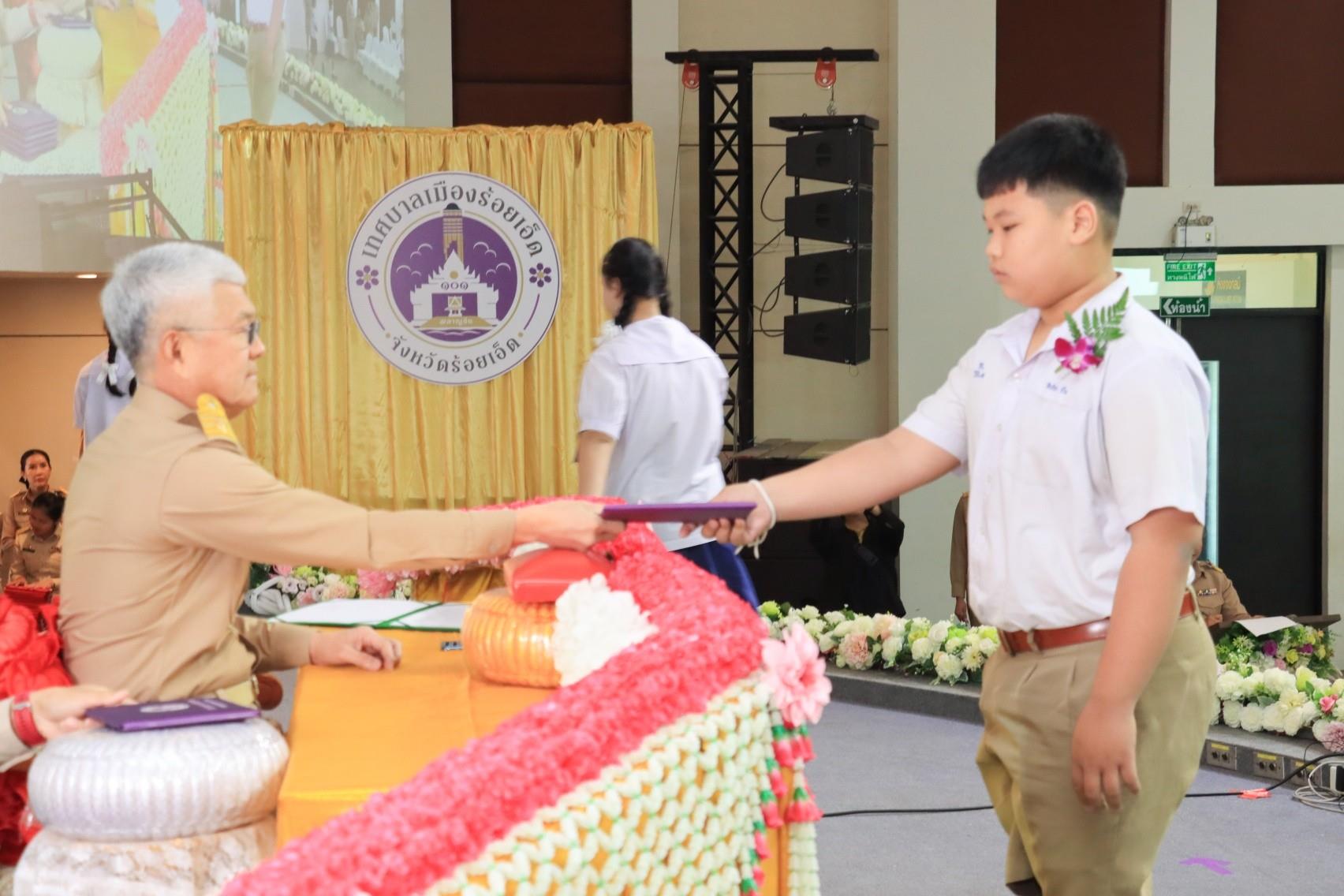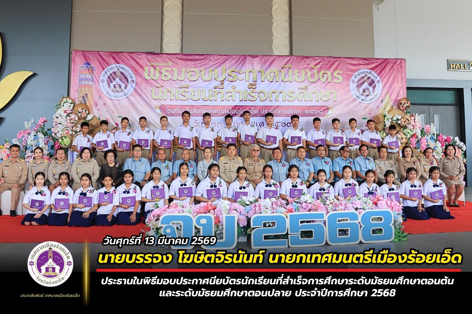 นายกเทศมนตรีเมืองร้อยเอ็ด เป็นประธานในพิธีมอบประกาศนียบัตรนักเรียนที่สำเร็จการศึกษาระดับมัธยมศึกษาตอนต้น และระดับมัธยมศึกษาตอนปลาย ประจำปีการศึกษา 2568
