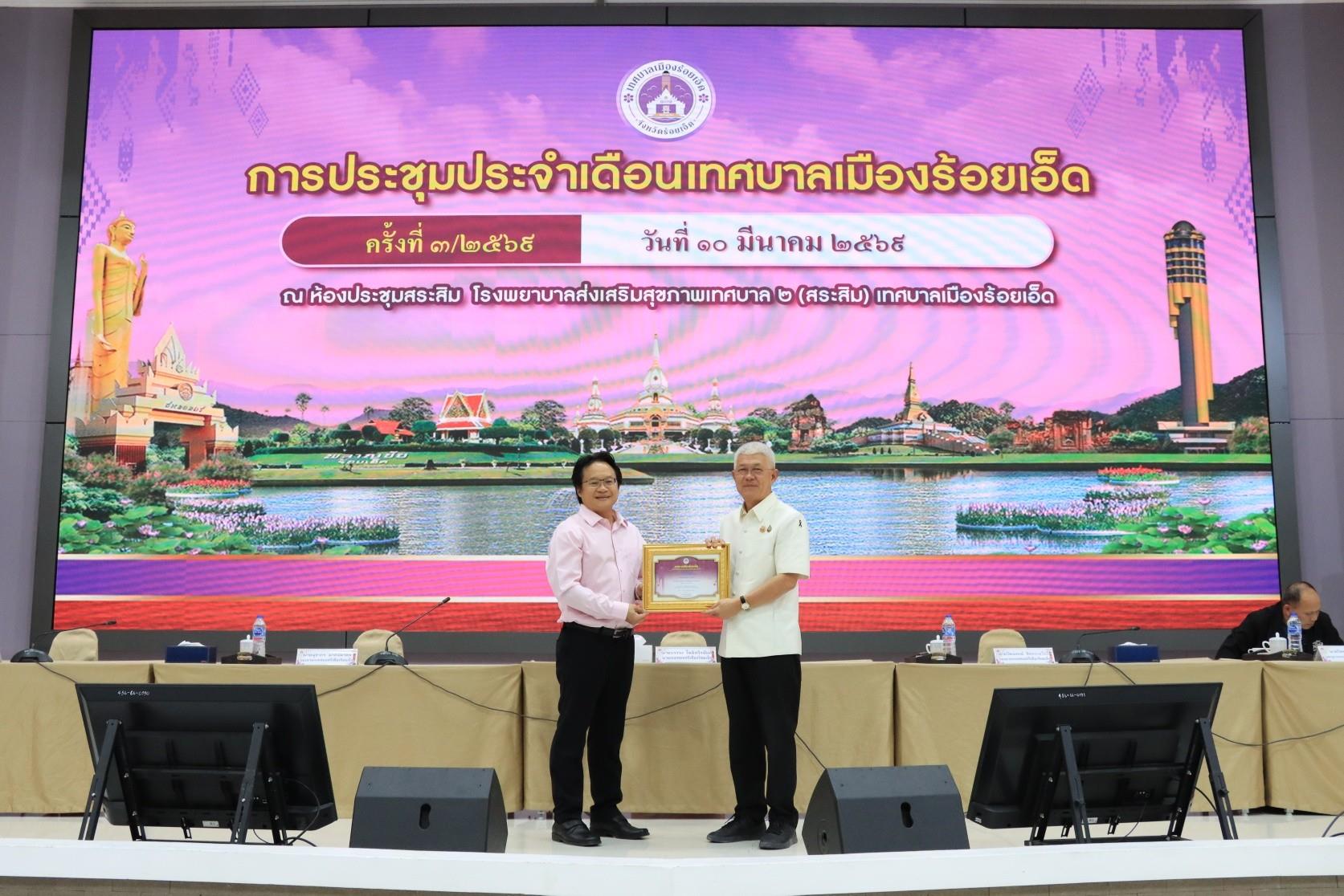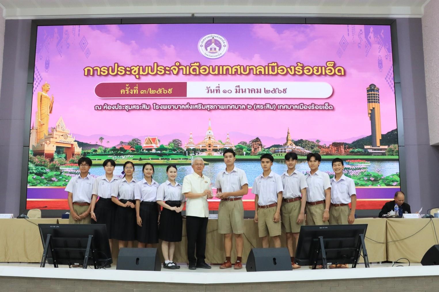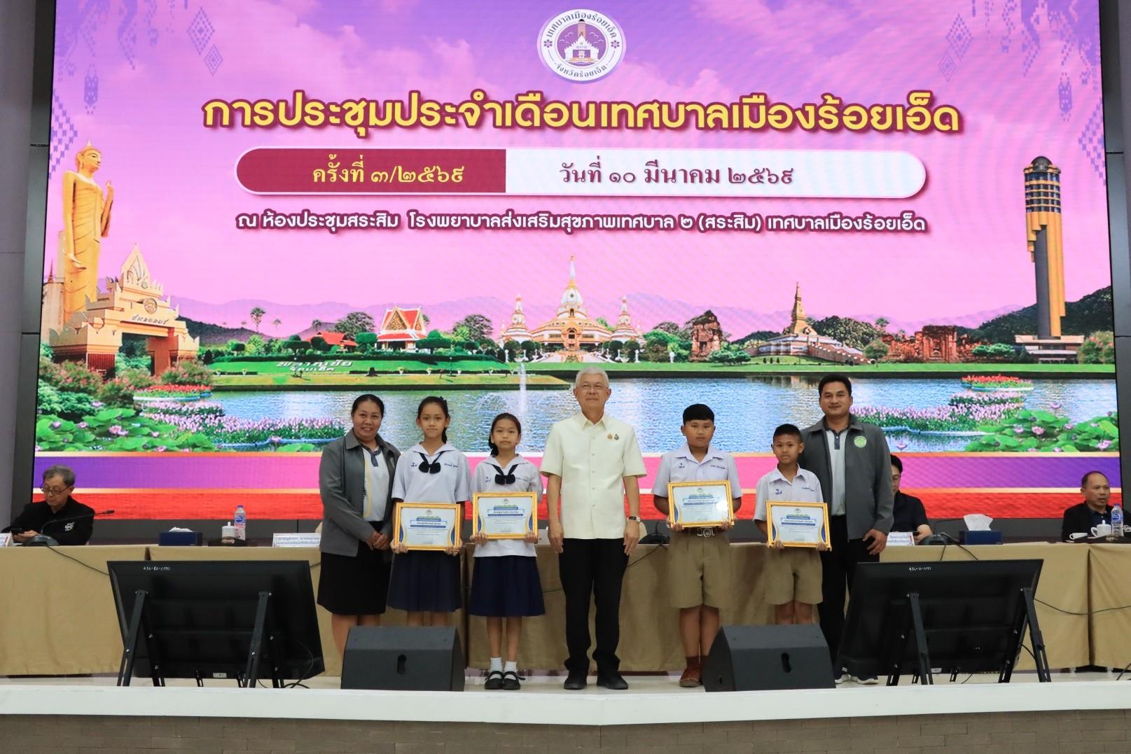 วันอังคารที่ 10 มีนาคม 2569 เวลา 13.30 น. เทศบาลเมืองร้อยเอ็ด เปิดประชุมประจำเดือนมีนาคม ครั้งที่ 3/2569 โดยมี นายบรรจง โฆษิตจิรนันท์ นายกเทศมนตรีเมืองร้อยเอ็ด เป็นประธานในการประชุมฯ และร่วมบันทึกภาพพร้อมแสดงความยินดีกับนักเรียนและบุคลากรในสังกัดเทศบาลเมืองร้อยเอ็ด ที่สร้างชื่อเสียงให้กับโรงเรียนและองค์กร ซึ่งมีคณะผู้บริหารเทศบาล ปลัดเทศบาล รองปลัดเทศบาล หัวหน้าส่วนการบริหาร ผู้บริหารสถานศึกษา หัวหน้าฝ่าย หัวหน้างาน และพนักงานสังกัดเทศบาลเมืองร้อยเอ็ด ร่วมรายงานผลการดำเนินงานในรอบเดือนที่ผ่านมา และรับฟังนโยบายการทำงานจากผู้บริหารเทศบาลเมืองร้อยเอ็ด ณ ห้องประชุมสระสิม 1 (ชั้น 1) โรงพยาบาลส่งเสริมสุขภาพเทศบาล 2 (สระสิม) เทศบาลเมืองร้อยเอ็ด
