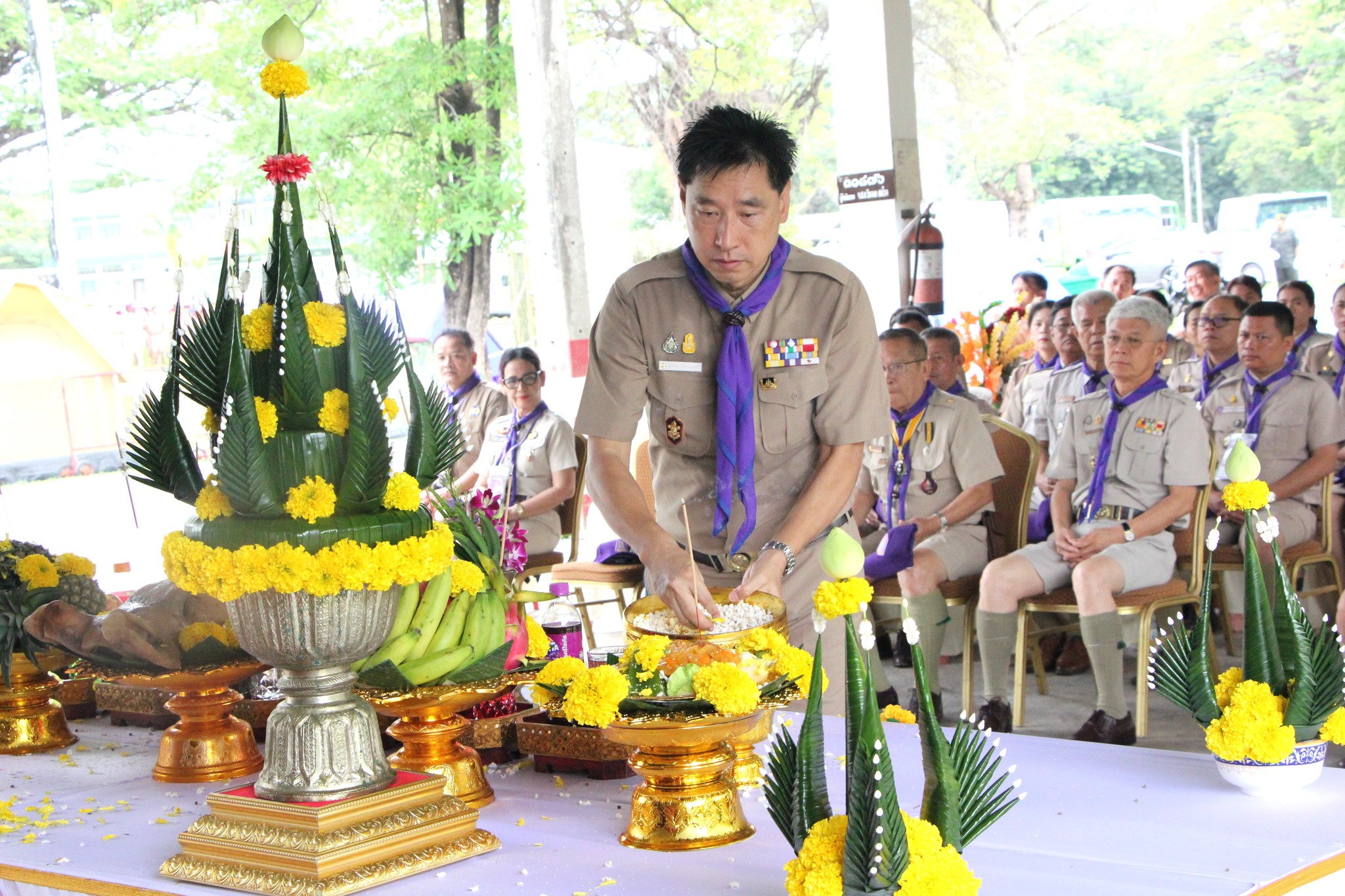 นายกเทศมนตรีเมืองร้อยเอ็ด ร่วมพิธีบวงสรวงและถวายราชสดุดีพระบรมราชานุสรณ์ รัชกาลที่ 6 งานชุมนุมลูกเสือท้องถิ่นแห่งชาติ ครั้งที่ 6 พ.ศ.2567