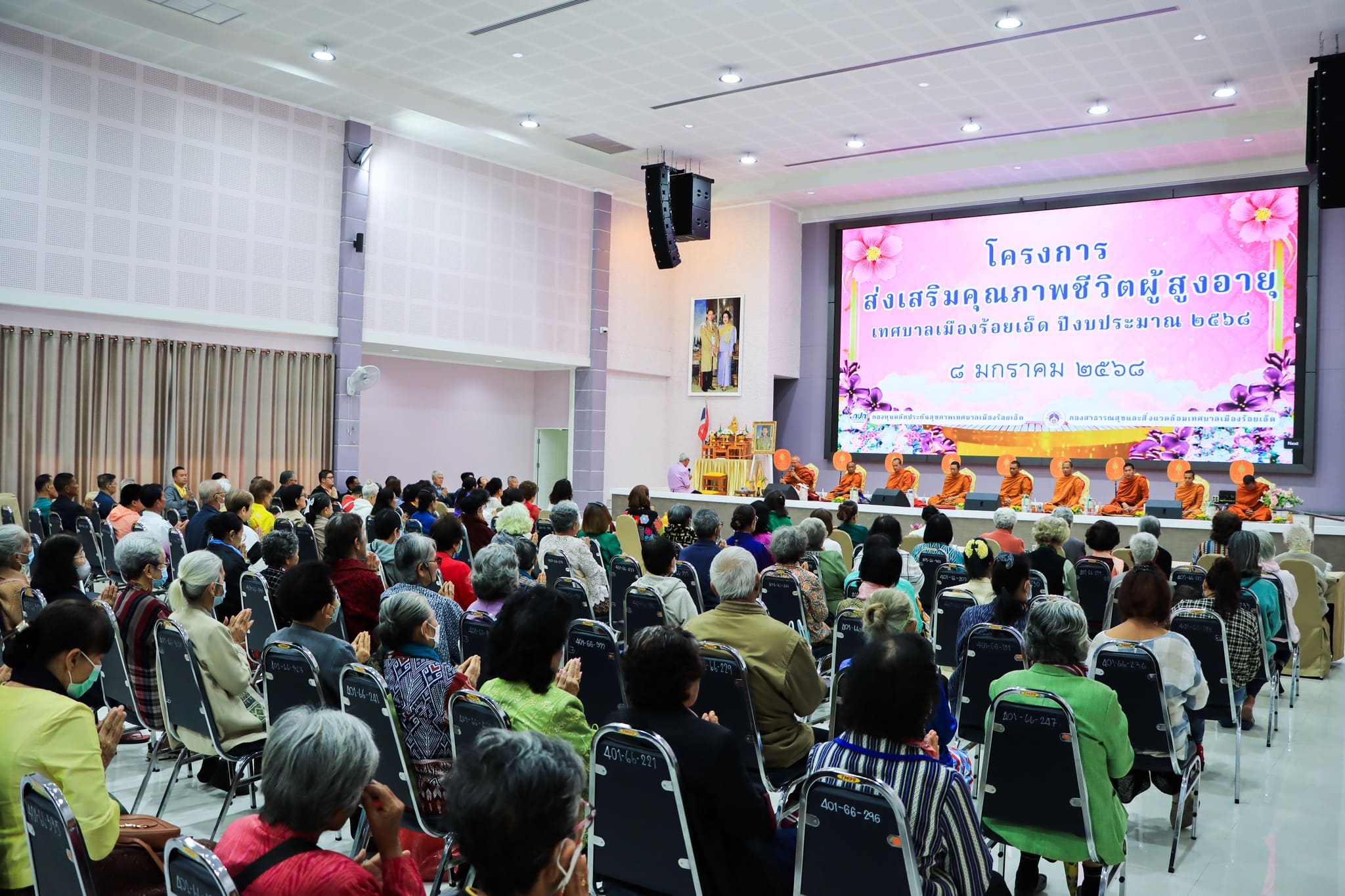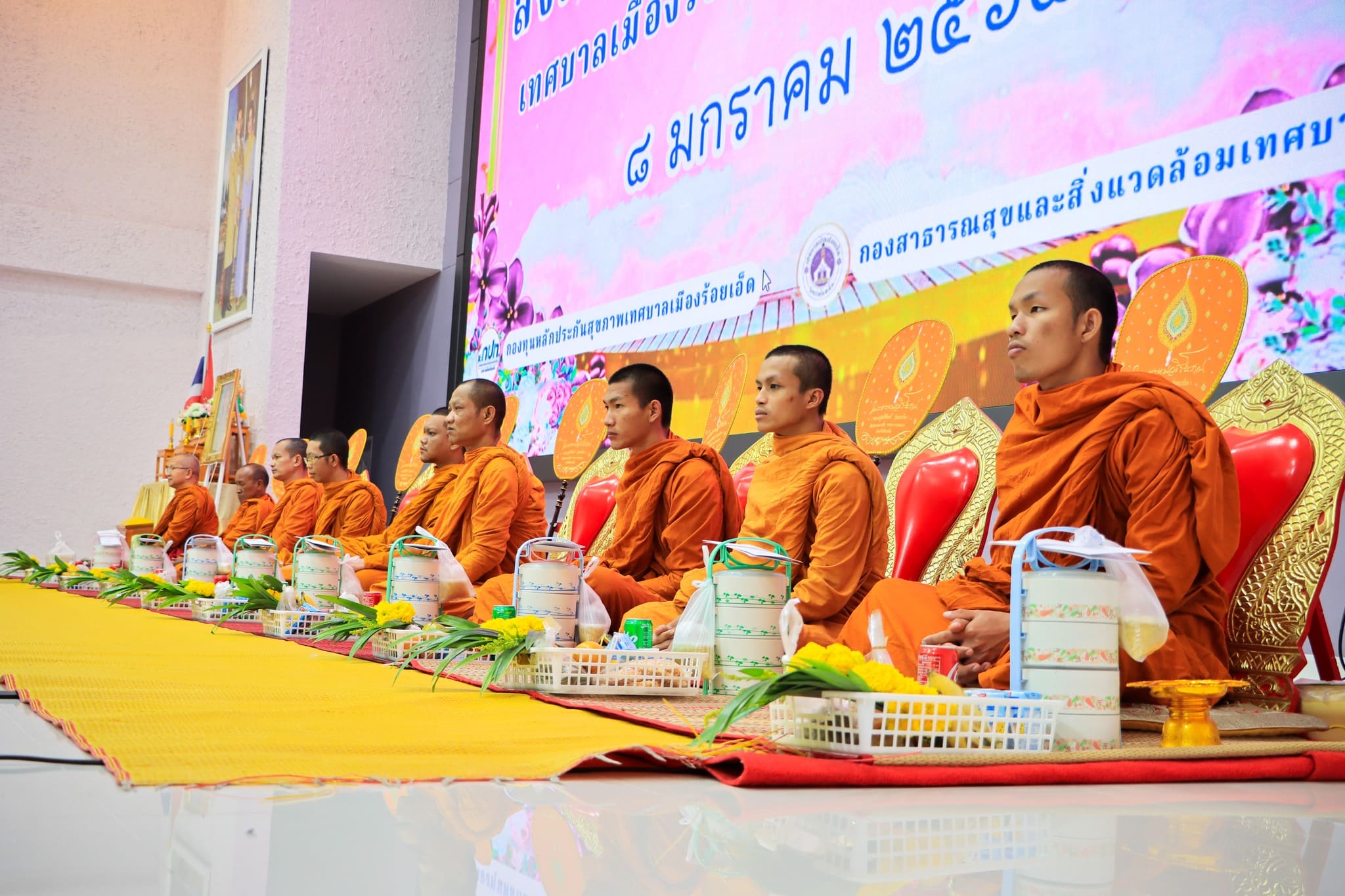 นายกเทศมนตรีเมืองร้อยเอ็ด ร่วมพบปะผู้สูงอายุตามโครงการส่งเสริมสุขภาพผู้สูงอายุเทศบาลเมืองร้อยเอ็ด ประจำเดือนมกราคม ปีงบประมาณ 2568 พร้อมทั้งทำบุญเลี้ยงพระ เนื่องในโอกาสวันขึ้นปีใหม่ 2568 ณ ห้องประชุมสระสิม 1 (ชั้น 1) ศูนย์บริการและพัฒนาคุณภาพชีวิตผู้สูงอายุเทศบาลเมืองร้อยเอ็ด