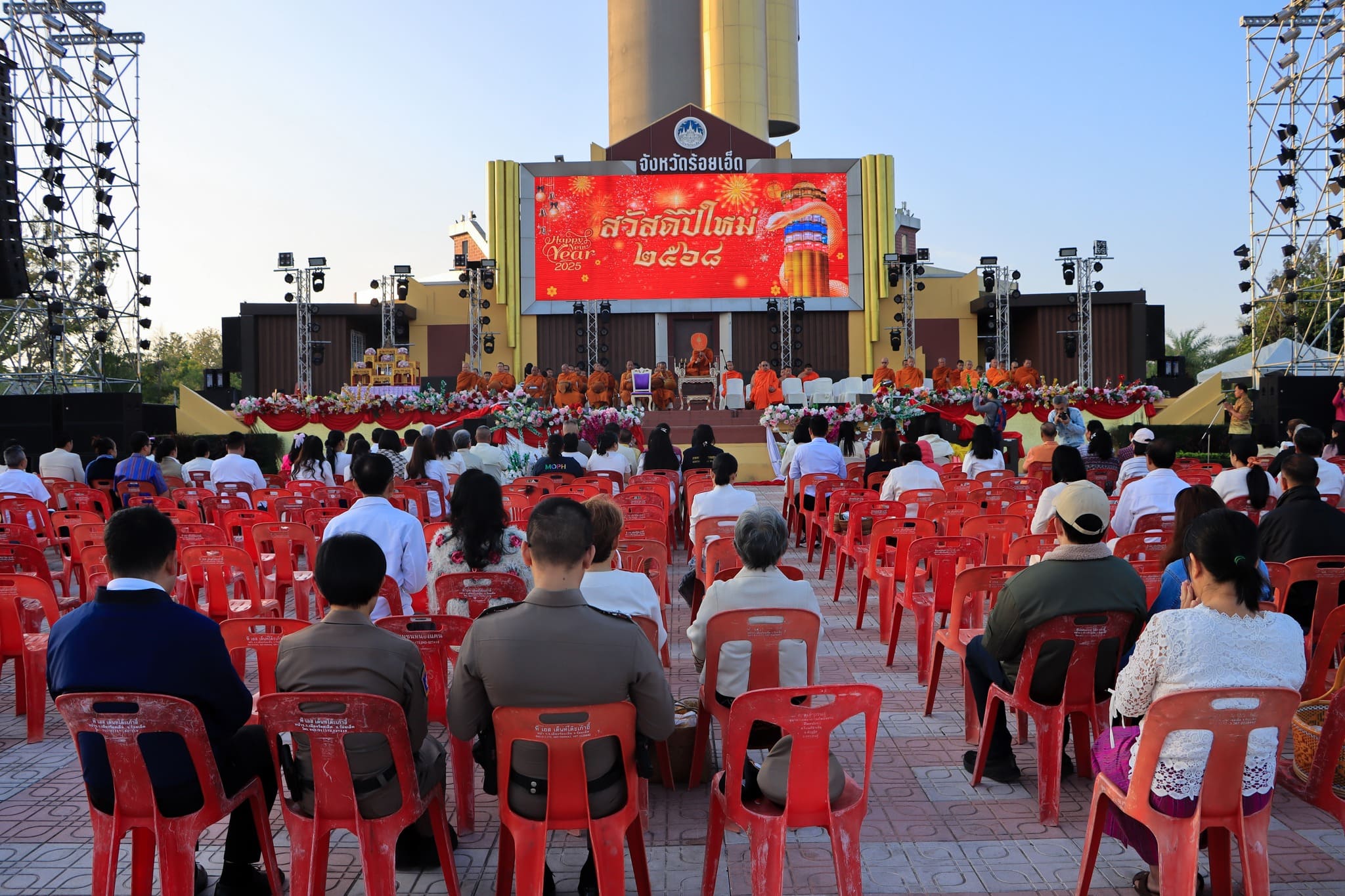 นายกเทศมนตรีเมืองร้อยเอ็ด ร่วมพิธีทำบุญตักบาตรพระสงฆ์ 101 รูป เนื่องในวันขึ้นปีใหม่ 2568 ณ ลานสาเกตนคร สวนสมเด็จพระศรีนครินทร์ร้อยเอ็ด