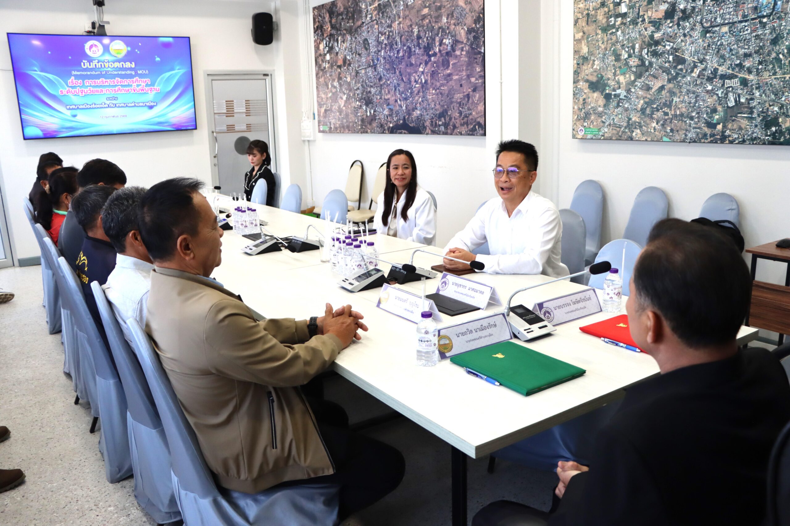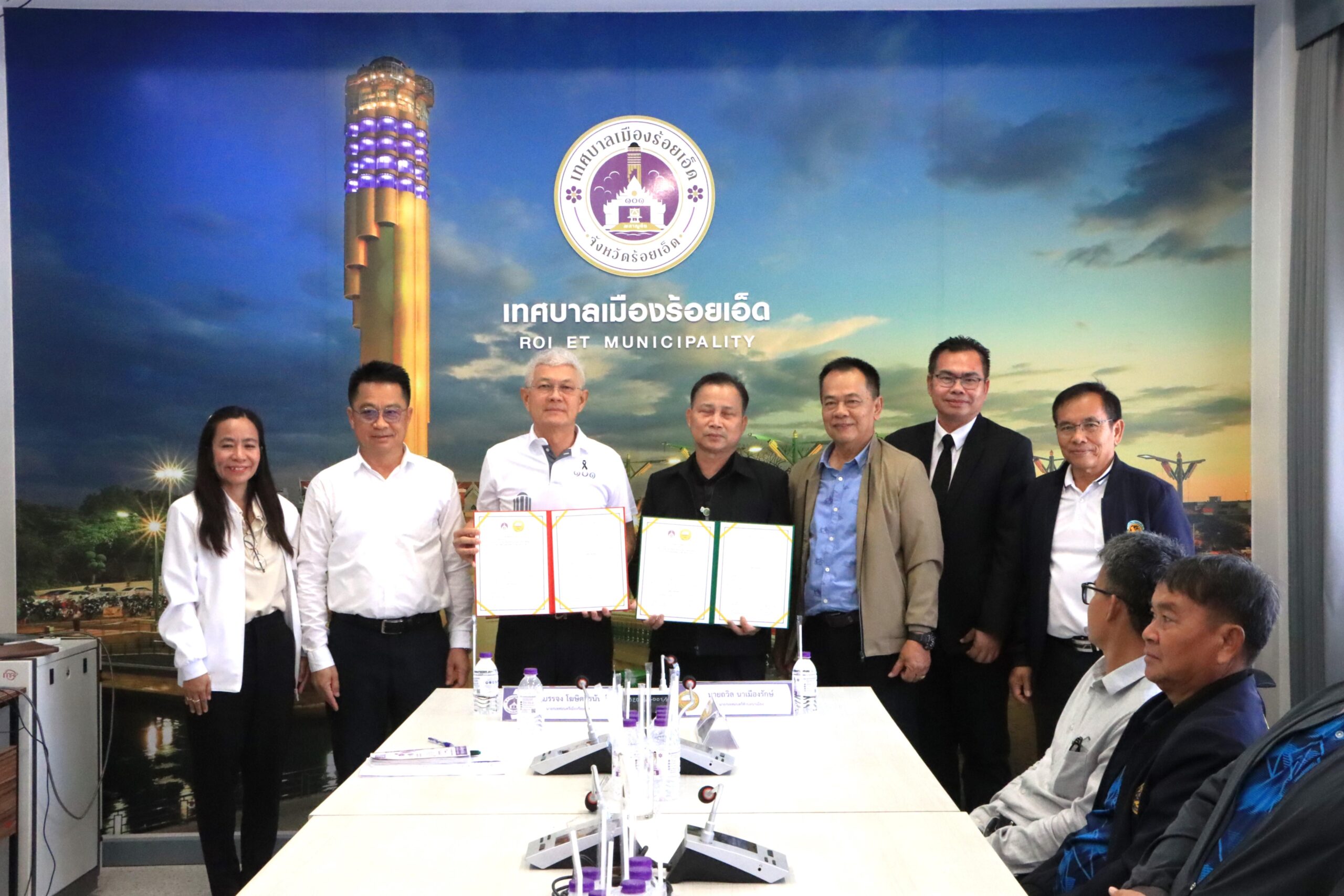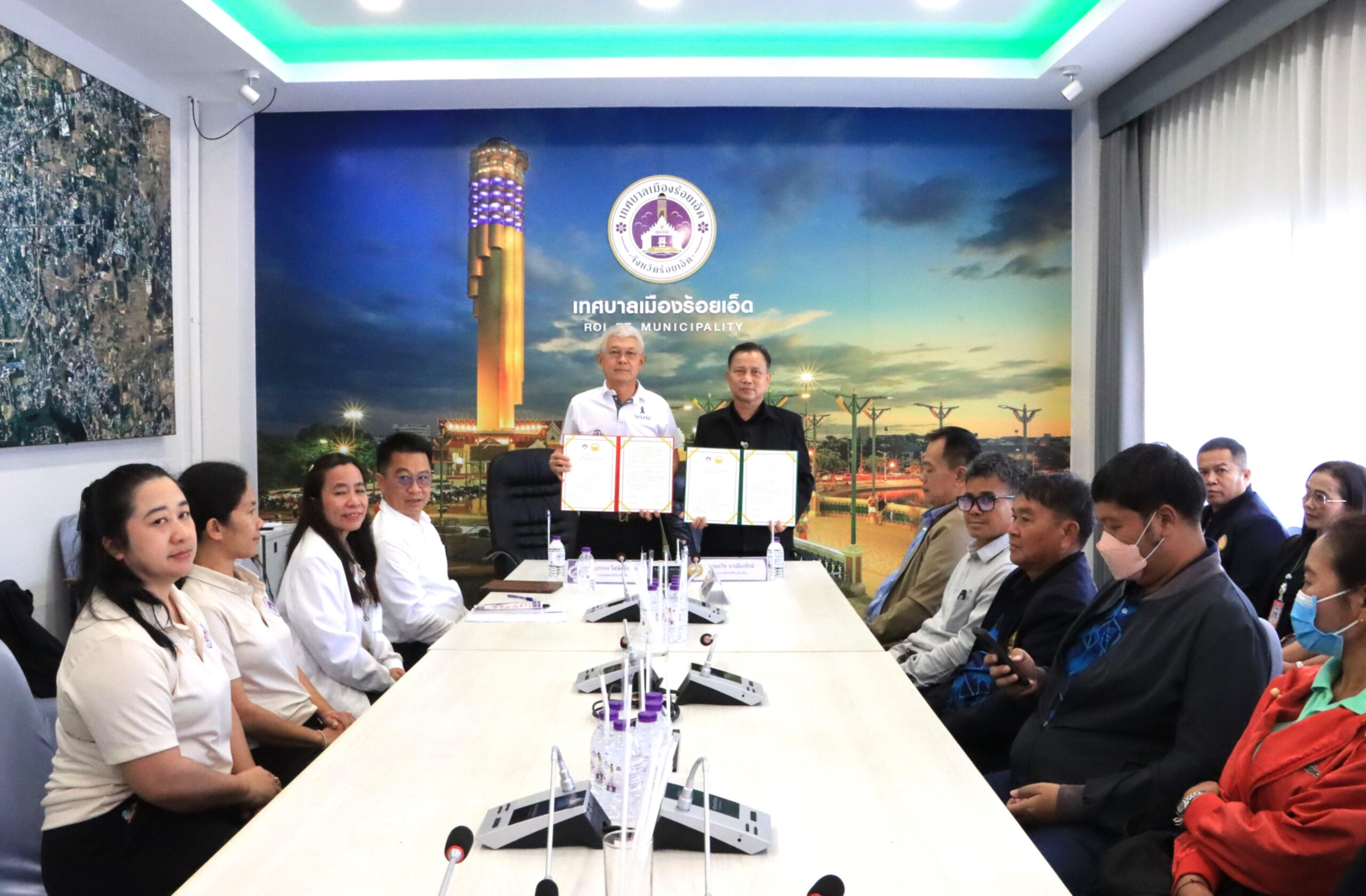 วันพฤหัสบดีที่ 12 กุมภาพันธ์ 2569 เวลา 10.00 น. นายบรรจง โฆษิตจิรนันท์ นายกเทศมนตรีเมืองร้อยเอ็ด พร้อมด้วย ดร.นุชากร มาศฉมาดล รองนายกเทศมนตรีเมืองร้อยเอ็ด นายสถิตย์ ศรีสงคราม ปลัดเทศบาลเมืองร้อยเอ็ด หัวหน้าส่วนการบริหาร หัวหน้าฝ่าย และเจ้าหน้าที่ผู้เกี่ยวข้องเทศบาลเมืองร้อยเอ็ด ร่วมลงนามบันทึกข้อตกลงความเข้าใจ (Memorandum of understanding : MOU) เรื่อง การบริหารจัดการศึกษาระดับปฐมวัย ระหว่างเทศบาลเมืองร้อยเอ็ด กับ เทศบาลตำบลนาเมือง เพื่อพัฒนาการเรียนการสอนให้สอดคล้องกับความต้องการของท้องถิ่น ในด้านการพัฒนาบุคลากร การพัฒนาหลักสูตร การพัฒนานวัตกรรมการเรียนการสอนให้มีมาตรฐาน ณ ห้องประชุมปัทมานนท์ Smart Room (ชั้น 2) สำนักงานเทศบาลเมืองร้อยเอ็ด