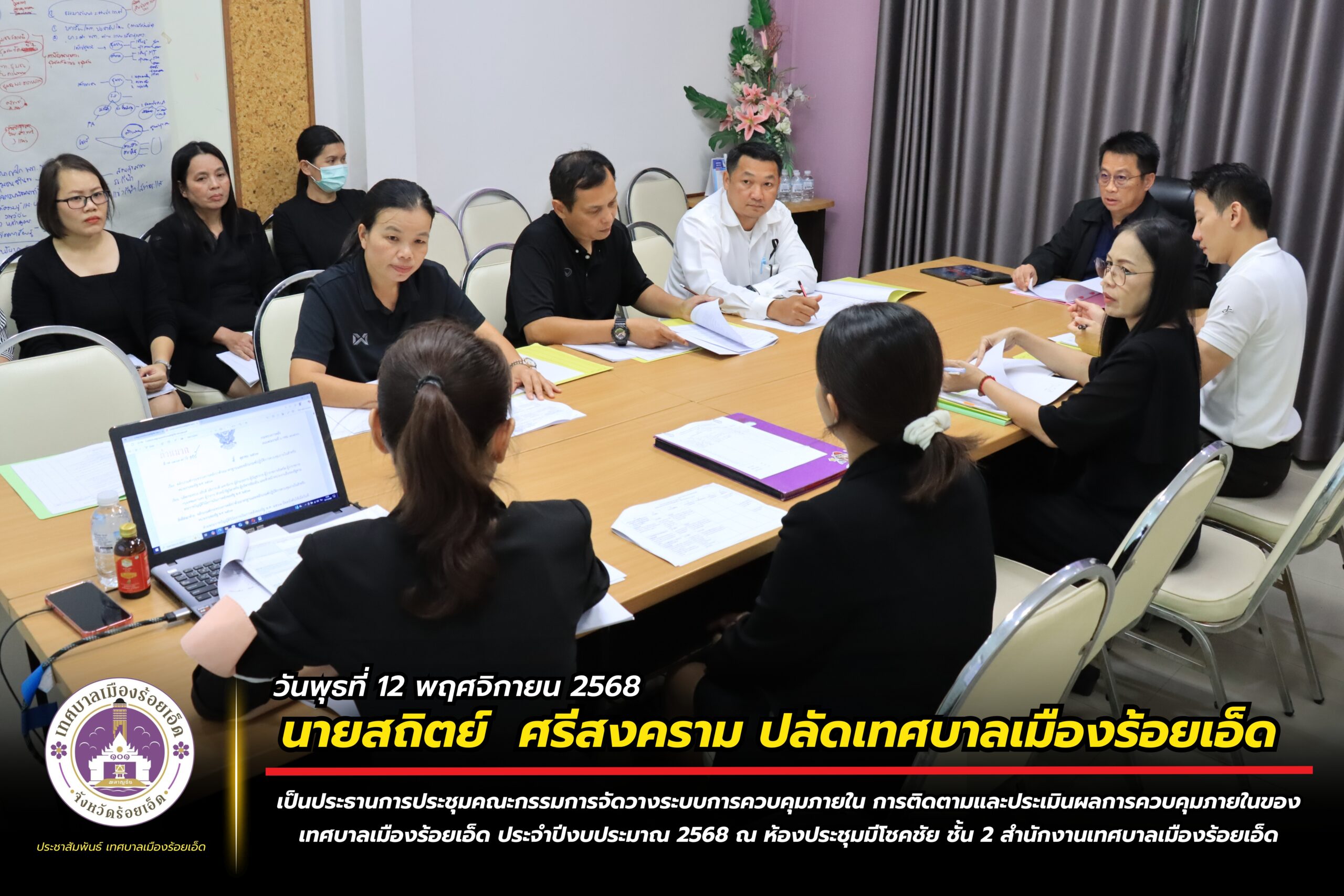 วันพุธที่ 12 พฤศจิกายน 2568 เวลา 13.30 น. นายสถิตย์ ศรีสงคราม ปลัดเทศบาลเมืองร้อยเอ็ด เป็นประธานการประชุมคณะกรรมการจัดวางระบบการควบคุมภายใน การติดตามและประเมินผลการควบคุมภายในของเทศบาลเมืองร้อยเอ็ด ประจำปีงบประมาณ 2568 พร้อมด้วย หัวหน้าส่วนการบริหาร, หัวหน้าฝ่าย, หัวหน้างาน และเจ้าหน้าที่ผู้เกี่ยวข้อง เข้าร่วมการประชุมอย่างพร้อมเพียง ณ ห้องประชุมมีโชคชัย ชั้น 2 สำนักงานเทศบาลเมืองร้อยเอ็ด