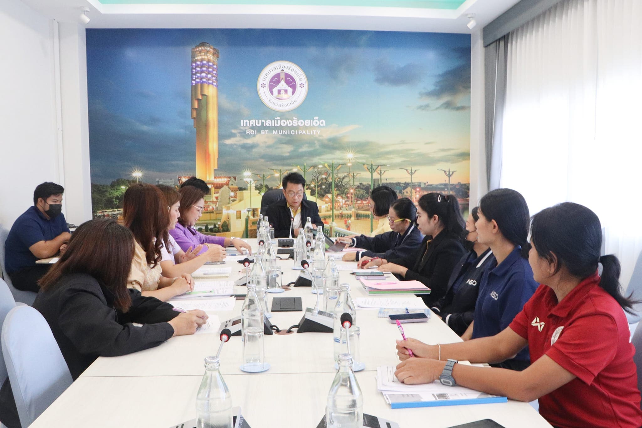 วันพฤหัสบดีที่ 12 ตุลาคม 2566 เวลา 09.30 น. เทศบาลเมืองร้อยเอ็ด นำโดย นายสถิตย์ ศรีสงคราม ปลัดเทศบาลเมืองร้อยเอ็ด พร้อมด้วย จ.ส.อ.ทรงวุฒิ สัตบุตร รองปลัดเทศบาลเมืองร้อยเอ็ด, นางสาวกรชนก ยุคะลัง ผู้อำนวยการกองยุทธศาสตร์และงบประมาณ, หัวหน้าฝ่าย, หัวหน้างาน และเจ้าหน้าที่ผู้เกี่ยวข้อง ร่วมประชุมคณะกรรมการฝ่ายสรุปผลและประเมินผล การแข่งขันวอลเลย์บอลชายหาด รุ่นอายุต่ำกว่า 21 ปี ชิงแชมป์โลก กับนางละอองดาว คมสัน สถิติจังหวัดร้อยเอ็ด และคณะ เพื่อเตรียมความพร้อมสำหรับการสรุปและประเมินผลในการแข่งขันวอลเลย์บอลชายหาด รุ่นอายุต่ำกว่า 21 ปี ชิงแชมป์โลก ที่จะจัดขึ้นระหว่างวันที่ 7 – 12 พฤศจิกายน 2566 ให้เป็นไปด้วยความเรียบร้อย ณ ห้องประชุมปัทมานนท์ Smart Room (ชั้น 2) สำนักงานเทศบาลเมืองร้อยเอ็ด