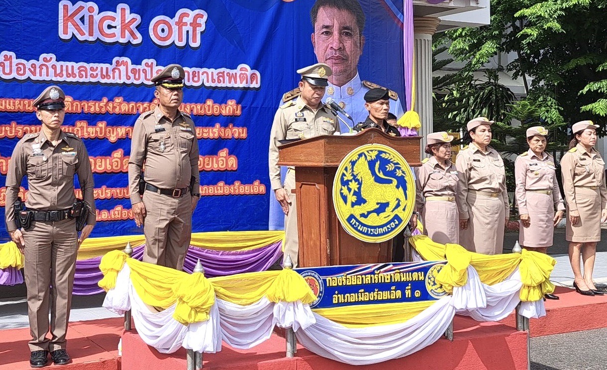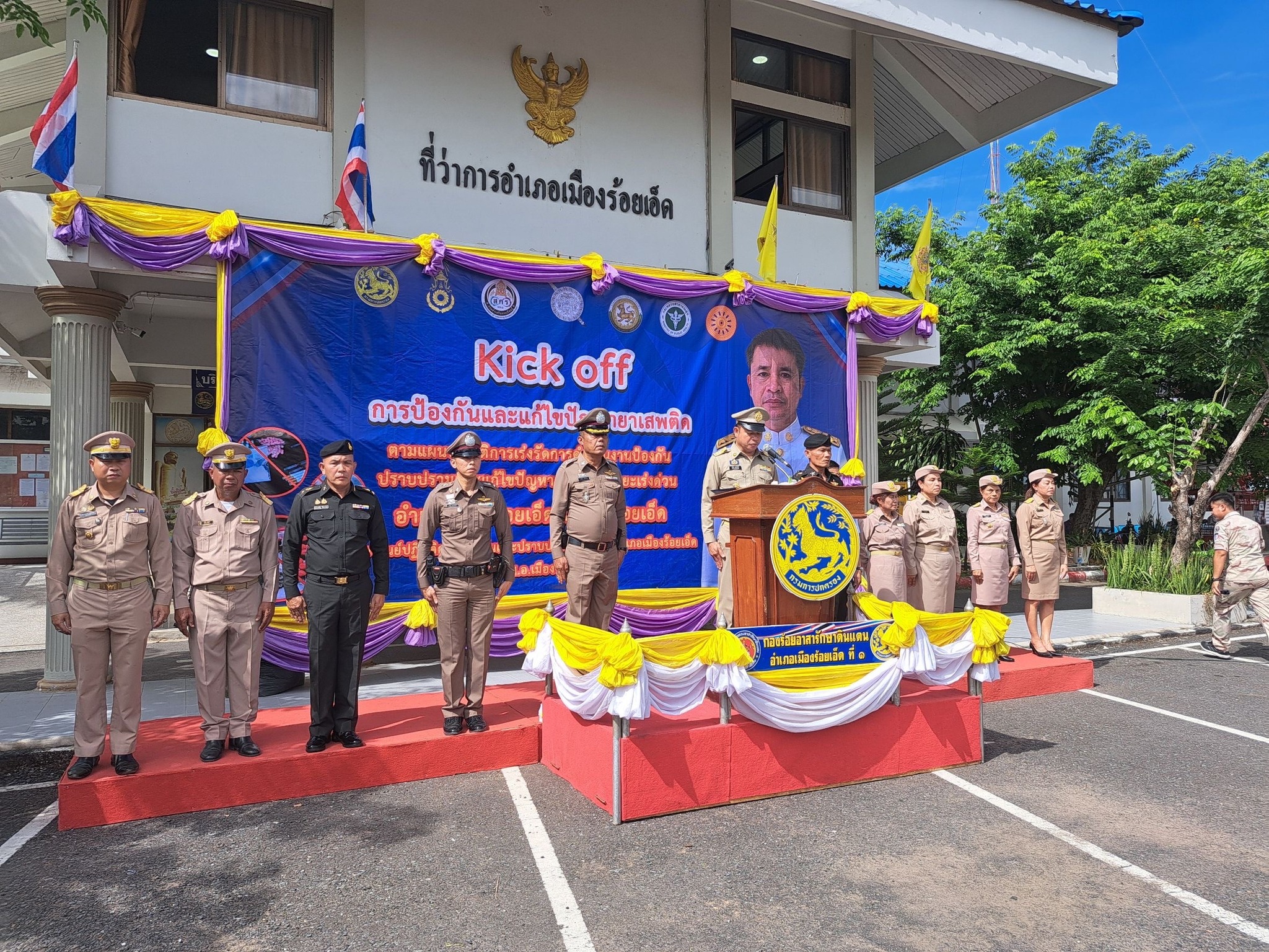 ปลัดเทศบาลเมืองร้อยเอ็ด ร่วมพิธีปล่อยแถวชุดปฎิบัติการประจำตำบล เพื่อขับเคลื่อนการป้องกันและแก้ไขปัญหายาเสพติด