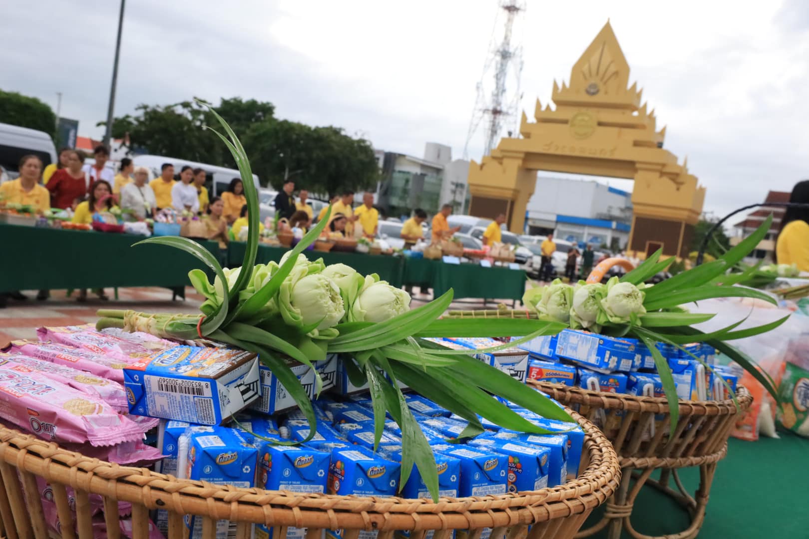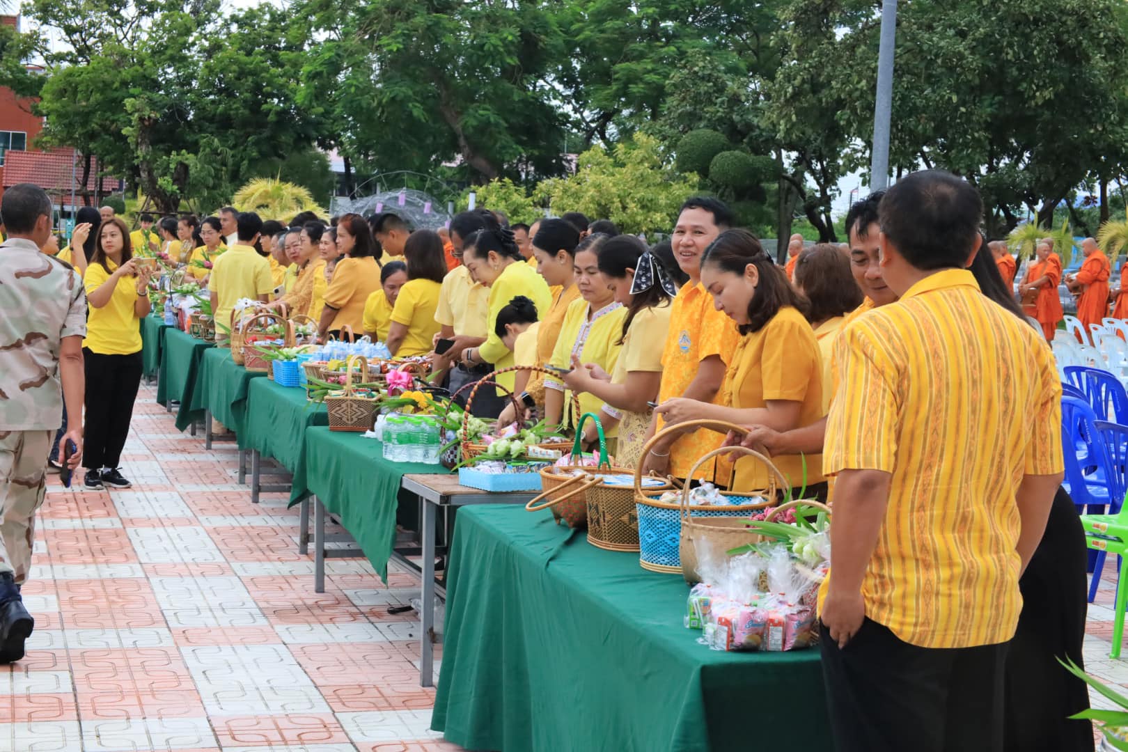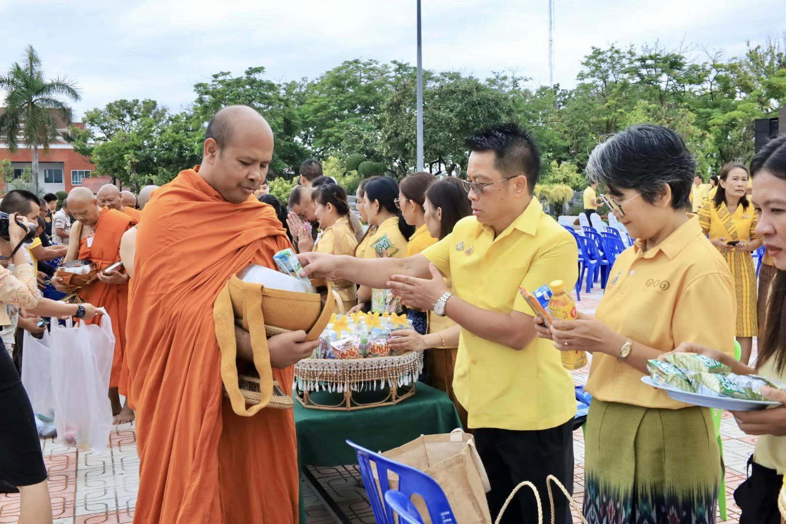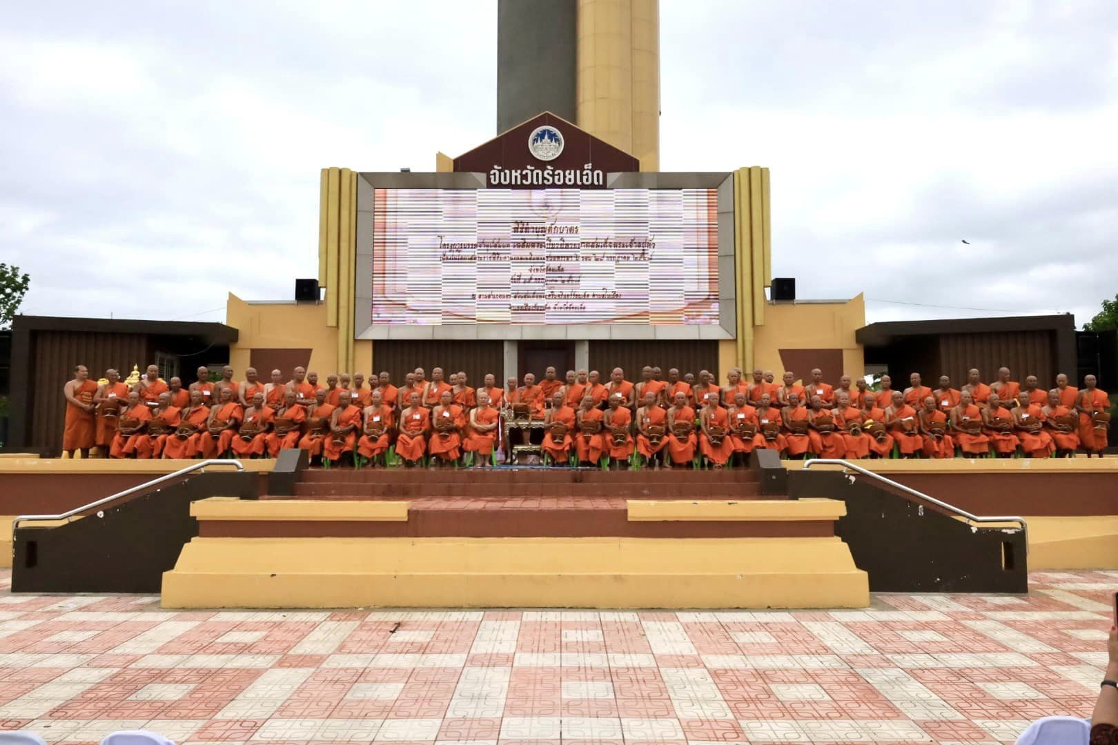 ปลัดเทศบาลเมืองร้อยเอ็ด ร่วมพิธีทำบุญตักบาตรพระสงฆ์ โครงการบรรพชาอุปสมบท เฉลิมพระเกียรติฯ