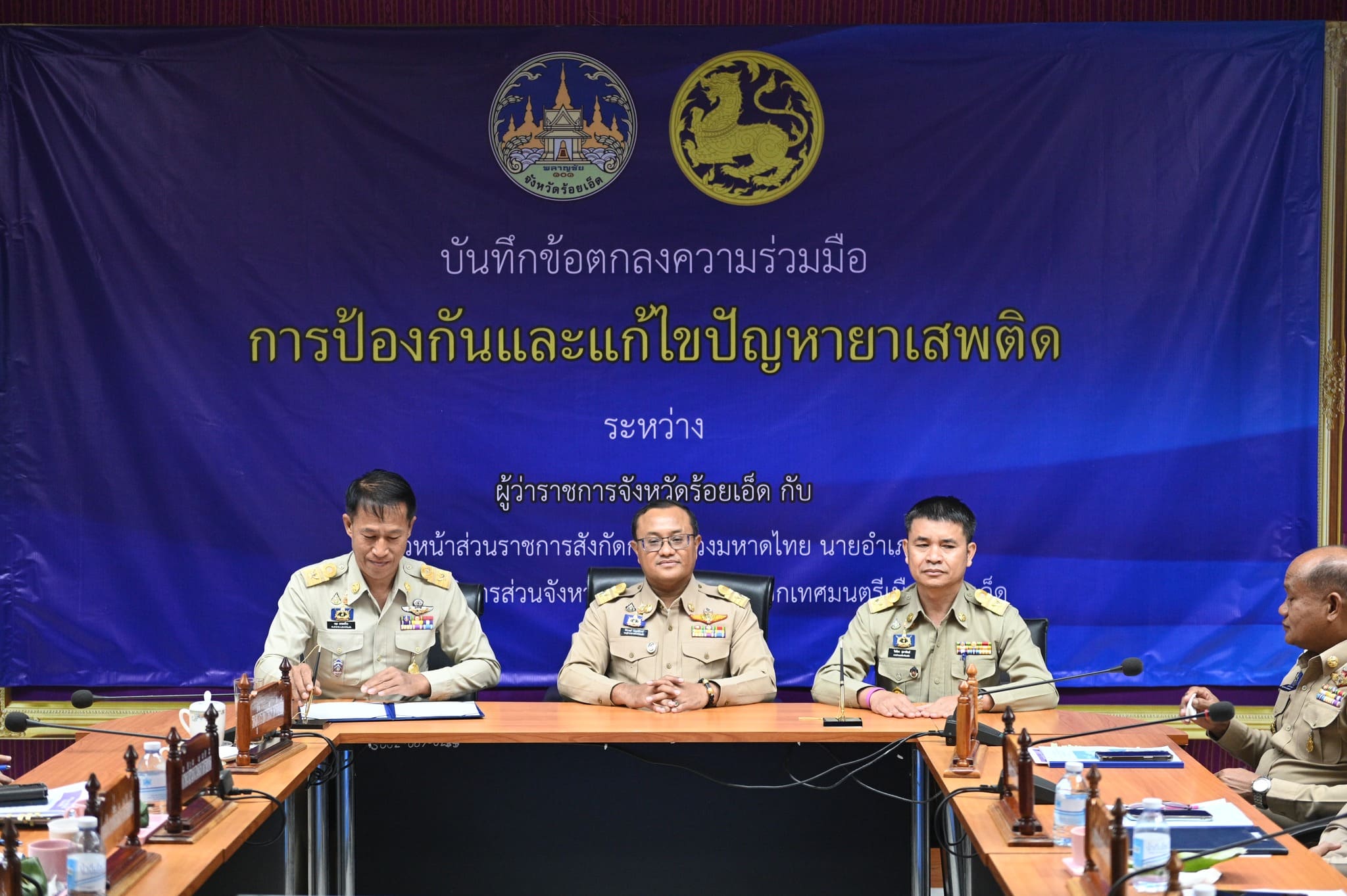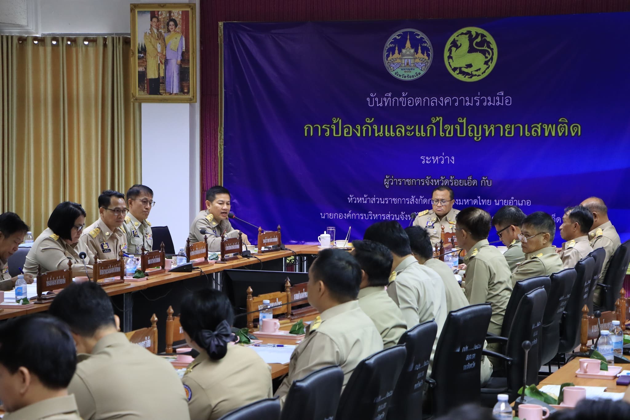 ปลัดเทศบาลเมืองร้อยเอ็ด ร่วมพิธีลงนามในบันทึกข้อตกลงความร่วมมือการป้องกันและแก้ไขปัญหายาเสพติดฯ ณ ห้องประชุมพระเวสสันดร ชั้น 3 ศาลากลางจังหวัดร้อยเอ็ด