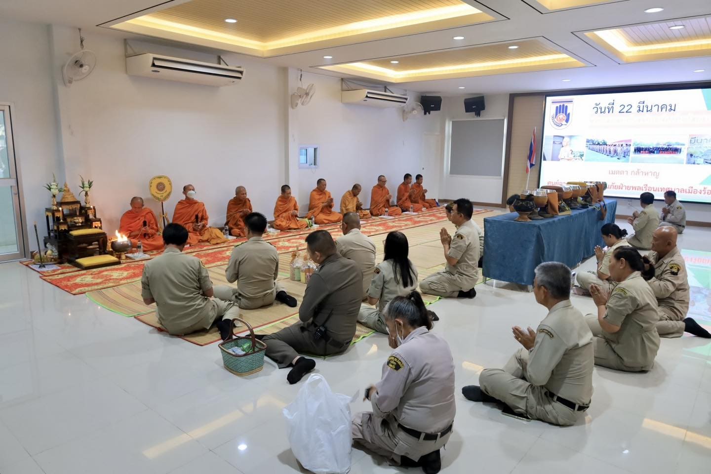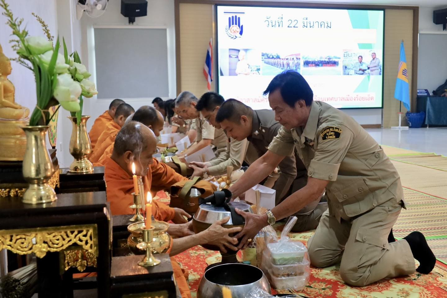 ปลัดเทศบาลเมืองร้อยเอ็ด เป็นประธานพิธีทำบุญตักบาตร เนื่องในวัน อปพร.