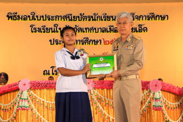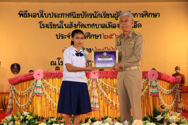 พิธีมอบใบประกาศนียบัตรนักเรียนผู้สำเร็จการศึกษา โรงเรียนในสังกัดเทศบาลเมืองร้อยเอ็ด ประจำปีการศึกษา 2565