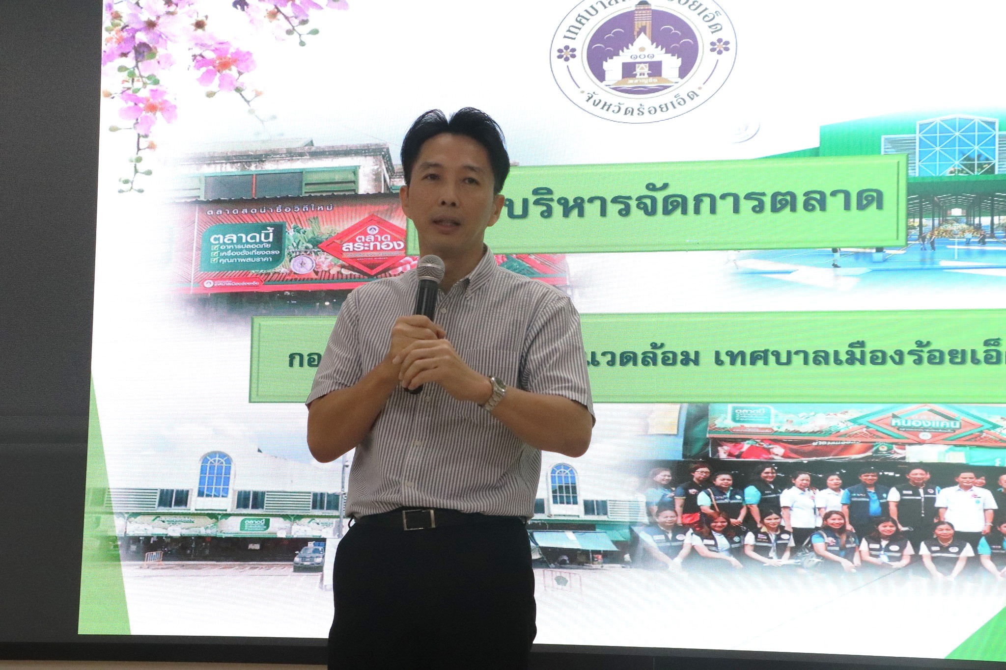 วันที่ 7 มีนาคม 2567 เวลา 09.00น. ดร.วัฒนพงษ์ ชิตทรงสวัสดิ์ รองนายกเทศมนตรีเมืองร้อยเอ็ด พร้อมด้วย หัวหน้าส่วนการบริหาร หัวหน้าฝ่าย หัวหน้างาน และเจ้าหน้าที่ที่เกี่ยวข้อง ร่วมต้อนรับคณะศึกษาดูงานจากเทศบาลตำบลโชคชัย จังหวัดนครราชสีมา เพื่อและเปลี่ยนแนวทางการพัฒนาตลาดตามเกณฑ์มาตรฐานตลาดสดน่าซื้อและแนวทางการพัฒนา ยกระดับตลาดให้เป็นต้นแบบในการสร้างความเป็นต้นแบบในการสร้างความเป็นธรรมทางการค้าที่จะให้ผู้บริโภคทุกระดับเกิดความเชื่อมั่นตามนโยบายของรัฐบาลให้ยังยืนตลอดไป ณ ห้องประชุมสระสิม (ชั้น2) ศูนย์บริการและพัฒนาคุณภาพชีวิตผู้สูงอายุเทศบาลเมืองร้อยเอ็ด