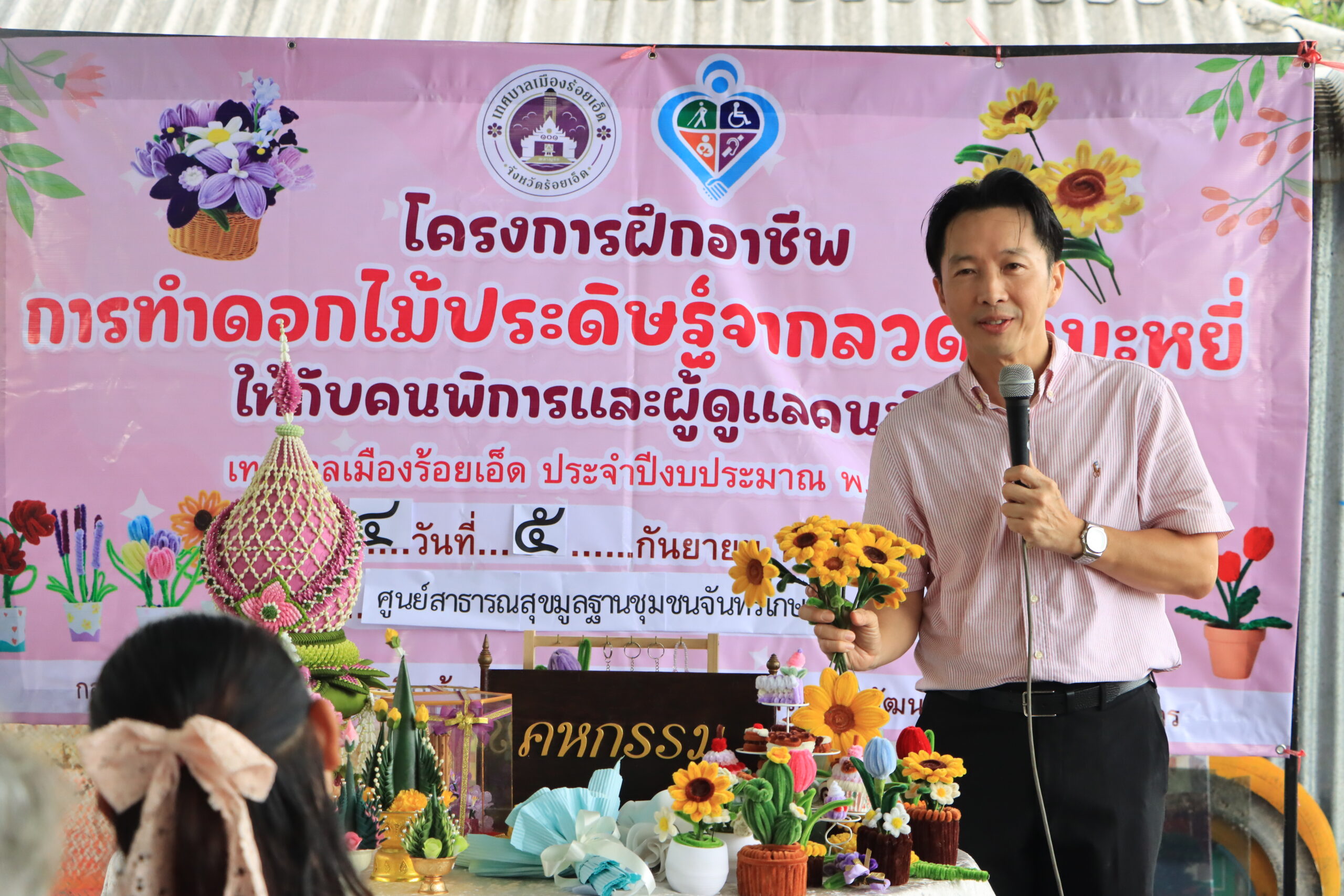 รองนายกฯทม.รอ.ประธานเปิดโครงการฝึกอาชีพการทำดอกไม้ประดิษฐ์จากลวดกำมะหยี่ให้กับคนพิการและผู้ดูแลคนพิการ ประจำปี พ.ศ. 2568 ชุมชนจันทร์เกษม