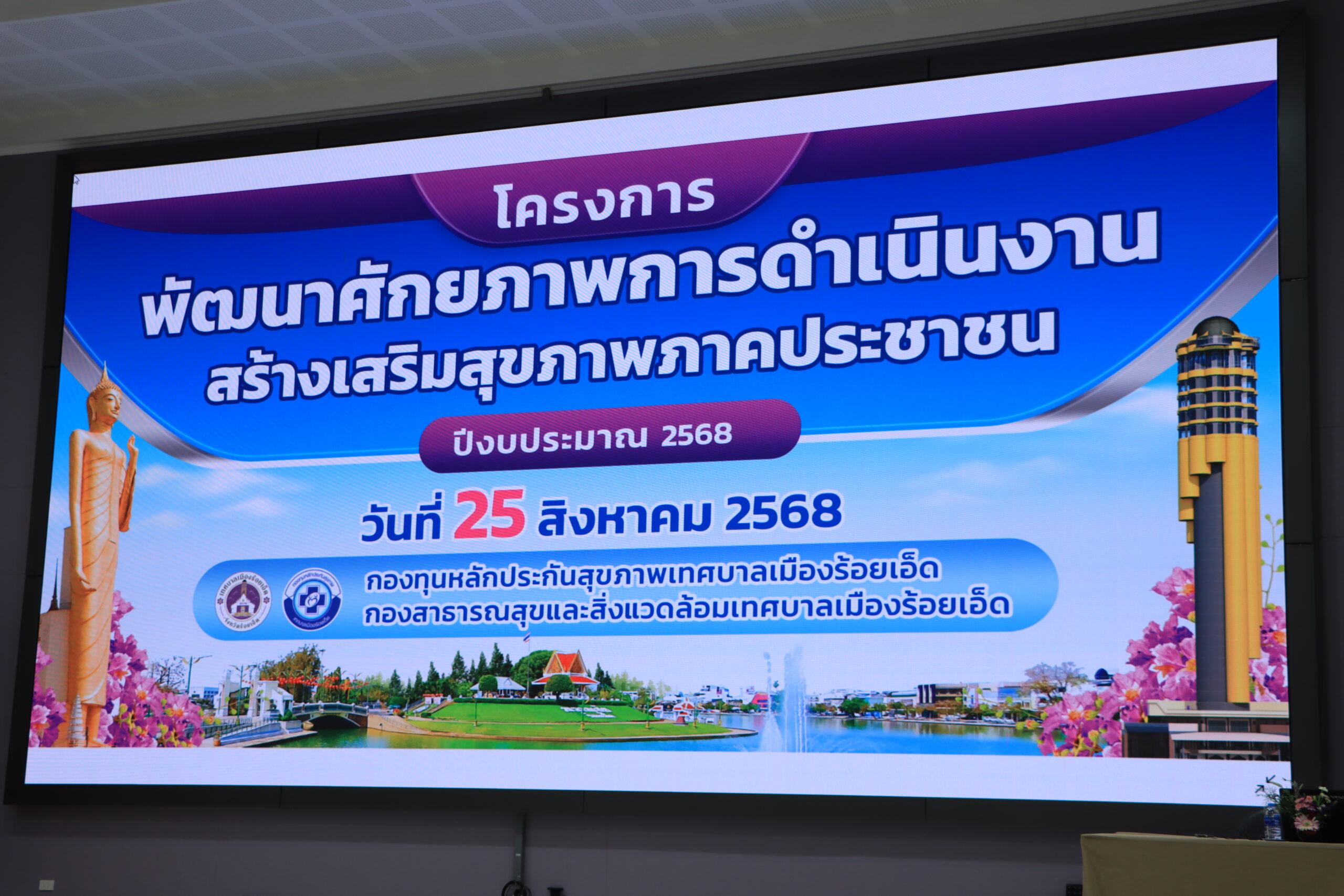 วันจันทร์ที่ 25 สิงหาคม 2568 เวลา 08.00-12.00น. ดร.วัฒนพงษ์ ชิตทรงสวัสดิ์ รองนายกเทศมนตรีเมืองร้อยเอ็ด เป็นประธานเปิดการอบรมโครงการสร้างเสริมสุขภาพภาคประชาชน ประจำปีงบประมาณ 2568 เพื่อความต่อเนื่องของโครงการในการพัฒนาศักยภาพอาสาสมัครสาธารณสุขในการสร้างเสริมสุขภาพในชุมชน ทั้งด้านความรู้ การบริหารจัดการให้มีประสิทธิภาพและเกิดความต่อเนื่องในเขตเทศบาลเมืองร้อยเอ็ด โดยมีพี่น้องอสม.ในเขตเทศบาลเมืองร้อยเอ็ดเข้าร่วมกิจกรรมมากกว่า 300 คน โอกาสนี้ มีนายพีรพงศ์