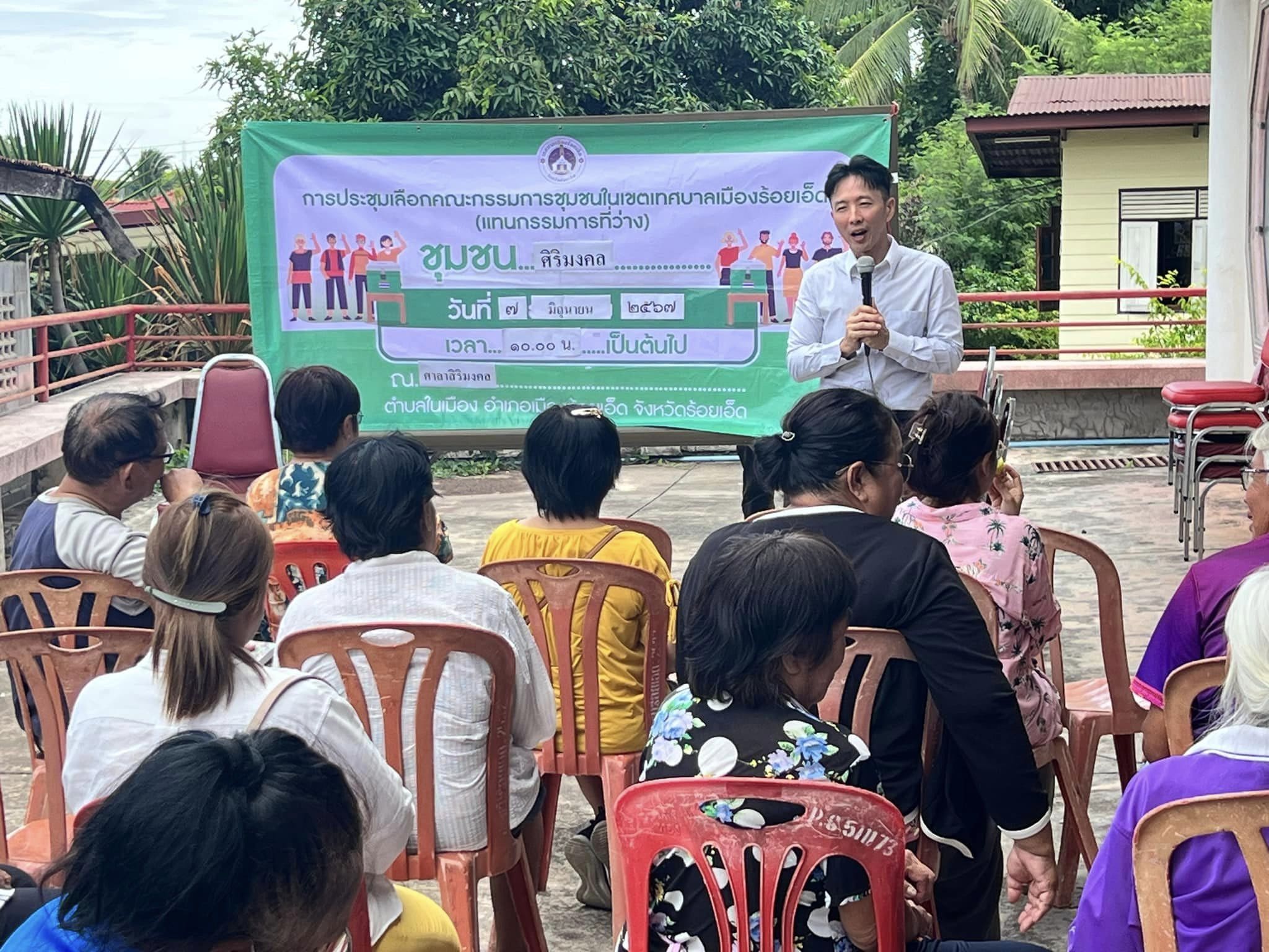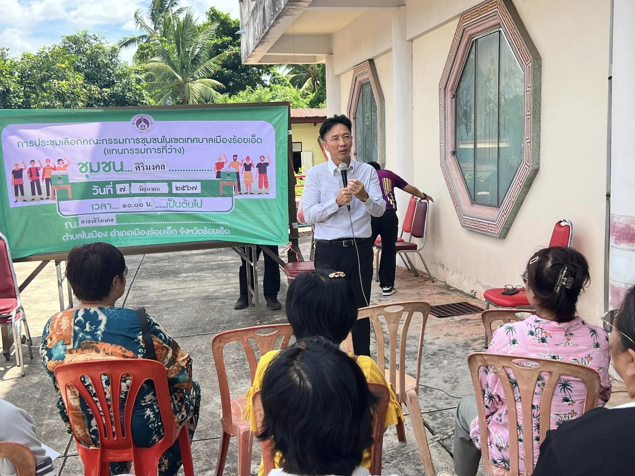 รองนายกเทศมนตรีเมืองร้อยเอ็ด ร่วมสังเกตการณ์การประชุมเลือกคณะกรรมการชุมชนในเขตเทศบาลเมืองร้อยเอ็ด (แทนกรรมการที่ว่าง) ชุมชนศิริมงคล ณ ศิริมงคลศาลา เทศบาลเมืองร้อยเอ็ด