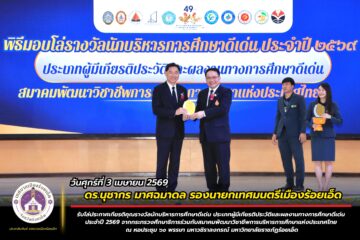 วันศุกร์ที่ 9 มกราคม 2569 เวลา 08.30 น. ดร.นุชากร มาศฉมาดล รองนายกเทศมนตรีเมืองร้อยเอ็ด เป็นประธานเปิดการแข่งขันกีฬาภายใน “เรไรเกมส์” ครั้งที่ 15 โดยมี นายสถิตย์ ศรีสงคราม ปลัดเทศบาลเมืองร้อยเอ็ด นางสาวกรชนก ยุคะลัง รองปลัดเทศบาลเมืองร้อยเอ็ด หัวหน้าส่วนการบริหาร คณะผู้บริหารสถานศึกษา คณะกรรมการสถานศึกษา หัวหน้าฝ่าย หัวหน้างาน คณะครู นักเรียน และพนักงานในสังกัดเทศบาลเมืองร้อยเอ็ด ร่วมพิธีเปิดการแข่งขันกีฬาฯ เพื่อส่งเสริมให้นักเรียนแสดงออกถึงความรัก ความสามัคคี มีน้ำใจต่อหมู่คณะ รู้แพ้ รู้ชนะ รู้อภัย และรู้จักนำหลักปรัชญาของเศรษฐกิจพอเพียงมาใช้ในการจัดกิจกรรมให้มีความสุข สนุกสนาน ณ โรงเรียนเทศบาลวัดป่าเรไร เทศบาลเมืองร้อยเอ็ด