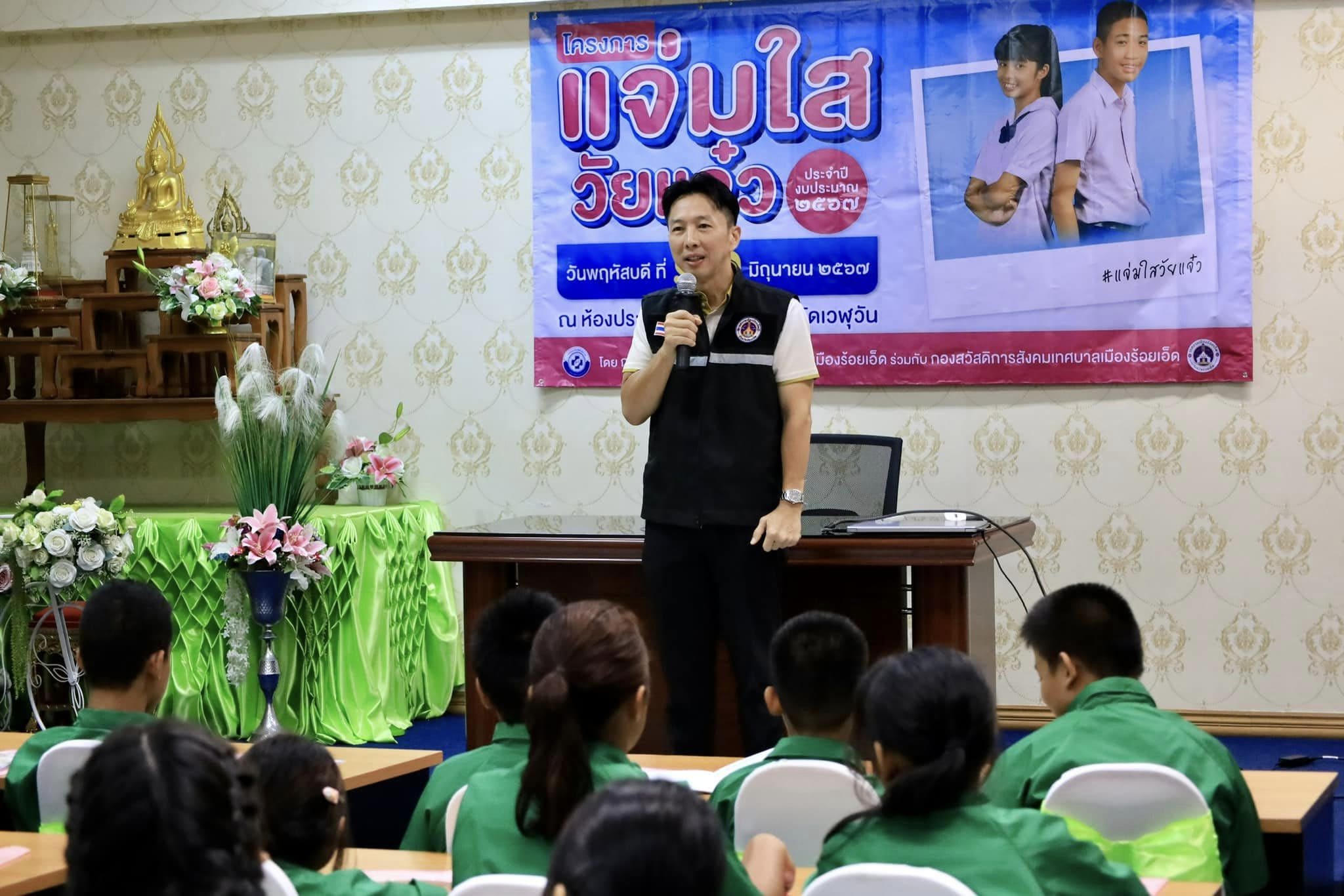 วันพฤหัสบดีที่ 13 มิถุนายน 2567 เวลา 09.00 น. ดร.วัฒนพงษ์ ชิตทรงสวัสดิ์ รองนายกเทศมนตรีเมืองร้อยเอ็ด เป็นประธานเปิดโครงการ “แจ่มใส วัยเเจ๋ว ประจำปีงบประมาณ 2567“ โดยมี สมาชิกสภาเทศบาล, หัวหน้าส่วนการบริหาร, ผู้บริหารสถานศึกษา, หัวหน้าฝ่าย, หัวหน้างาน ร่วมเปิดโครงการครั้งนี้ จากกองทุนหลักประกันเพื่อสุขภาพเทศบาลเมืองร้อยเอ็ด มีวัตถุประสงค์เพื่อให้ผู้เรียนและบุคลากรในโรงเรียนมีความรู้ ความเข้าใจ ตระหนักถึงสถานการณ์และพฤติกรรมที่จะส่งผลถึงปัญหาด้านสุขภาพจิต เกิดการเรียนรู้และเกิดทักษะการบริหารจัดการความเครียด การจัดการอารมณ์และพฤติกรรมอย่างถูกต้อง เหมาะสม และสามารถพัฒนาต่อยอดเครือข่ายด้านสุขภาพภายในโรงเรียน พร้อมทั้งรับฟังบรรยายจากวิทยากรกลุ่มงานจิตเวชและยาเสพติด โรงพยาบาลร้อยเอ็ด ในหัวข้อ การพัฒนาทักษะทางด้านการจัดการอารมณ์และสังคม การสำรวจความเครียด ประเมินและการจัดการความเครียด ณ ห้องประชุมโรงเรียนเทศบาลวัดเวฬุวันร้อยเอ็ด