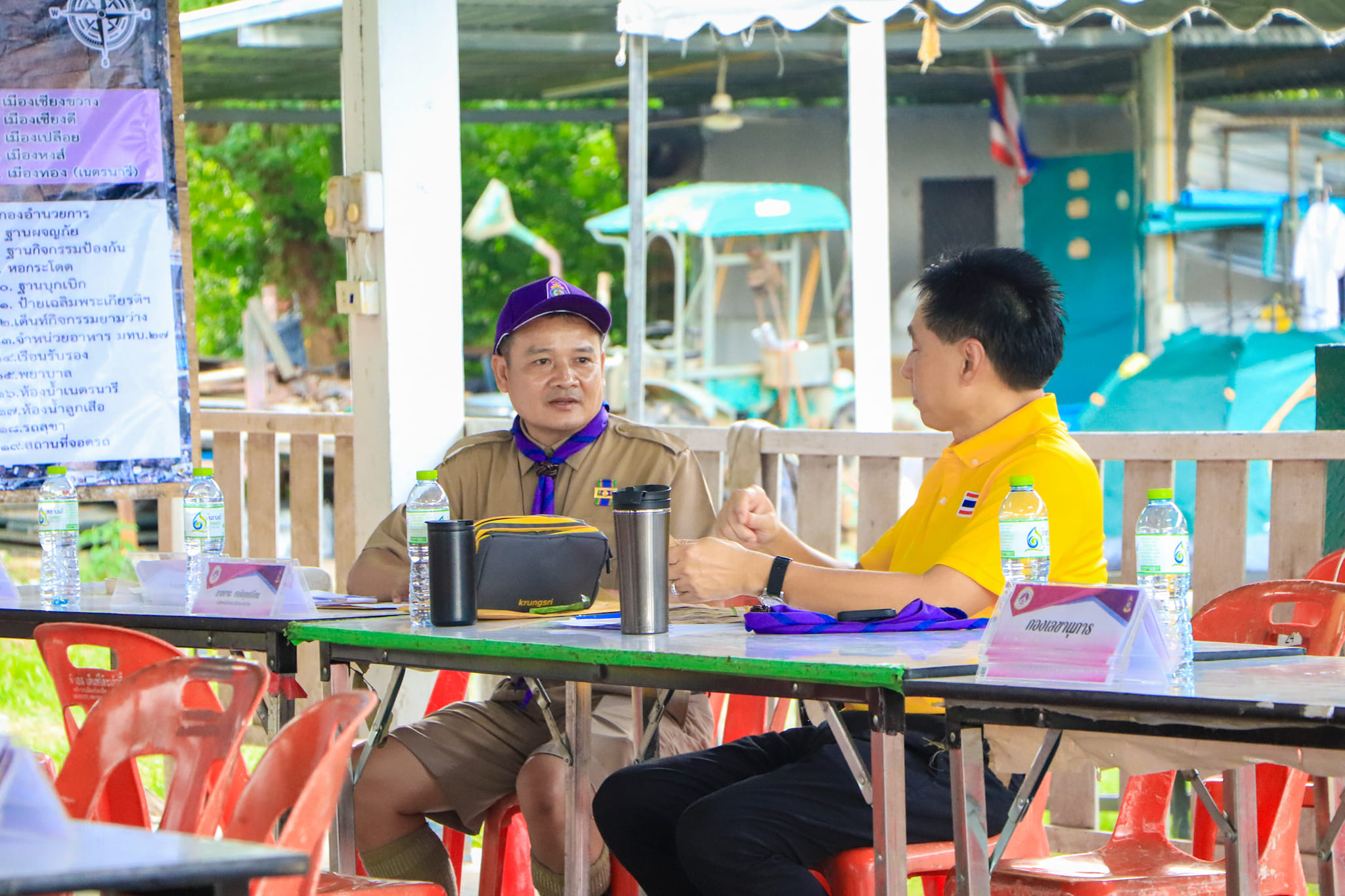 รองนายกเทศมนตรีเมืองร้อยเอ็ด ให้การต้อนรับว่าที่ ร.ต.สมปอง วิมาโร ผู้อำนวยการส่วนอำนวยการ สำนักงานลูกเสือแห่งชาติ ลงพื้นที่ตรวจเยี่ยมค่ายลูกเสือ