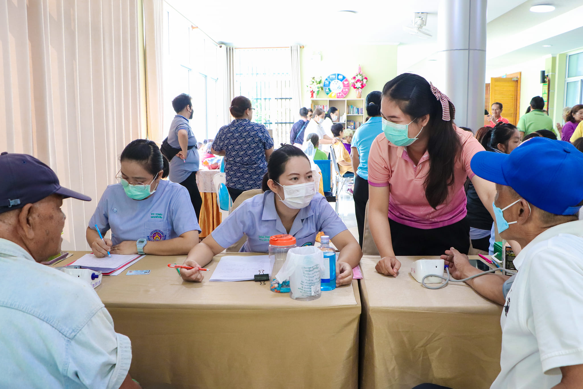 วันพุธที่ 10 กรกฎาคม 2567 เวลา 09.30 น. ดร.วัฒนพงษ์ ชิตทรงสวัสดิ์ รองนายกเทศมนตรีเมืองร้อยเอ็ด พร้อมด้วย ดร.มิตรธีรา วิสูตรานุกูล ประธานสภาเทศบาลเมืองร้อยเอ็ด, สมาชิกสภาเทศบาล, หัวหน้าส่วนการบริหาร, หัวหน้าฝ่าย, หัวหน้างาน, อสม. และพนักงานในสังกัดเทศบาลเมืองร้อยเอ็ด ร่วมพบปะผู้สูงอายุ ตามโครงการส่งเสริมสุขภาพผู้สูงอายุ เทศบาลเมืองร้อยเอ็ด ประจำเดือนกรกฎาคม ปีงบประมาณ 2567 พร้อมทั้งการบริการด้านสุขภาพ, การตัดผมฟรี และบริการนวดผ่อนคลาย ซึ่งมีผู้สูงอายุให้ความสนใจเข้าร่วมโครงการอย่างเนืองแน่นเป็นประจำ ทั้งนี้เทศบาลเมืองร้อยเอ็ดได้กำหนดจัดโครงการเป็นประจำในวันพุธที่ 2 ของทุกเดือน ณ ห้องประชุมสระสิม (ชั้น1) ศูนย์บริการและพัฒนาคุณภาพชีวิตผู้สูงอายุเทศบาลเมืองร้อยเอ็ด