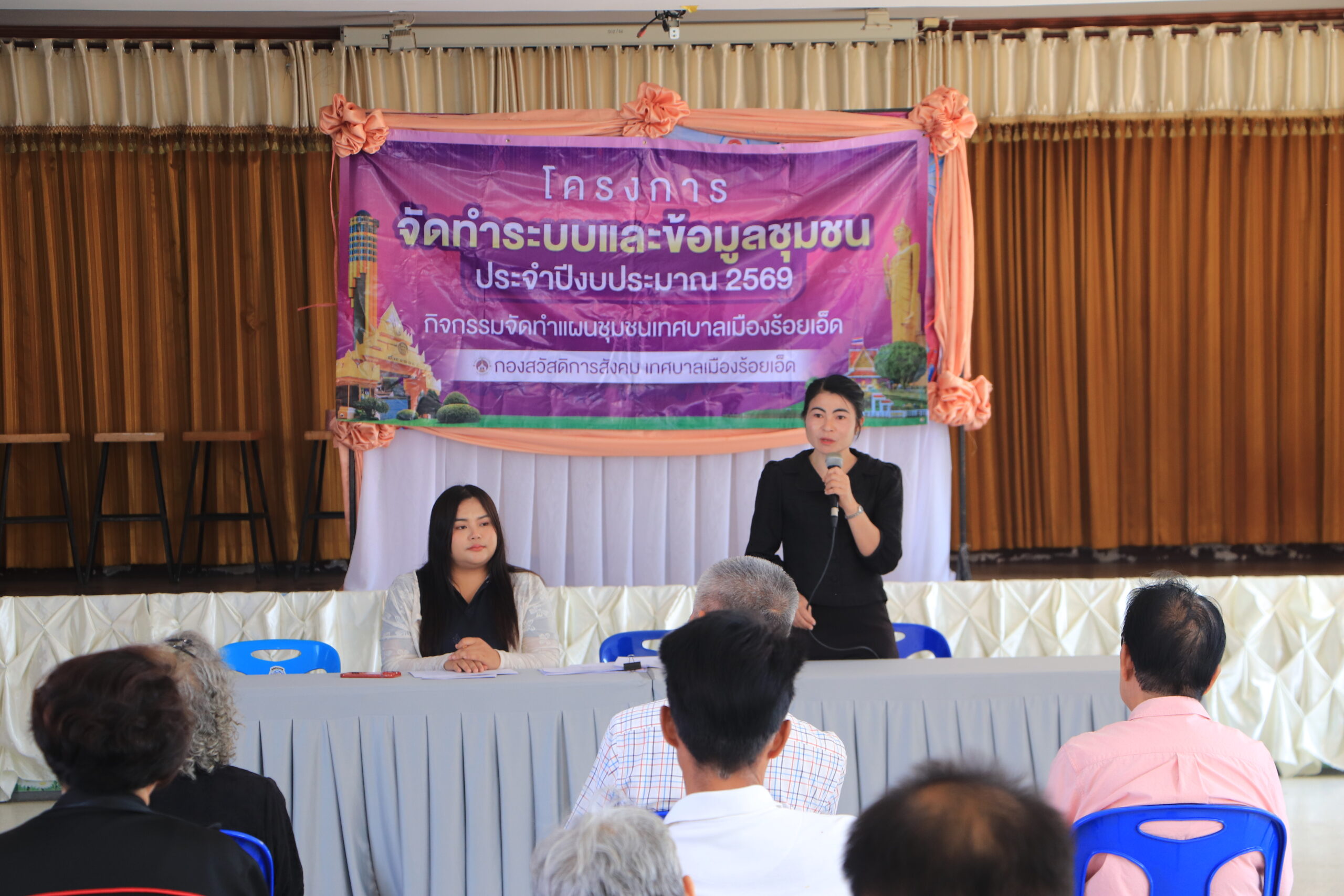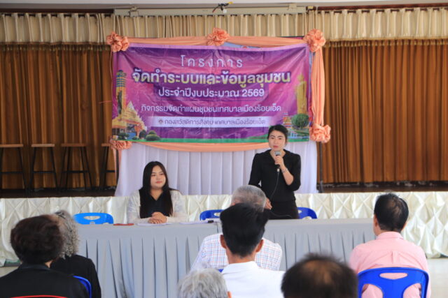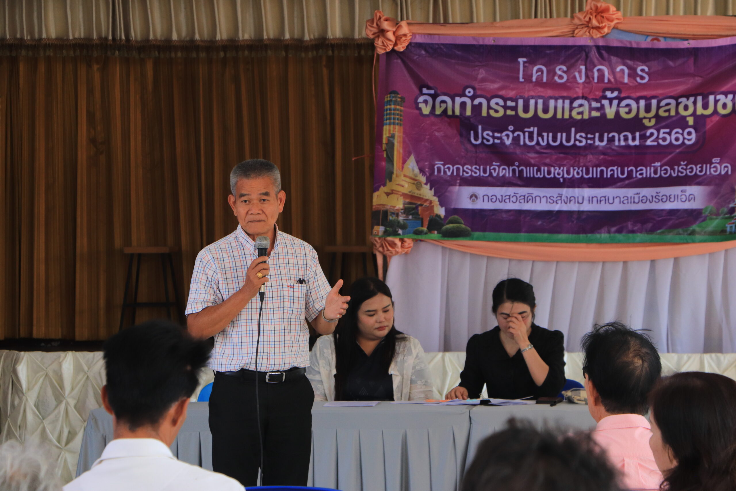 วันอังคารที่ 17 มีนาคม 2569 เวลา 10.00 น. สิบเอกฐิระวัจน์ อรรคนันท์ รองปลัดเทศบาลเมืองร้อยเอ็ด พร้อมด้วย นางประไพ กลิ่นจันทร์ ผู้อำนวยการกองสวัสดิการสังคม หัวหน้าฝ่าย หัวหน้างาน ประธานชุมชม คณะกรรมการชุมชน อสม. ประชาชนในชุมชน และเจ้าหน้าที่ผู้เกี่ยวข้อง ร่วมโครงการจัดทำระบบและข้อมูลชุมชน ประจำปีงบประมาณ 2569 ชุมชนพระอารามหลวง กิจกรรมการจัดทำแผนชุมชน ในเขตเทศบาลเมืองร้อยเอ็ด เพื่อรวบรวมปัญหาและความต้องการของประชาชน เพื่อจัดบริการสาธารณะ ตลอดจนการใช้ข้อมูลประกอบการจัดทำแผนพัฒนาชุมชนให้เป็นปัจจุบัน ณ อาคารประทุมแก้ว โรงเรียนอนุบาลเทศบาลเมืองร้อยเอ็ด