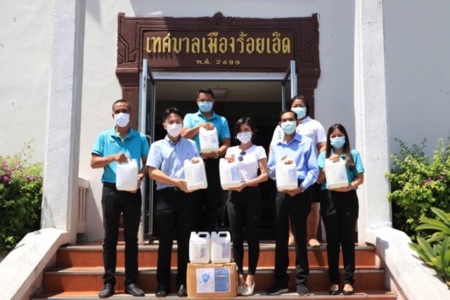 วันพุธที่ 2 มิถุนายน 2564 เวลา 10.30 น. ณ สำนักงานเทศบาลเมืองร้อยเอ็ด ดร.วัฒนพงษ์ ชิตทรงสวัสดิ์ รองนายกเทศมนตรีเมืองร้อยเอ็ด พร้อมด้วย นายฉัตรชัย นวลเพ็ญ ผู้อำนวยการกองสาธารณสุขและสิ่งแวดล้อม รับน้ำยาฉีดฆ่าเชื้อ จำนวน 500 แกลลอน ขวดสเปรย์ 800 ขวด และเครื่องพ่นแอลกอฮอล์ 3 เครื่อง จากคุณสุกานดา จิรัฏเมธากุล กรรมการผู้จัดการ ห้างหุ้นส่วนจำกัด อลิน 2553, ห้างหุ้นส่วนจำกัด ร้อยเอ็ด พลาสติก, บริษัท เจดีย์ทองการเกษตร จำกัด และบริษัท จักรพรรดิอินเตอร์ฟู๊ด จำกัด