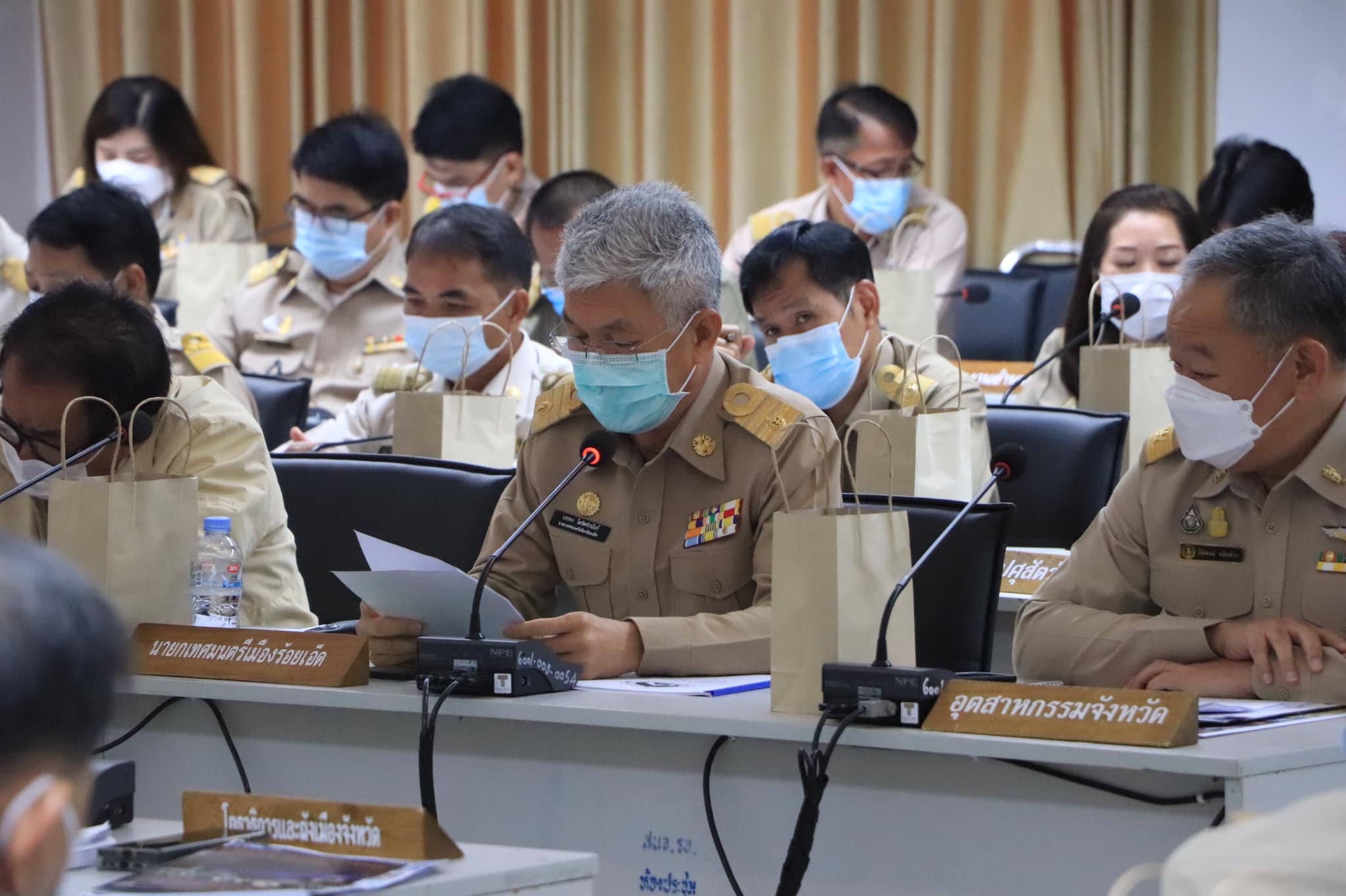 วันที่ 29 พฤศจิกายน 2564 เวลา 10.00 น. นายบรรจง โฆษิตจิรนันท์ นายกเทศมนตรีเมืองร้อยเอ็ด ร่วมประชุมคณะกรรมการจังหวัด หัวหน้าส่วนราชการ หัวหน้าหน่วยงาน และนายอำเภอ ประจำเดือนพฤศจิกายน 2564 ครั้งที่11/2564 ซึ่งเทศบาลเมืองร้อยเอ็ด จะจัดทำเป็นยุทธศาสตร์การพัฒนาเมืองร้อยเอ็ด พร้อมด้วยการนำเสนอขอรับการสนับสนุนจากรัฐบาลในรูปของโครงการสำคัญเพื่อขับเคลื่อนยุทธศาสตร์ อาทิ 1. โครงการอควาเรียมสัตว์น้ำเค็ม สถานแสดงพันธุ์สัตว์น้ำเทศบาลเมืองร้อยเอ็ด2. โครงการย้ายเรือนจำจังหวัดร้อยเอ็ดเดิมไปก่อสร้างเรือนจำแห่งใหม่3. จัดทำพิพิธภัณฑ์เมืองร้อยเอ็ดรูปแบบสื่อผสมในอาคารหอสูงชมเมืองรูปทรงโหวด4. จัดสร้างพุทธมณฑลจังหวัดร้อยเอ็ด- และเรื่องพิจารณา เรื่องกราบเรียนเชิญ ฯพณฯ นายกรัฐมนตรี และคณะรัฐมนตรี ตรวจเยี่ยมโครงการก่อสร้างหอสูงชมเมืองรูปทรงโหวดจังหวัดร้อยเอ็ด โดยมีนายภูสิต สมจิตต์ ผู้ว่าราชการจังหวัดร้อยเอ็ด เป็นประธานการประชุม ณ ห้องประชุมพระมหาเจดีย์ชัยมงคล(ชั้น5) ศาลากลางจังหวัดร้อยเอ็ด