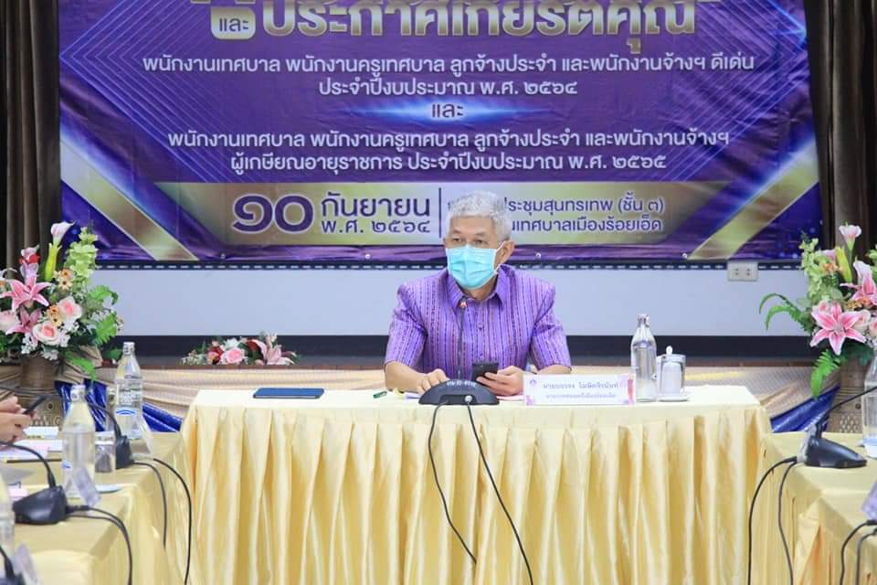 วันที่ 5 ตุลาคม 2564 เวลา 10.00 น. เทศบาลเมืองร้อยเอ็ด นำโดย นายบรรจง โฆษิตจิรนันท์ นายกเทศมนตรีเมืองร้อยเอ็ด พร้อมด้วยคณะผู้บริหารและหัวหน้าส่วนราชการ ร่วมประชุมพิจารณาเลื่อนขั้นเงินเดือนพนักงานในสังกัดเทศบาลเมืองร้อยเอ็ด ณ ห้องประชุมสุนทรเทพ(ชั้น3) สำนักงานเทศบาลเมืองร้อยเอ็ด