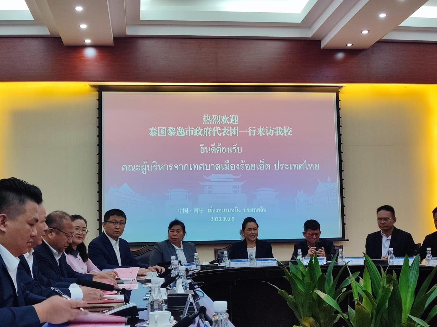 ร่วมพิธีลงนามความร่วมมือ (MOU) ระหว่างเทศบาลเมืองร้อยเอ็ดกับวิทยาลัยเตรียมอนุบาลกว่างซี สาธารณรัฐประชาชนจีน